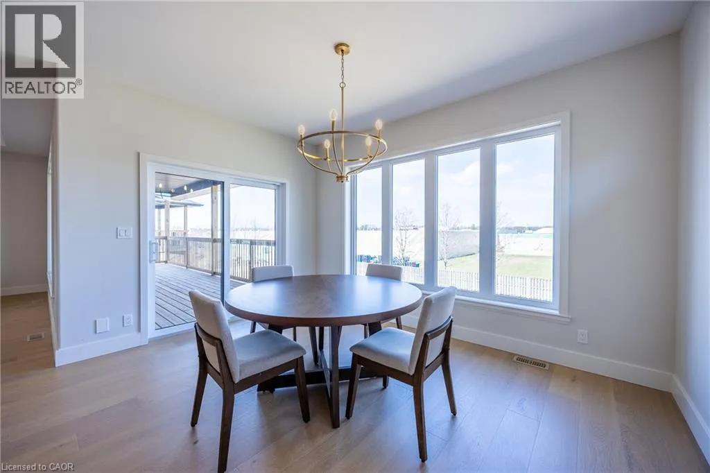 From HWY 3 (QUEENSWAY) TURN ONTO IRELAND RD, TURN ONTO ANDREW AVENUE Beautiful new bungalow offering 1,658 sq. ft. of modern living, this home combines style, function, and a prime location close to shopping, dining, schools, and all the amenities Simcoe has to offer. The exterior features timeless stonework, a covered front porch with stained pine entrance, and great curb appeal. Step inside to 9 ft ceilings throughout, a stunning 10 ft tray ceiling in the living room, and an electric fireplace that adds warmth and charm. The open-concept kitchen/dining area includes an island, custom cabinetry, and a walk-in pantryâperfect for both everyday living and entertaining. Walk out from the dining area to a covered upper deck, and from the finished basementâs rec room to a lower patioâcreating seamless indoor-outdoor living. The main floor offers two generous bedrooms, including a primary suite with a walk-in closet and a spa-like ensuite featuring a tiled shower with glass door. A stylish 4 pc bath completes the main level. The oversized garage with insulated doors provides direct access to the laundry room, offering both convenience and practicality. The finished basement expands your living space with a spacious rec room, bedroom, full bathroom, storage, and utility room. Donât miss this opportunity to own a stunning new homeâmove-in ready and waiting for your personal touch. Book your private viewing today! (id:27476)