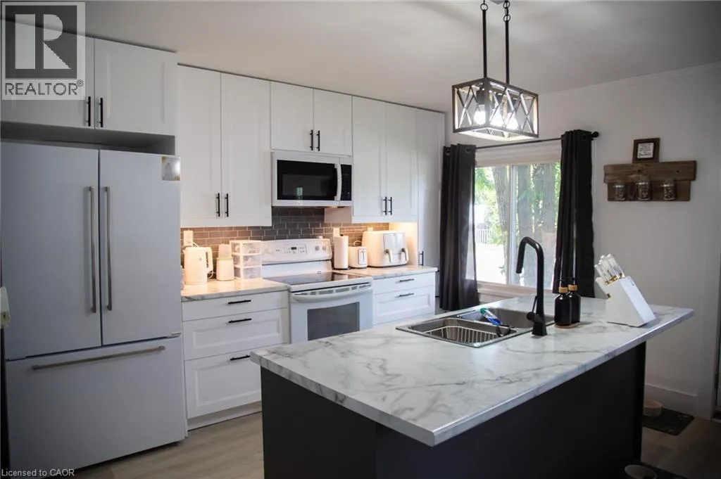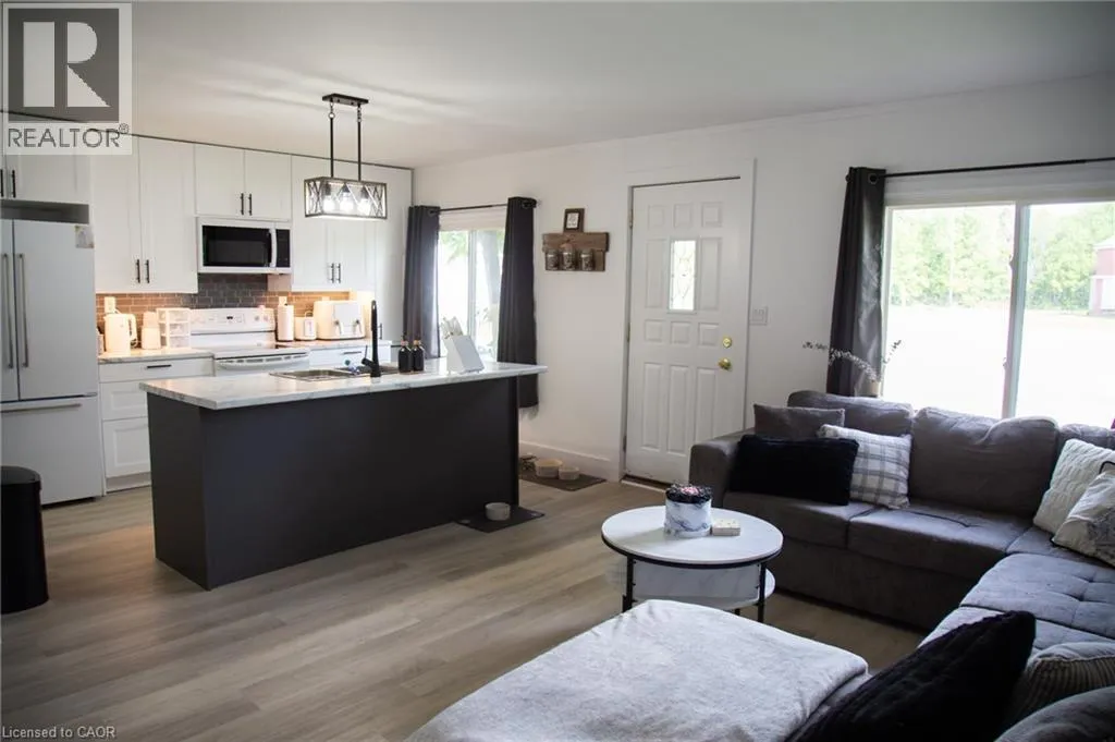 McDowell Rd E out of Simcoe toward Bills Corners. AT the corner of Turkey Point Rd and McDowell Rd E Now is the perfect time to make your move to the country! Located just a short drive to Simcoe, 30 minutes to Tillsonburg or Nanticoke, and 40 minutes to Brantford, 948 McDowell Rd is an easy commute to work. And your favourite part of coming home might just be the time spent outside enjoying the .52 acre fully fenced property. Perfect for bonfires, quiet nights under the lights on the gazebo, or the friendly competition that a cornhole tourney brings, the fun is limitless. Now because we know that you eventually have to go inside, it's probably a good idea to talk about the amazing inside living space too! This 1.5 storey home was beautifully updated in the last few years including a newer electrical panel, flooring and paint throughout, and a new Kitchen in 2024. There is a large island and plenty of storage to make the most of the open concept space, with undermount lighting, bright white cabinetry, and a built-in over the range microwave. The living room is open to the Kitchen which makes it easy to keep the conversation going over dinner. Just around the corner you'll find the Dining area which has storage of it's own, a sliding patio door out to the large deck and gazebo, and a view of the fenced yard. There are 2 good sized Bedrooms, a full 4 Pc Bathroom, and what every country home needs, a main floor Mud Room with Laundry. Upstairs is some bonus room that is set up as a home office and guest sleeping space, and there is a partial basement that has the utilities, furnace, and water filtration systems. Affordable rural living can be yours, come check it out! (id:27476)