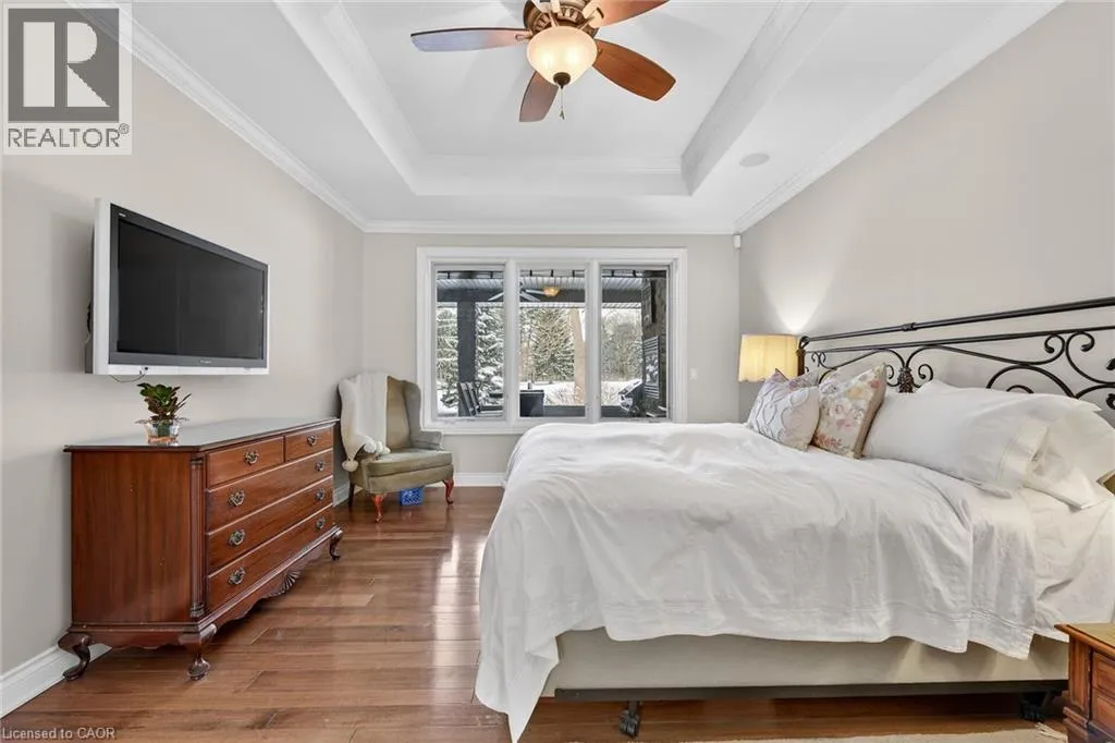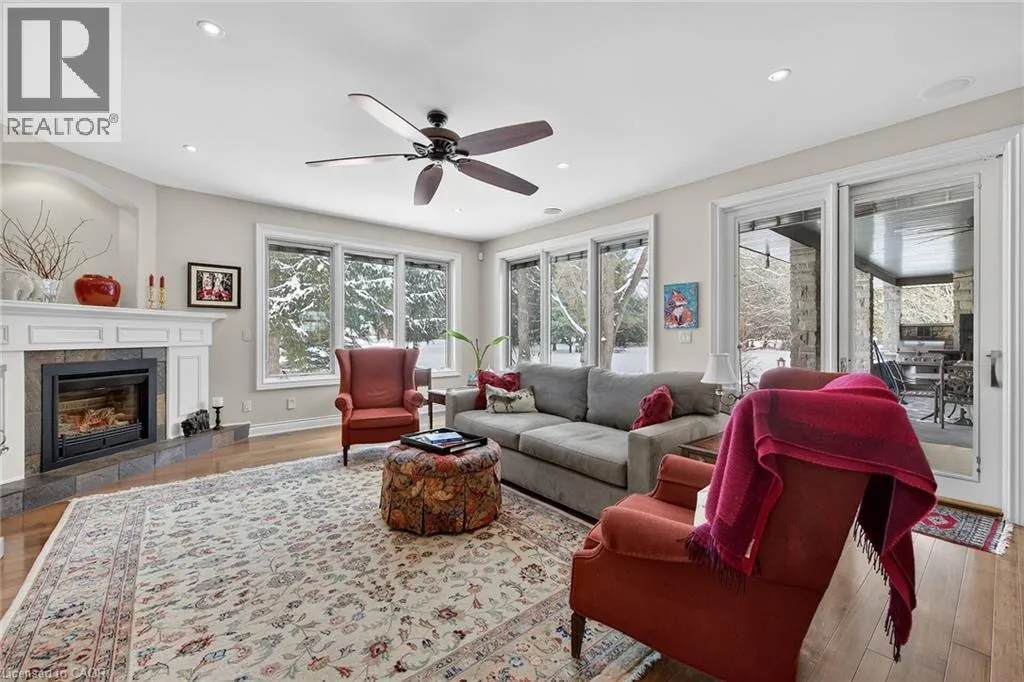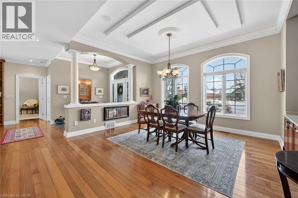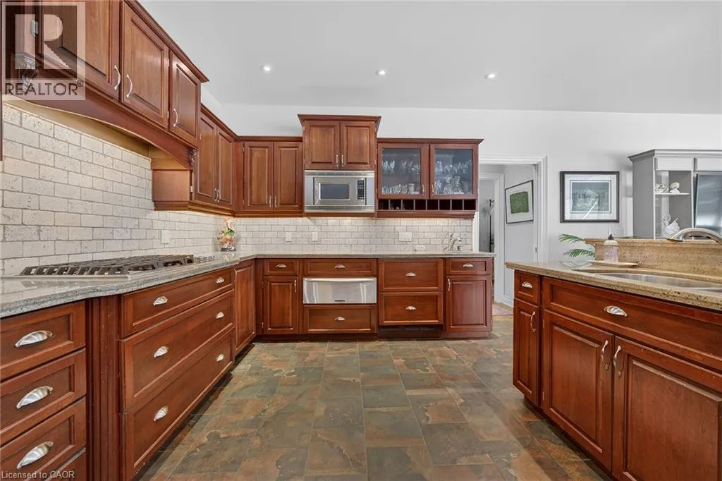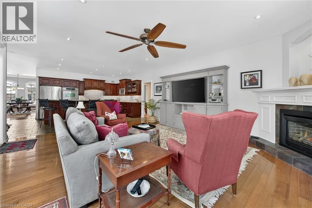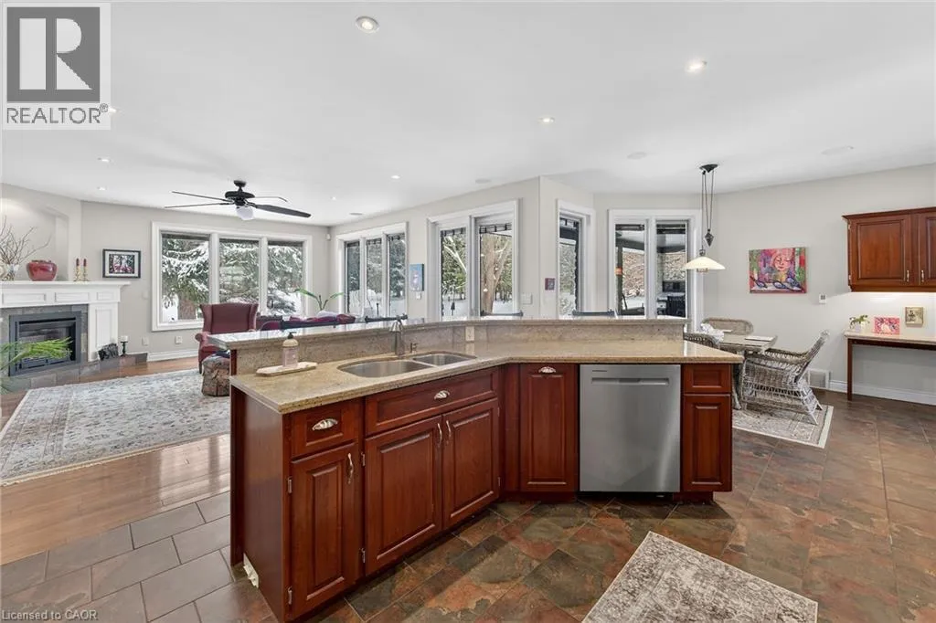 Highway 3 to South on Ireland Road to RIGHT on Lynndale Road to LEFT on Blossom Avenue to RIGHT on Yeager Avenue Simply stunning executive style home/property located in one of Simcoeâs most prestigious, upscale neighborhoods abutting the manicured fairways of revered Norfolk Golf Course - rarely do one of 13 properties backing on to this stately course ever come available. Offers close proximity to many amenities incs Hospital, schools, rec centers, pools, trails, shopping & eateries. Positioned proudly on 0.36ac lushly landscaped lot is 2006 custom built/designed stone/brick/stucco clad Estate bungalow introducing 2483sf of flawless living area incs 420sf covered outdoor entertainment area overlooking golf course grounds - boasting tile floors, gas FP, TV, outdoor kitchen & huge dining area, 2483sf beautifully finished lower level & 655sf oversized 2-car garage enjoying basement walk-down. Grand foyer leads past formal dining room to open conc. Dream kitchen sporting maple cabinetry, designer island, granite counters, tile backsplash, WI pantry & hi-end appliances incs Sub-Zero refrigerated drawer feature - segues to comfortable family room ftrs stylish wall unit, n/g FP + 8ft high 3 panel sliding door WO. Continues to opulent living room w/2nd patio door WO, roomy guest bedroom, 4pc bath, convenient MF laundry & north-wing primary bedroom incs 4pc jacuzzi en-suite + WI closet. Gleaming hardwood floors, gorgeous wood trim/baseboard, 9ft/10ft valence lighted tray ceilings + heated tile flooring compliments interior décor w/sophisticated flair. Impressive rec/family room highlights lower level boasting 9ft ceilings, gas FP & corion top rectangular shaped wet bar - seamlessly flowing to sizable 3rd bedroom, home gym/poss. 4th bedroom, 3pc bath, spacious games room & multiple utility + cold rooms. Extras - Control â4â security, owned water well supplying multi-zone irrigation system, all appliances, RO purification, water softener, ACâ19, 200 amp hydro, conc. drive/walkways, extensive outdoor lighting, 8 TVs, Golf Cart & much more. Luxurious Life-style waiting âFOREâ You! AIA (id:27476)