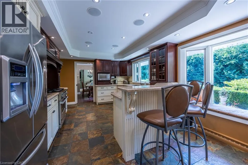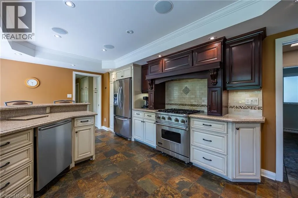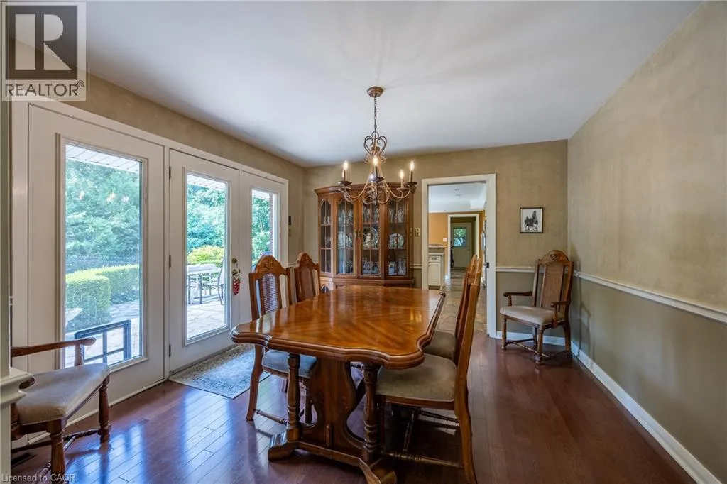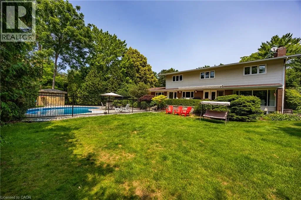 Head south on Highway 24, turn left onto Robinson Street, then right onto Lynndale Road. Turn right onto Summit Circle and follow the circle to the right. Located in Simcoeâs most exclusive, quietest and mature neighbourhood. This beautifully maintained 5-bedroom, 3-bathroom, 2,600+ sq. ft. home is surrounded by tree-lined streets and backing onto the Norfolk Golf & Country Club. This brick 2- storey home offers the perfect blend of privacy, comfort, and convenience. Step inside to a spacious main floor featuring gleaming hardwood, a sun-filled living room with wall-to-wall windows, and a floor-to-ceiling natural stone wood-burning fireplace. The gourmet kitchen is a chefâs dream, complete with granite counters, a Viking gas stove, high-end appliances, Winger cabinetry, a pantry, and views of the backyard and pool. A 2-piece bath, mudroom/laundry with side entrance, and direct access to the backyard complete the main level. Upstairs, the primary bedroom includes a 4- piece ensuite, while four additional bedrooms share a large 4-piece bath with granite counters and double sinksâperfect for families or guests. The lower level offers a recroom with custom built-in shelving and a spacious unfinished area ideal for storage. The backyard is your private retreat: a fully fenced, heated kidney-shaped pool, expansive flagstone patio, pool house, retractable awning with LED lighting, built-in sound system, and lush landscaping. Ornamental trees, perimeter lighting, and a driveway with parking for 10 add to the curb appeal. Located just minutes from downtown Simcoeâs restaurants, shopping, schools, and hospitalâand only a short drive to Norfolk Countyâs best beaches, trails, wineries, golf courses, and marinasâthis is more than a home; itâs a lifestyle opportunity in the heart of Norfolk County. Check out the virtual tour and book your private showing today. (id:27476)