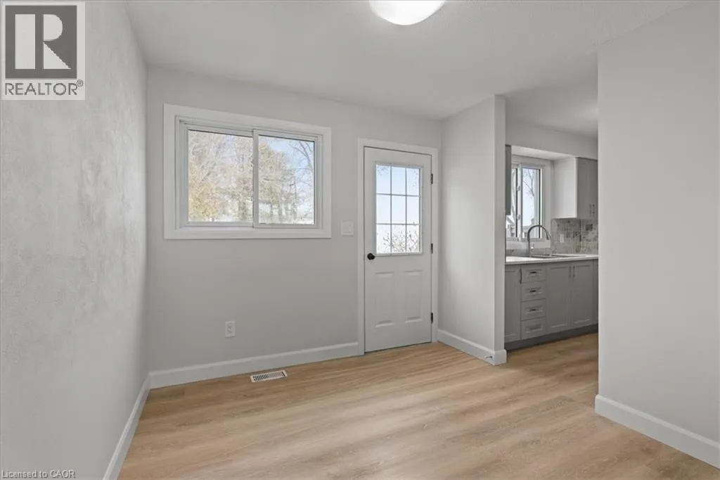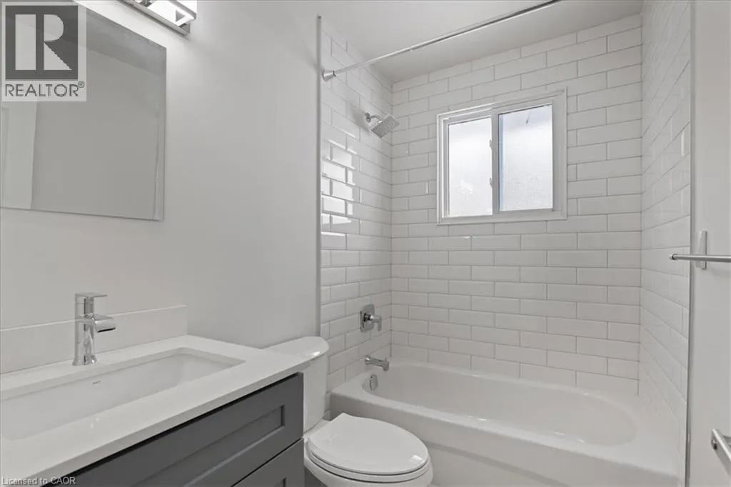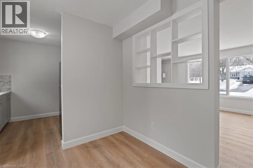 Beautifully semi-detached has been completely renovated with new new trim, lighting, doors, carpeting and lifeproof vinyl flooring throughout. The bright new kitchen features a tiled backsplash, new SS fridge & stove and a view of the backyard. The upper floor has two bedrooms, larger bedroom features two closets. The freshly renovated washroom features a subway tiled surround. The laundry area is tucked at the rear of the lower level and includes the washer and dryer. Further development potential for a rec room with good sized windows. Walk out from the dining area to the concrete patio. Good sized backyard with a spacious shed for additional storage. (id:27476)