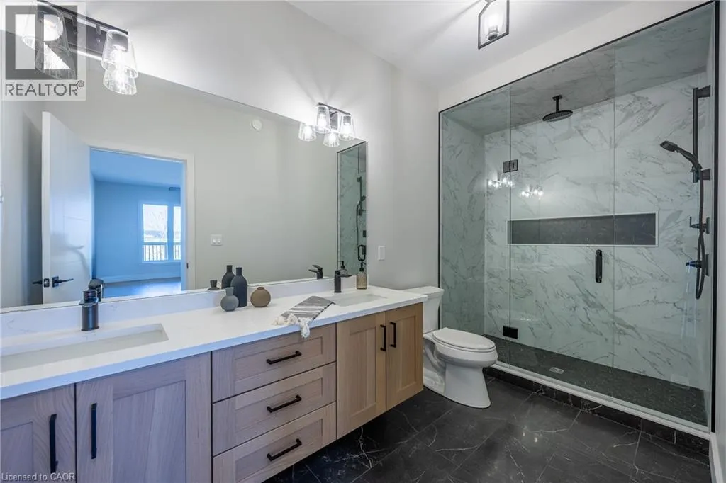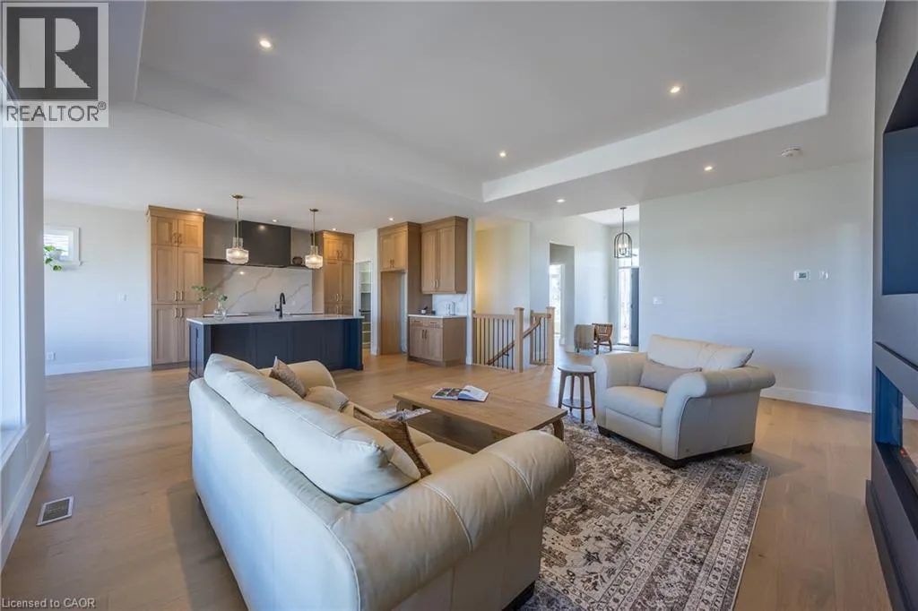 From HWY 3 (QUEENSWAY) TURN ONTO IRELAND RD, TURN ONTO ANDREW AVENUE Beautiful new bungalow offering 1,658 sq. ft. of modern living, this home combines style, function, and a prime location close to shopping, dining, schools, and all the amenities Simcoe has to offer. The exterior features timeless stonework, a covered front porch with stained pine entrance, and great curb appeal. Step inside to 9 ft ceilings throughout, a stunning 10 ft tray ceiling in the living room, and an electric fireplace that adds warmth and charm. The open-concept kitchen/dining area includes an island, custom cabinetry, and a walk-in pantryâperfect for both everyday living and entertaining. Walk out from the dining area to a covered upper deck, and from the finished basementâs rec room to a lower patioâcreating seamless indoor-outdoor living. The main floor offers two generous bedrooms, including a primary suite with a walk-in closet and a spa-like ensuite featuring a tiled shower with glass door. A stylish 4 pc bath completes the main level. The oversized garage with insulated doors provides direct access to the laundry room, offering both convenience and practicality. The finished basement expands your living space with a spacious rec room, bedroom, full bathroom, storage, and utility room. Donât miss this opportunity to own a stunning new homeâmove-in ready and waiting for your personal touch. Book your private viewing today! (id:27476)