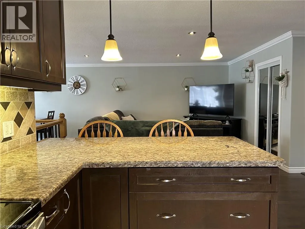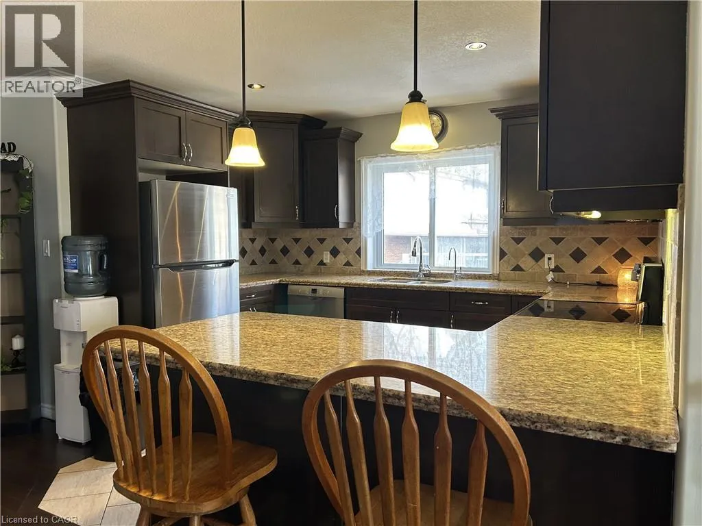 Norfolk St S. to Victoria St E to Homewood Ave Welcome to 1-8 Homewood Ave in Simcoe! This impressive all-brick end-unit townhouse has over 2,000 sq ft of living space....and best of all....NO CONDO FEES. Step inside to an open-concept main floor featuring tile and hardwood flooring throughout. The kitchen is both stylish and functional, showcasing granite counter tops, stainless steel appliances, under-cabinet lighting, and plenty of counter space â ideal for entertaining or everyday living. Two spacious bedrooms including one with sliding doors, giving you access to a walk out deck. A 4-piece bathroom and indoor access to the single car garage completes the main floor. The finished lower level has a recreation room with walk-out to the backyard, an additional bedroom, 3-piece bathroom, laundry room, and a versatile bonus room perfect for a fourth bedroom, home office, or fitness space. Complete with a fully fenced yard, concrete driveway and plenty of room for storage. Perfect for first time home buyers or those looking to downsize. (id:27476)