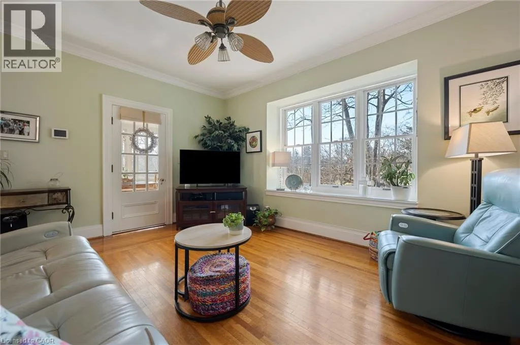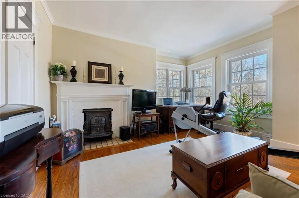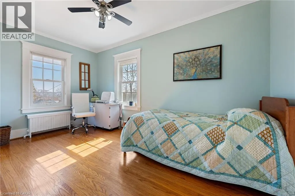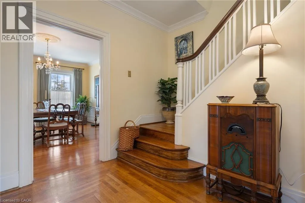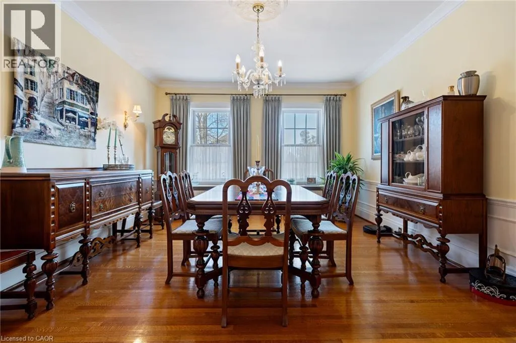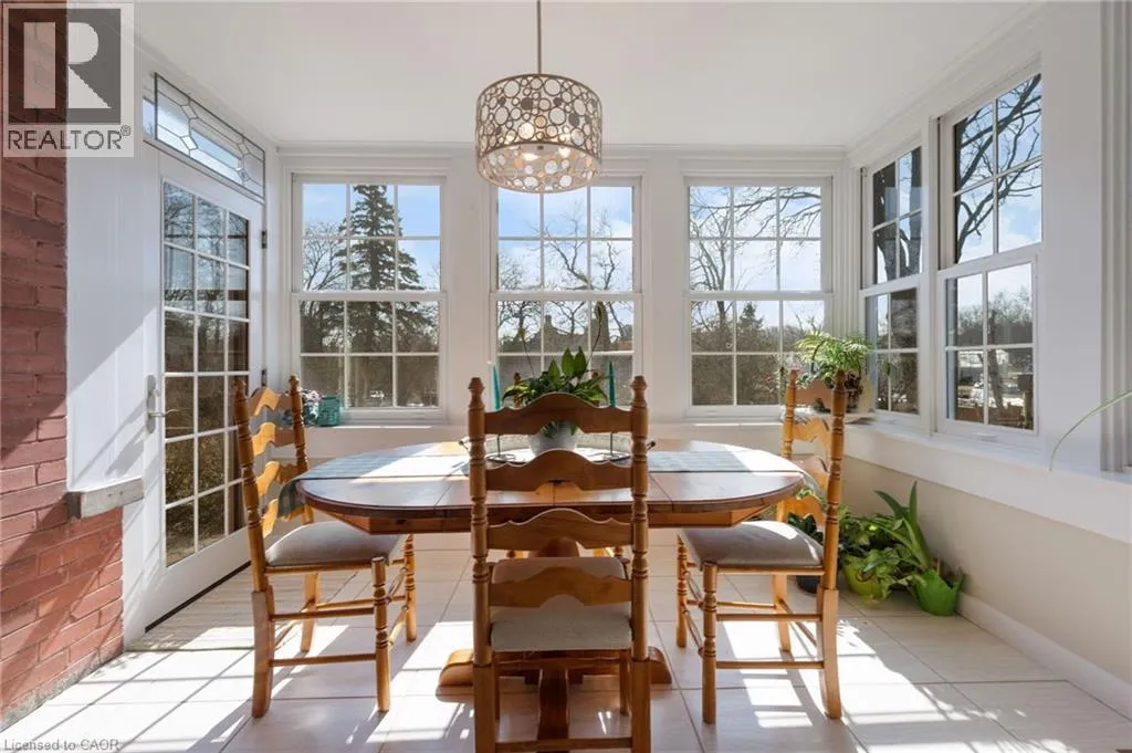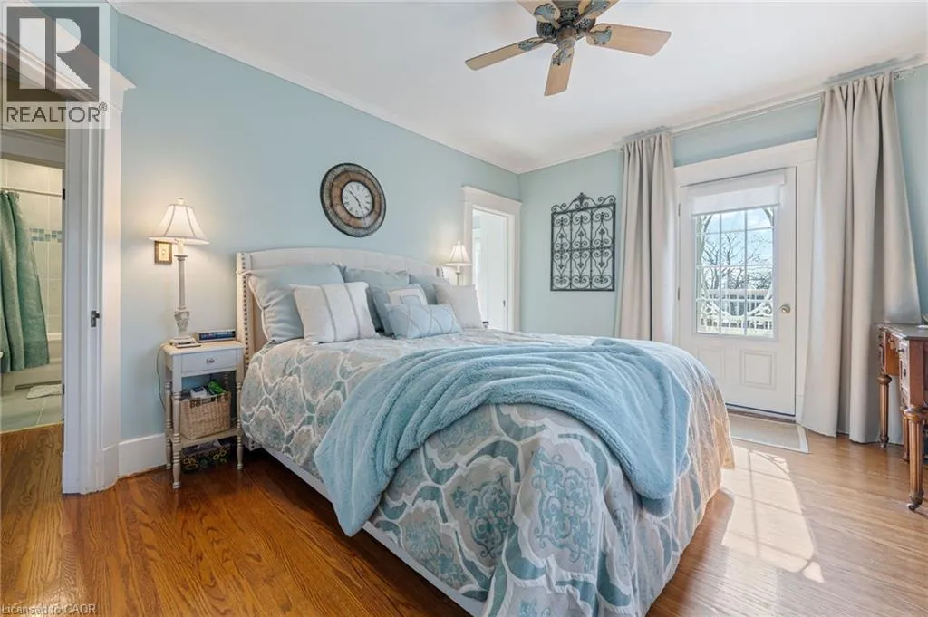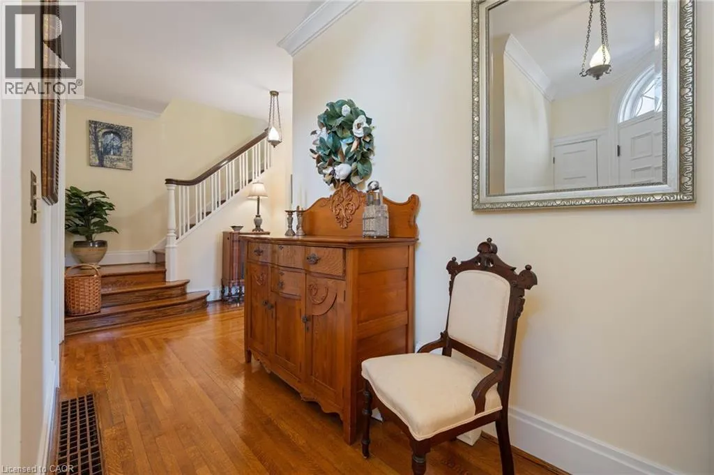 Set on a beautifully landscaped corner lot along one of Simcoeâs most established streets, this stately red-brick character home has been lovingly maintained by the same owner for over 30 years. Mature gardens surround the property, creating a private and peaceful setting with colourful perennial beds, flowering shrubs, and inviting outdoor spaces. Inside, the home blends timeless character with thoughtful updates. Original hardwood floors, classic trim and millwork, and a gracious centre hall staircase reflect the homeâs early craftsmanship. The main floor offers spacious principal rooms, a bright sunroom filled with natural light, and a well-appointed kitchen with granite counters and solid wood cabinetry. A convenient laundry/mudroom adds everyday practicality. The sunroom offers a particularly inviting place to start the day with morning coffee while overlooking the gardens. Upstairs, generously sized bedrooms feature hardwood floors and large windows. The renovated ensuite includes heated flooring and a glass walk-in shower, while updates throughout the home reflect the care and pride of long-term ownership. This is a rare opportunity to own a beautifully preserved home where character, comfort, and mature gardens come together in one of Simcoeâs most desirable neighbourhood settings. (id:27476)