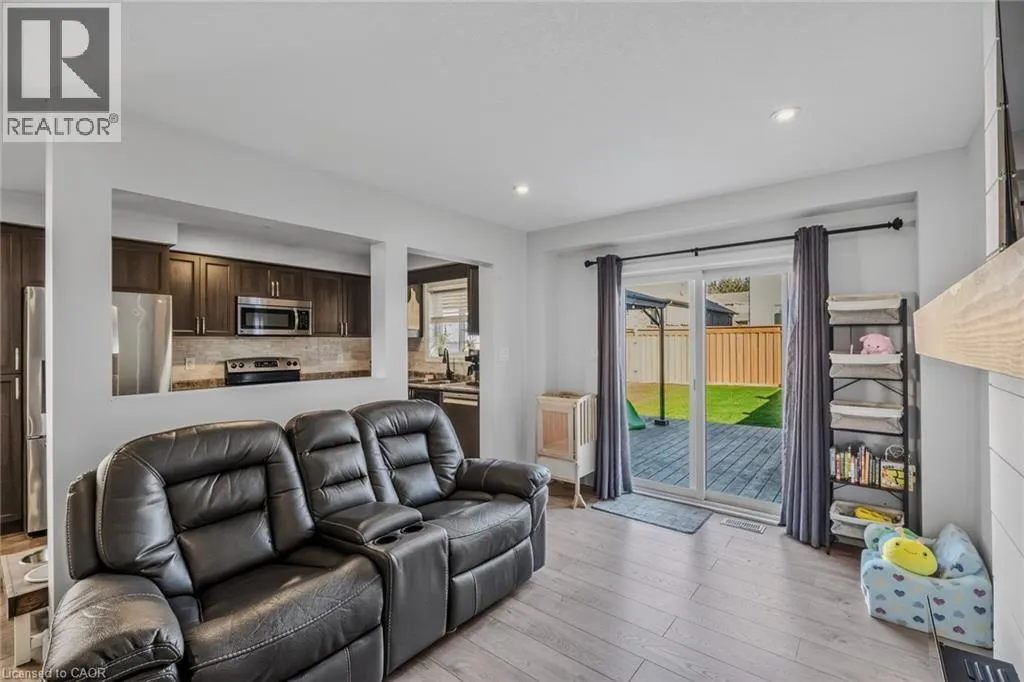DONLY TO WOODWAY TO TRILLIUM WAY Welcome to this well cared for 2-storey semi-detached home offering approximately 1,550 sq ft with 3 generously sized bedrooms. The main floor features a bright kitchen with plenty of counter space and a dining area, complete with stainless steel fridge, stove, over-the-range microwave, and dishwasher. Decora ceramic tile flooring adds a clean, updated feel. Step outside to a fully fenced backyard with low-maintenance turf, a large deck, and gazebo â an ideal setup for relaxing or hosting. Upstairs offers 3 bedrooms, including a spacious primary bedroom with a 3-piece ensuite and glass walk-in shower. The partially finished basement provides additional living space with flexibility for future use. Paved driveway with single-car garage and convenient inside entry. Garage door opener included. High-efficiency natural gas furnace and central air. Situated in a quiet, family-friendly neighbourhood in Simcoe, close to schools, shopping, and everyday amenities, and just a short drive to Port Dover Beach. Don't miss this amazing opportunity to live in this beautiful community Conveniently located in Simcoe Ont. close to Schools, School Bus Routes, churches, SHOPPINGG AND ALL AMENITIES JUST A FEWSHORT MINUTES DRIVE TO LOCAL VINEYARDS, BREWERIES AND PORT DOVER BEACH! (id:27476)