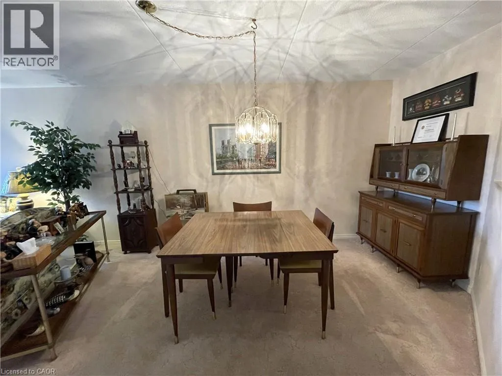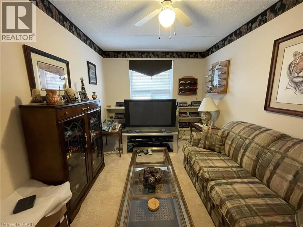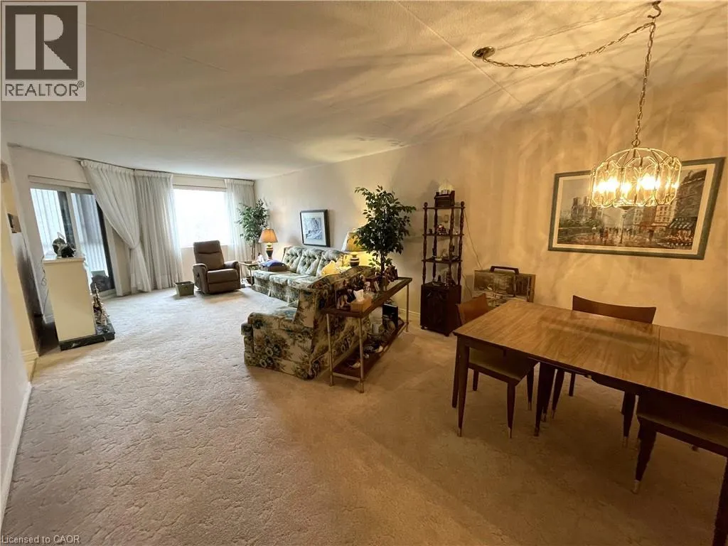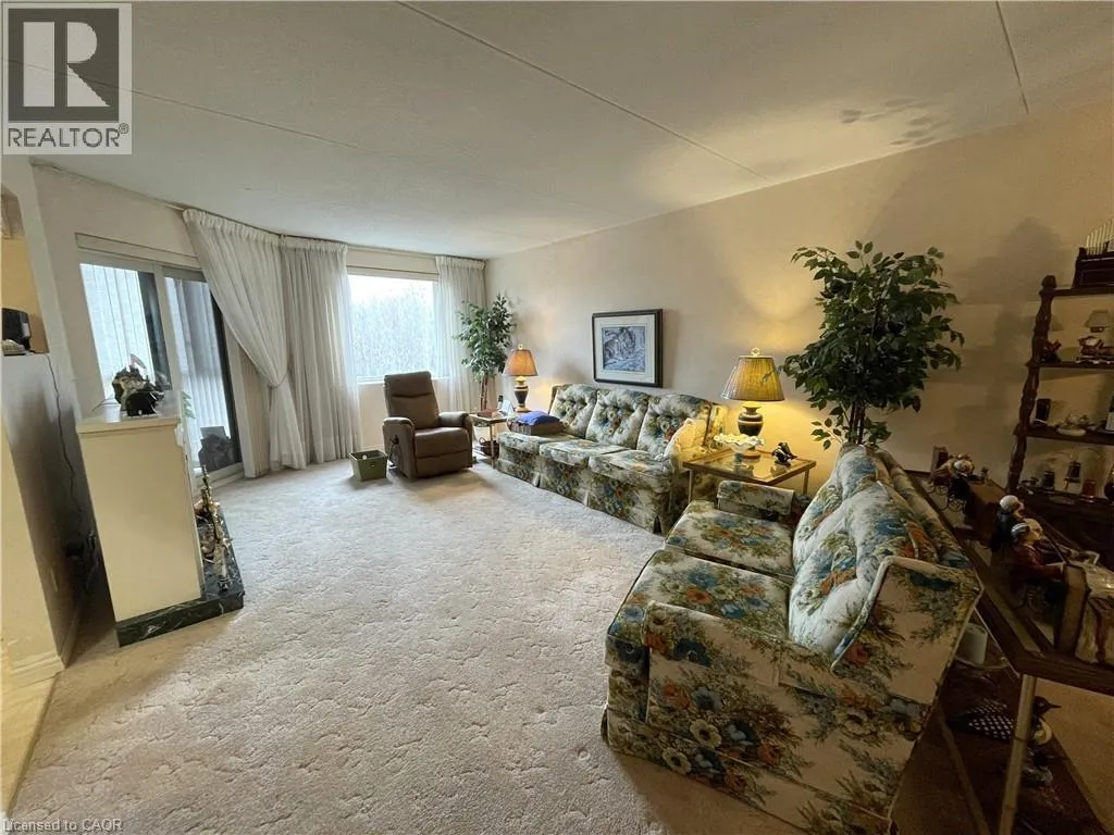 Looking for a lifestyle change? Tired of shovelling snow and cutting the grass? Check out this well maintained 2 bedroom condo in Simcoe. Park in your exclusive parking space and head in through the controlled entry. Common spaces on the mainfloor include a sitting area in the entrance and a party room with kitchenette. Down the hall leads to the elevator (newly installed 2024). Head up to the sixth floor to find Unit #606. Open the door to a foyer with closet for coats and shoes. Next is an open concept dining and living room, perfect for relaxing or entertaining guests. Now enter the eat-in kitchen with ample cupboard space and room to enjoy your morning coffee. Down the hall is the utility/laundry room, the first 3 piece bathroom and the first comfortable bedroom (presently used as a den). Next is the spacious primary bedroom with two closets and the 4 piece ensuite. Looking for more? Step out to the enclosed private balcony with lovely views of the mature tall trees outside. This cozy condo is located near shopping and more, providing both convenience and comfort! (id:27476)