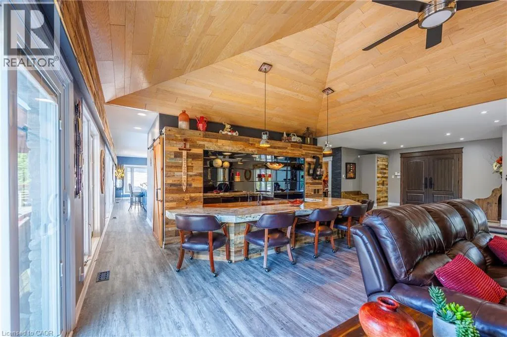 COCKSHUTT RD TO 1285 COCKSHUTT RD HOUSE IS ON THE WEST SIDE OF RD. Experience refined country living in this extraordinary custom-built estate set on over 20 acres of private, scenic land. Backing onto a beautiful golf course and featuring two natural ponds, groomed trails , this one-of-a-kind property offers a rare blend of luxury, tranquility, and future potential with flexible OS zoning. With more than 8,200 sq ft of thoughtfully designed living space, the home showcases exceptional craftsmanship and attention to detail throughout. It offers 5 generously sized bedrooms, each complete with its own ensuite . A main floor office provides the option for a sixth bedroom if desired. At the heart of the home, the chef-inspired kitchen features stainless steel appliances, a spacious pantry, and an oversized island ideal for gathering. A fully equipped second kitchen on the lower level adds versatility, perfect for extended family living or large-scale entertaining. The living spaces are warm yet impressive, highlighted by vaulted wood ceilings, expansive windows, multiple fireplaces, and a custom-designed bar area, creating the perfect setting for both everyday comfort and upscale hosting. The primary suite offers a private retreat with heated flooring and a spa-like ensuite designed for relaxation. Step outside to enjoy beautifully maintained grounds complete with a private pond and bridge, three large custom decks with a gazebo, and open space ideal for events or recreation. The property is already equipped with hydro, water, and internet to support outdoor functions, along with parking for up to 40 vehicles. Additional features include a heated 3-car garage with bathroom rough-in, updated roof with skylights, a repaved driveway, upgraded LED lighting, operated on a central system , a grand custom front entrance, and a modern ultraviolet water system. This exceptional estate offers endless possibilities, whether as a luxurious family residence, an entertainerâs dream, or a unique live/work opportunity in a peaceful natural setting. (id:27476)