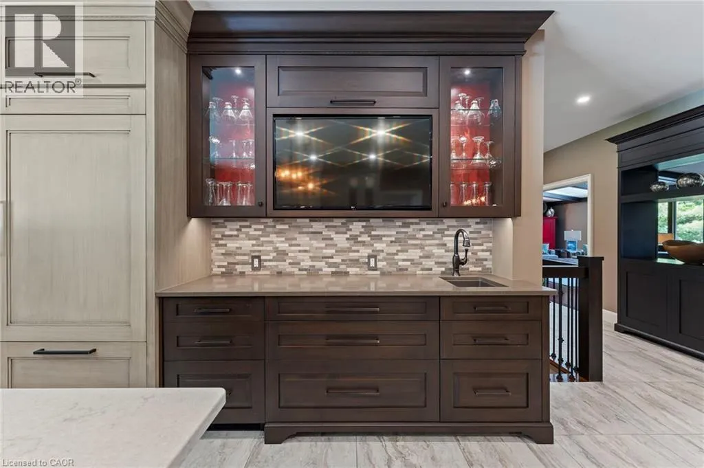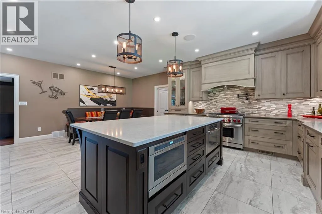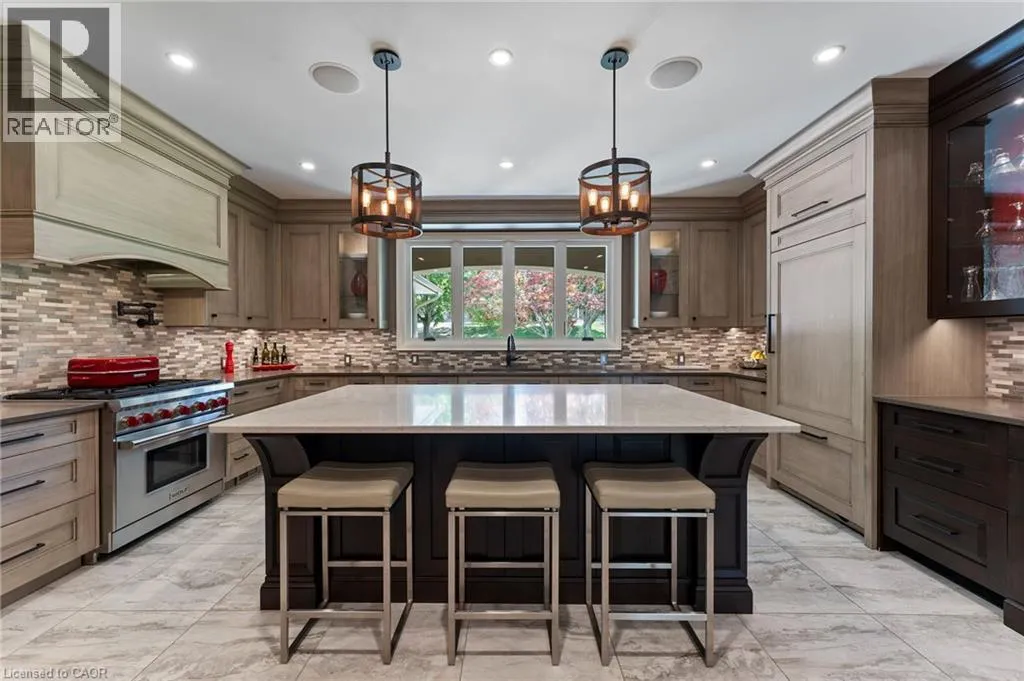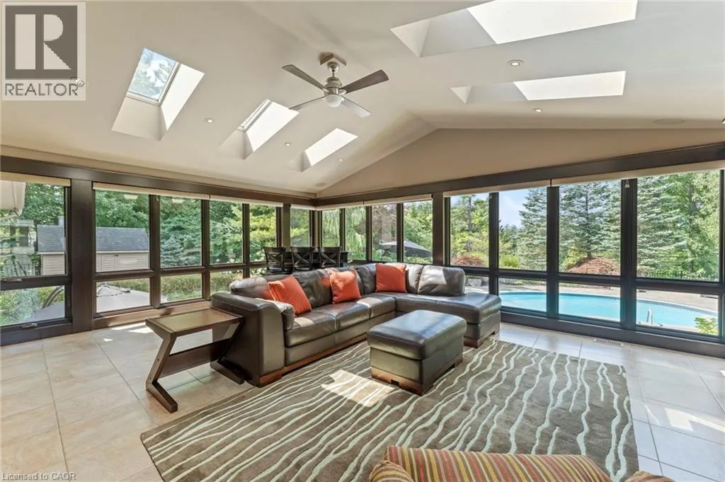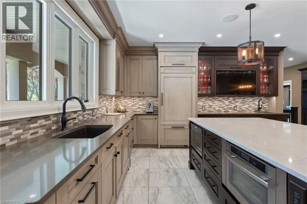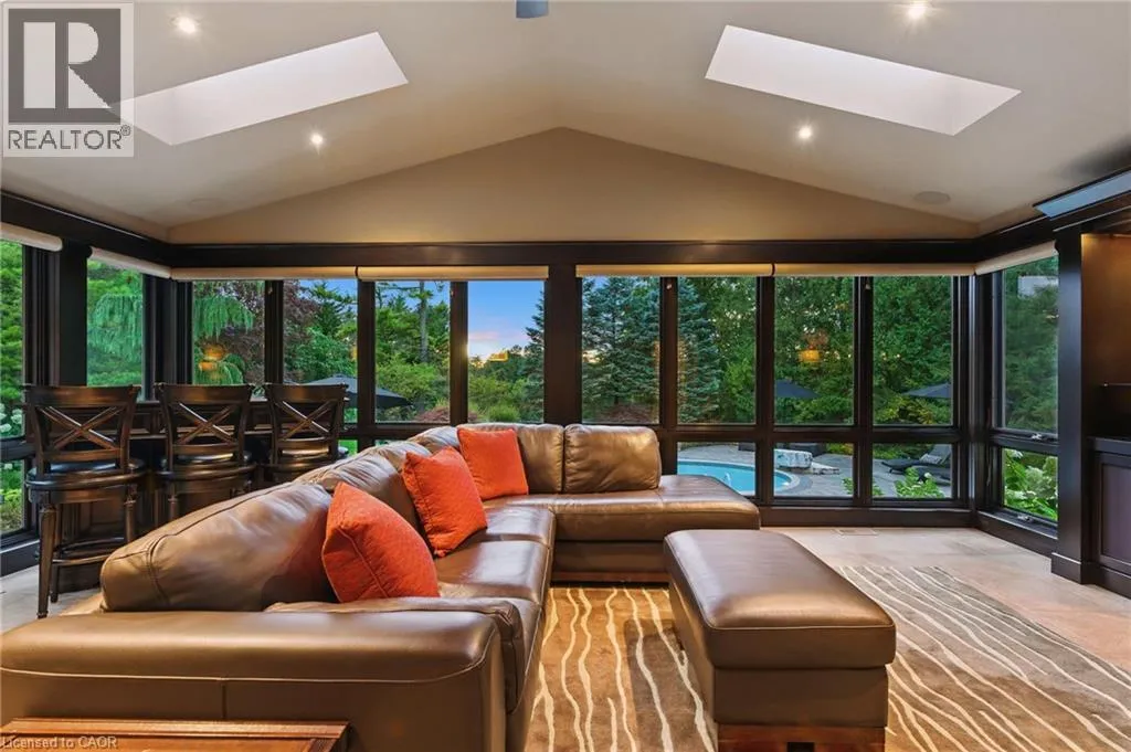 From West Street, turn right on to Holden Ave, left on to Sunset. An architectural masterpiece, this exceptional 3 Bedroom, 4 Bath bungalow offers over 5,000 sq ft of refined living space, set on just over half an acre with breathtaking ravine views and protected natural surroundings. Designed with intention and finished to the highest standard, this home seamlessly blends timeless elegance with modern luxury. A covered front veranda with square-cut flagstone welcomes you into a grand foyer where craftsmanship, custom millwork, and designer finishes immediately impress. The main living space flows effortlessly into a stunning solarium, perfectly positioned to capture the beauty of the backyard retreat. The gourmet chefâs kitchen is both sophisticated and functional, featuring quartz countertops, heated floors, steam oven, warming drawer, microwave drawer, and an undercounter double-drawer refrigerator. The private primary suite offers two custom walk-in closets and a spa-inspired 5 piece ensuite. A separate wing provides two additional bedrooms, a dedicated office, 4 piece bath, and a well-appointed mudroom and laundry area with custom storage and access to the double garage with epoxy floors and separate basement entry. The lower level is designed for entertaining and relaxation, complete with a spacious family room with gas fireplace and walkout, games room, 3 piece bath, and ample storage. Outdoors, a true resort-style setting awaits. The covered kitchen is a showpiece with granite counters, wet bar, fridge, dishwasher, built-in BBQ, side burner, and gas fireplace. A sunken patio leads to a resurfaced, heated concrete saltwater pool, complemented by a TREX deck, hot tub, invisible fencing, and a full irrigation system. Surrounded by LPRCA lands, this property offers unmatched privacy. A rare offering where luxury, lifestyle, and nature come together. (id:27476)