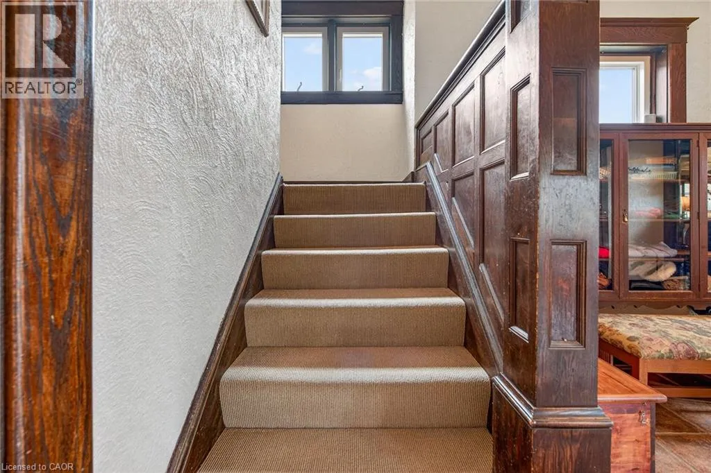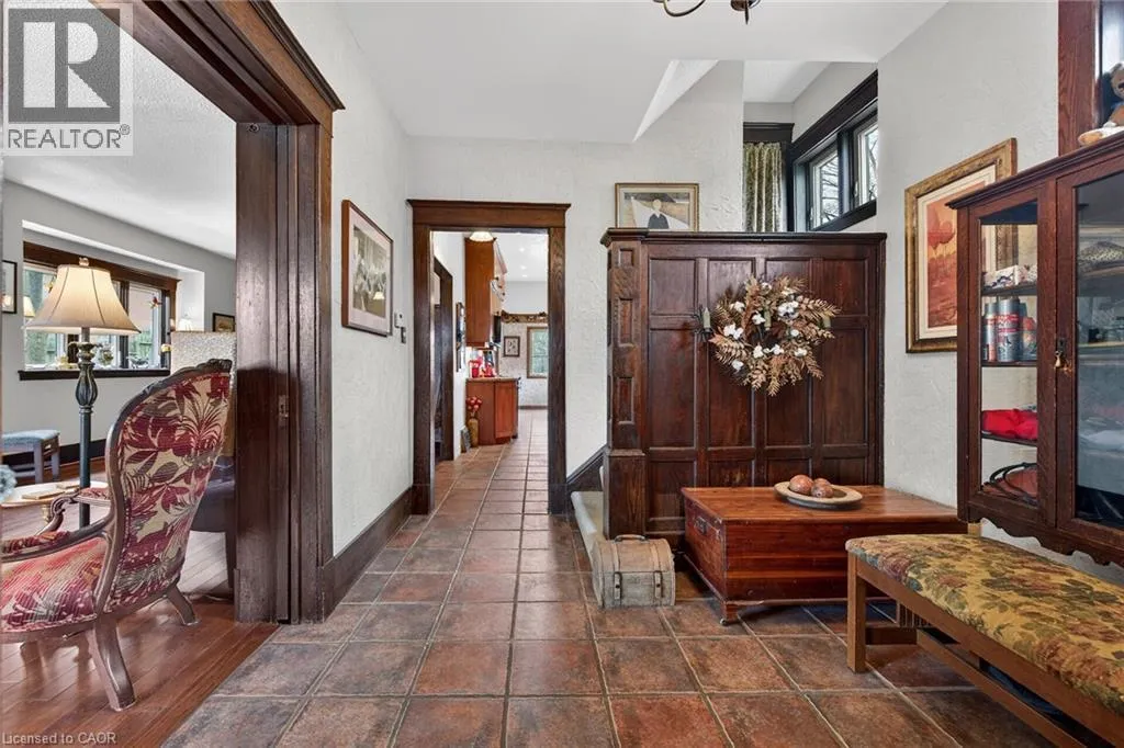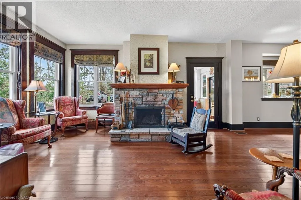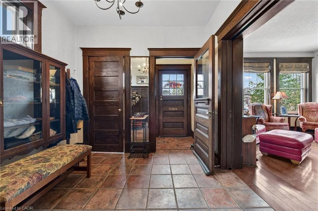 Heritage charm meets modern convenience in 158 Talbot St. North, a four-bedroom century-plus home. Set on a quiet street, close to schools, parks, churches, shops, recreation facilities and the library, this house is ideally situated. A custom-built curved stone wall and stairs invite you into the main floor, complete with a vestibule, powder room and large foyer. High ceilings and original woodwork, including pocket doors, add period charm to the main floor. The large living room features a wood-burning fireplace and dual-aspect windows, while solid hickory hardwood floors extend through to the dining room. A three-season sunroom extends the main-floor living space, and the custom-designed chef's kitchen features ceiling-high solid maple cabinetry and granite countertops. A large walk-in pantry affords amazing storage space, and a breakfast and office area complete the main floor. Upstairs are four spacious bedrooms, all with cork flooring, and an enormous custom-built dressing room off the primary bedroom. Heated tile flooring warms your toes in the updated bathroom, with a separate tub and walk-in shower. A large attic space above provides further possibilites for living and storage space. The basement offers a family room with heated tile flooring, a powder room and laundry room, in addition to a utility room with lots of storage. Step outside and enjoy the fenced backyard, complete with a large heated in-ground pool, several seating areas, and extensive perennial-filled gardens. A large deck off the sunroom has a gas hook-up ready for your BBQ, and a shed provides storage for bikes, tools and lawn equipment. Upgrades include a metal shingled roof; custom iron fence, gates and railings; modern windows and central air, all of which contribute character, charm and peace of mind. This must-see property offers a discriminating buyer a chance to own a piece of Simcoe's History. (id:27476)