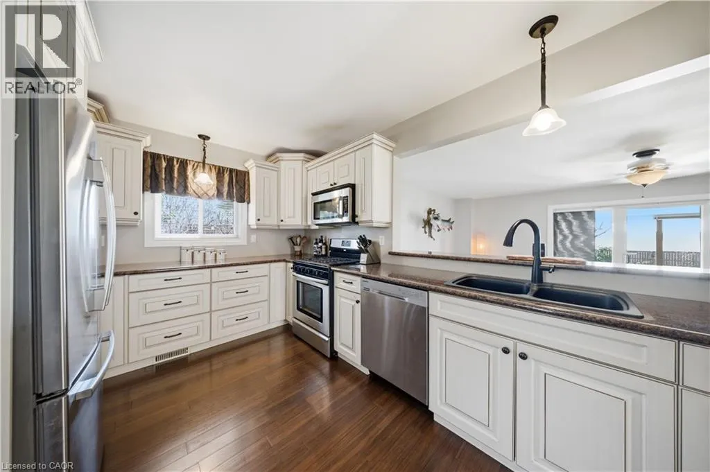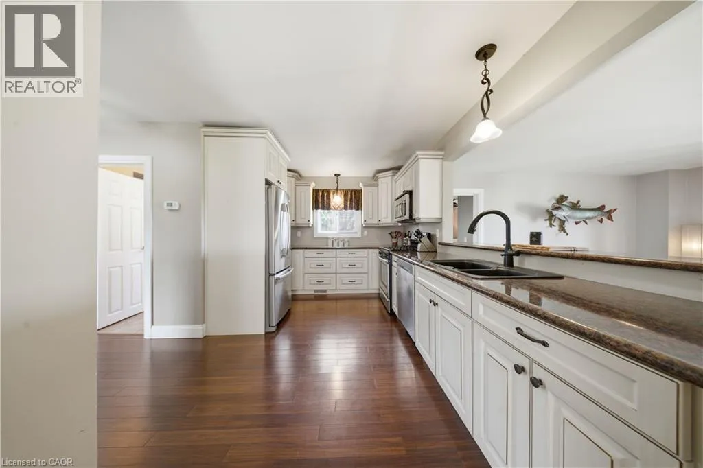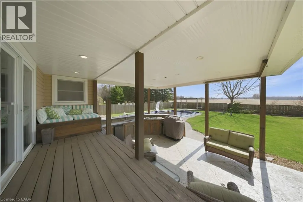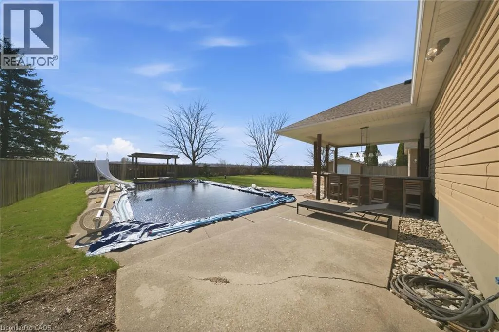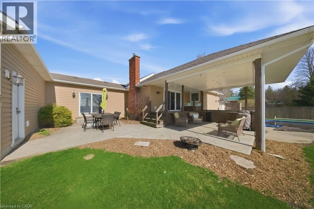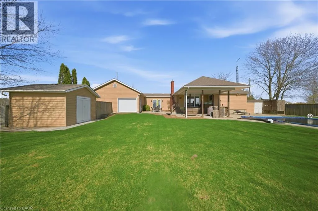 HWY 3 to Hillcrest Road go through lights at West(McDowell) and property is on the right Welcome to 322 Hillcrest Rd. A well maintained 3-bedroom, 2-bathroom bungalow set on a .37-acre lot, offering a quiet rural setting just minutes from Simcoe. Originally built in 1944, this home has seen extensive renovations over the years, including a garage and entrance addition (2015), creating a functional layout suited for everyday living. The main level features engineered hardwood floors, a bright living space with gas fireplace, and three comfortable bedrooms with the primary bedroom having double closets, 3 pc ensuite & a sauna. The finished basement has a rec room, home office & laundry. Key updates include a drilled well (2019), newer A/C (2025), gas forced air heating, Rogers fibre optic service. The home is finished with vinyl siding and includes a double attached garage with a work bench and a rear roll-up door giving you quick access to your backyard. Recycled asphalt driveway, plenty of room for parking. The backyard is set up for enjoyment and entertaining, featuring a fully fenced yard, inground pool, and a covered outdoor living and cooking area complete with a wet bar, fridge, cooktop and stamped concrete, a great space to host family and friends. Open field views behind the property provide privacy and stunning sunset views. This is a clean, move-in ready home offering a balance of rural living with convenient access to Simcoe, local hospital, schools, and recreation. A short drive brings you to Lake Erie beaches, marinas, golf courses, wineries, and all that Norfolk County has to offer. A solid family home in a desirable location. (id:27476)