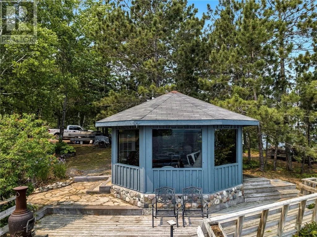 One of the finest properties along the shores of prominent Lake Wahnapitae with measures taken by the Seller to retain the site's natural integrity while building improvements to high standards. Occupying the north-east section of a point being approx. 1.73 acres with over 200 feet of shoreline, the views/exposure are commanding and the topography very compatible for all family members. The driveway has a gentle grade from the road to the 24' x 32' x 11.9' (H) heated garage an continues to the large nearly level waterfront section improved with a 5 year old dock with timber cribbing, 18.5' x 30.5' wet boathouse with 2nd level finished/heated loft, 16' diameter gazebo, and perfect trailer location with hydro & water connections. The exterior of the boathouse, garage, and gazebo is all cedar, improvements serviced with hydro (underground), and several superb locations to build your home or cottage. A definite candidate if your looking for premium waterfront! (id:27476)