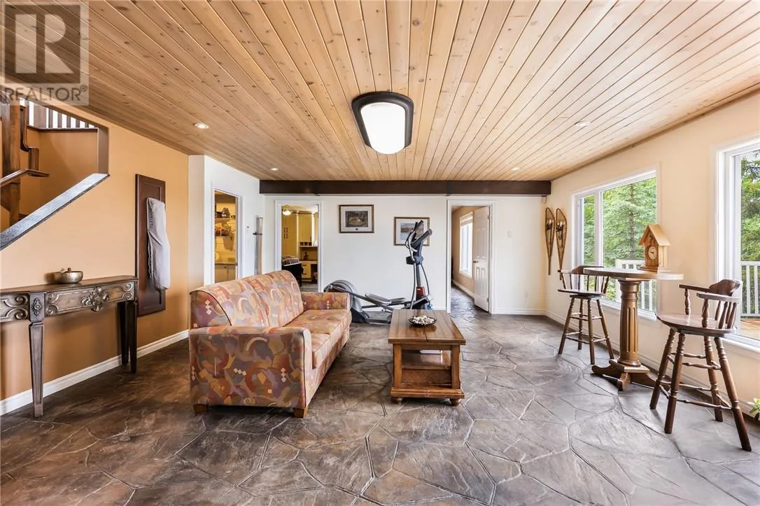 Welcome to your private lakeside paradise on beautiful Lake Wanapitei. This custom built, one owner home sits right at the waterâs edge on an ultra private lot, offering a rare combination of serenity, craftsmanship, and year round comfort. With 3 bedrooms and 2 bathrooms, this lake level walkout home features an open concept design and high end finishes throughout. The kitchen boasts exceptional, top tier cabinetry, while built in custom cabinetry adds both charm and functionality across the home. The entertainment area is anchored by a stunning reclaimed BC fir beam, sourced from a 150 year old building, and includes the pool table as part of the sale. Step outside onto the massive deck, where you'll feel like you're floating on the lake itself. A covered boat structure, dock, and included boat lift ensure your watercraft is well protected. The boat is also available for purchase. Just steps from the shoreline, you'll find a convenient outdoor electric sauna, perfect for relaxing after a day on the water. There is also an existing wood fireplace structure if you wish to convert it back for that cozy, rustic feel. The massive garage is 22 x 40 and is fully insulated and heated. This is more than a home, itâs a lifestyle. Donât miss this rare opportunity to own a piece of Lake Wanapiteiâs waterfront. Go to this link for a 3D tour of the house: https://my.matterport.com/show/?m=1WeEGatfKgg& (id:27476)