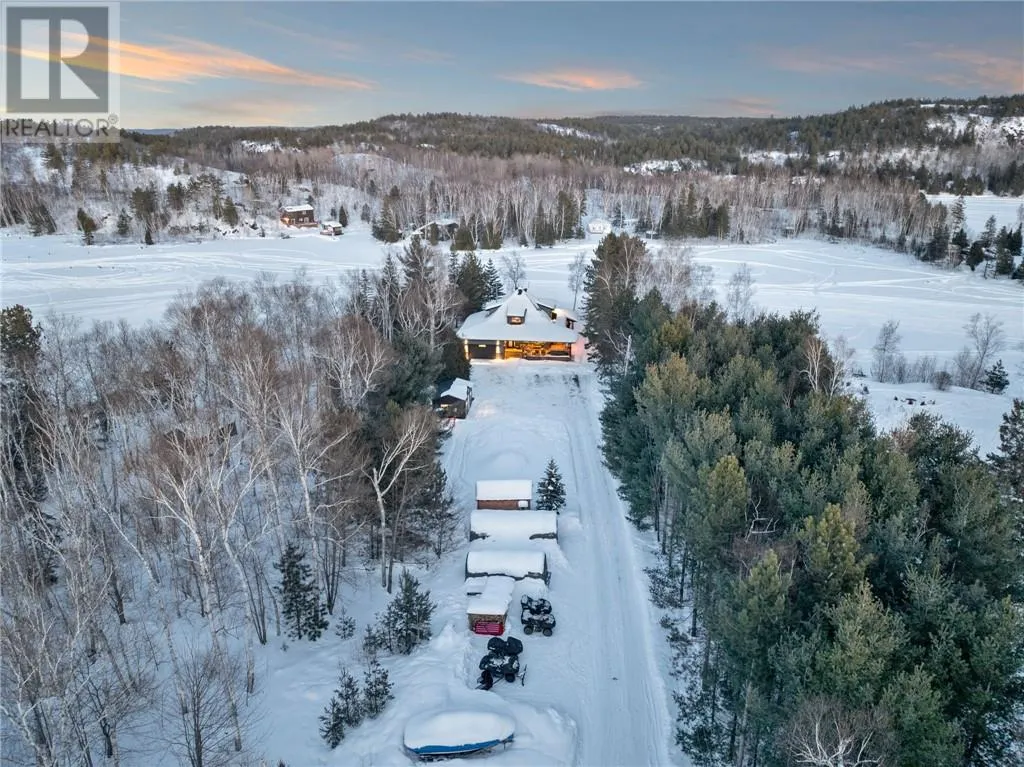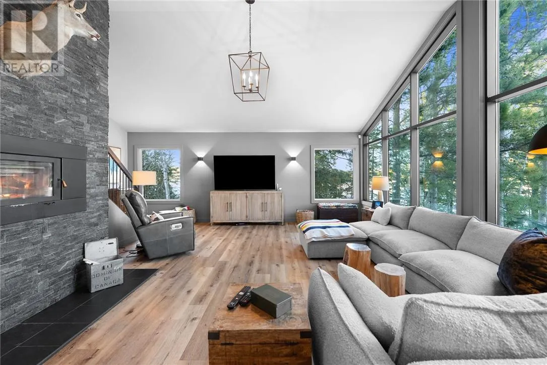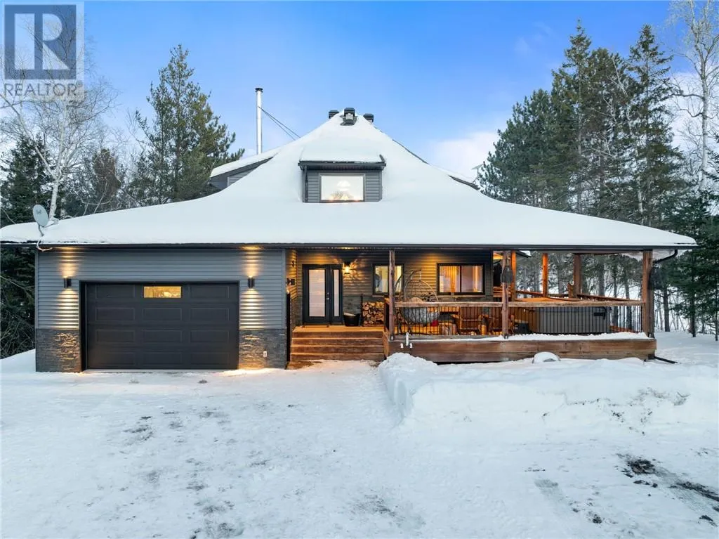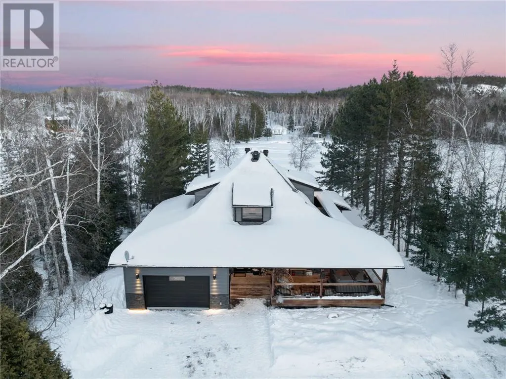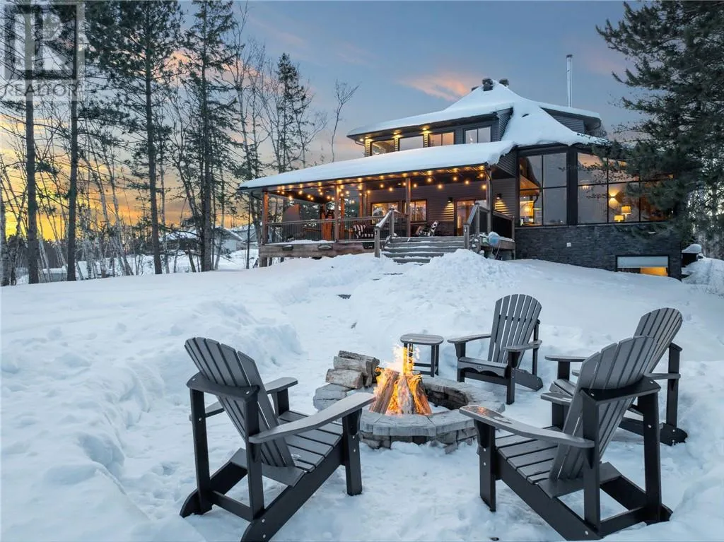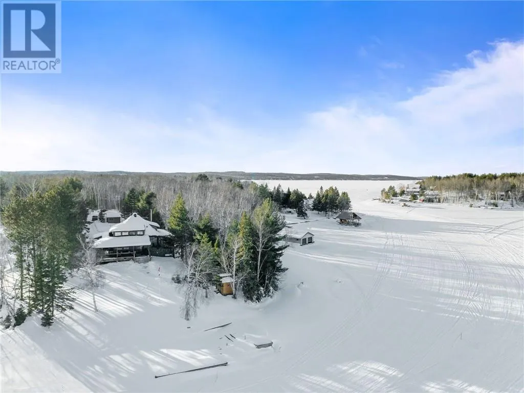 Rare Waterfront Retreat on Lake Wahnapitae â Kolari Bay A truly exceptional opportunity to own a custom-built 3-bedroom (1+2), 3-bath lakefront residence on the pristine shores of Kolari Bay. This peaceful retreat is surrounded by mature pines and features a gently sloping lot, sandy shoreline, and outstanding outdoor livingâideal for year-round enjoyment. Offering over 3,000 sq ft of total living space, this meticulously maintained home is designed for both comfort and entertaining. The open-concept great room is filled with natural light and showcases a striking floor-to-ceiling stone fireplace, granite countertops, and built-in stainless steel appliances, including a premium Wolf stove. Step outside to the elegant wrap-around covered patio overlooking beautifully landscaped grounds and panoramic lake views. The upper-level primary suite is a private sanctuary, complete with a 5-piece ensuite, walk-in closet, and separate loft space. The lower level features two bright bedrooms, each with double closets and excellent storage. Notable upgrades and features include a sauna, Bullfrog R-series hot tub, upgraded water filtration system, updated cantilevered dock, and an insulated bunkie with hydro a propane fireplaceâperfect for guests, a studio, or cozy year-round use. Conveniently located just 20 minutes from Greater Sudbury and 10 minutes from Greater Sudbury Airport. A rare blend of luxury, privacy, and accessibilityâbook your private showing today. (id:27476)
