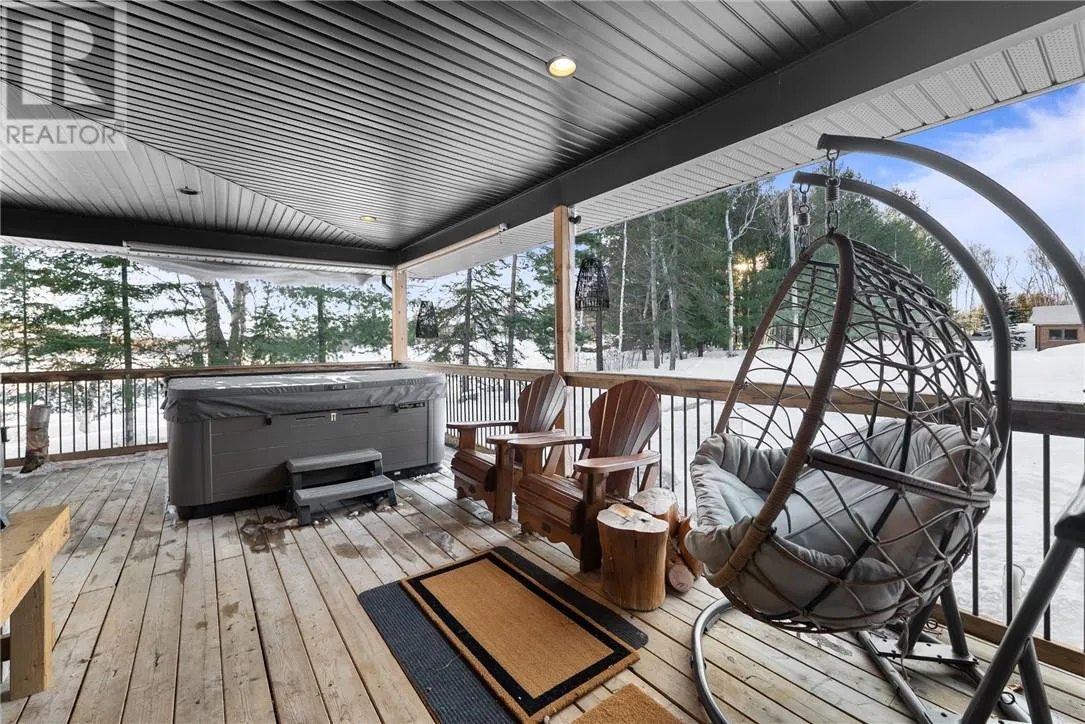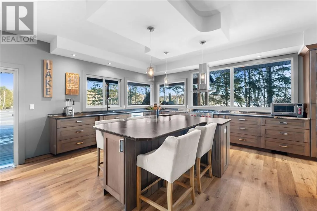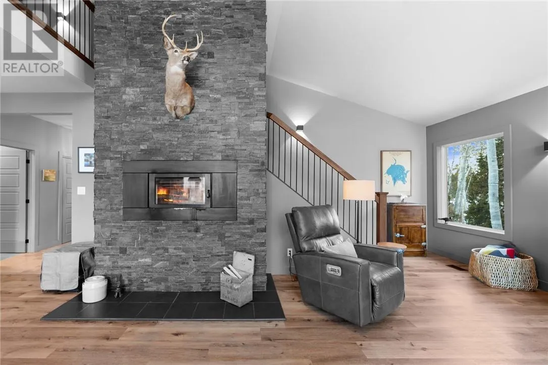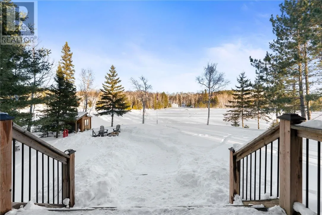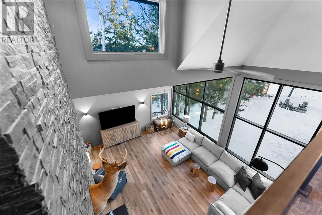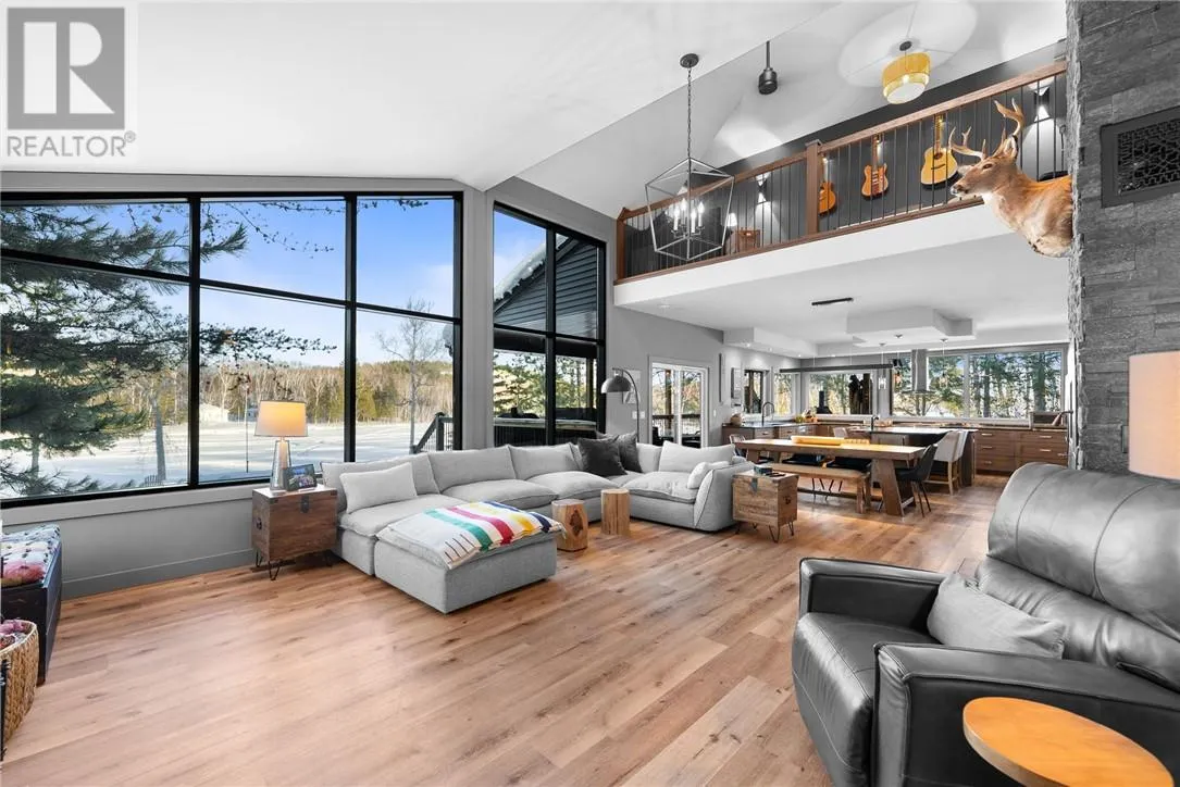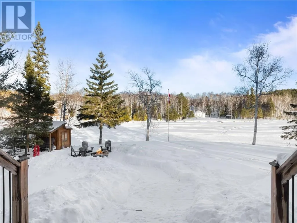 Rare Waterfront Retreat on Lake Wahnapitae â Kolari Bay A truly exceptional opportunity to own a custom-built 3-bedroom (1+2), 3-bath lakefront residence on the pristine shores of Kolari Bay. This peaceful retreat is surrounded by mature pines and features a gently sloping lot, sandy shoreline, and outstanding outdoor livingâideal for year-round enjoyment. Offering over 3,000 sq ft of total living space, this meticulously maintained home is designed for both comfort and entertaining. The open-concept great room is filled with natural light and showcases a striking floor-to-ceiling stone fireplace, granite countertops, and built-in stainless steel appliances, including a premium Wolf stove. Step outside to the elegant wrap-around covered patio overlooking beautifully landscaped grounds and panoramic lake views. The upper-level primary suite is a private sanctuary, complete with a 5-piece ensuite, walk-in closet, and separate loft space. The lower level features two bright bedrooms, each with double closets and excellent storage. Notable upgrades and features include a sauna, Bullfrog R-series hot tub, upgraded water filtration system, updated cantilevered dock, and an insulated bunkie with hydro a propane fireplaceâperfect for guests, a studio, or cozy year-round use. Conveniently located just 20 minutes from Greater Sudbury and 10 minutes from Greater Sudbury Airport. A rare blend of luxury, privacy, and accessibilityâbook your private showing today. (id:27476)