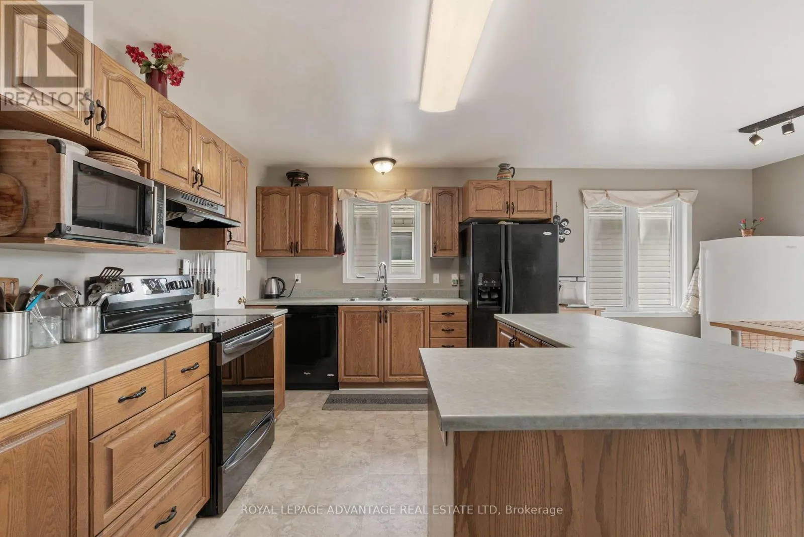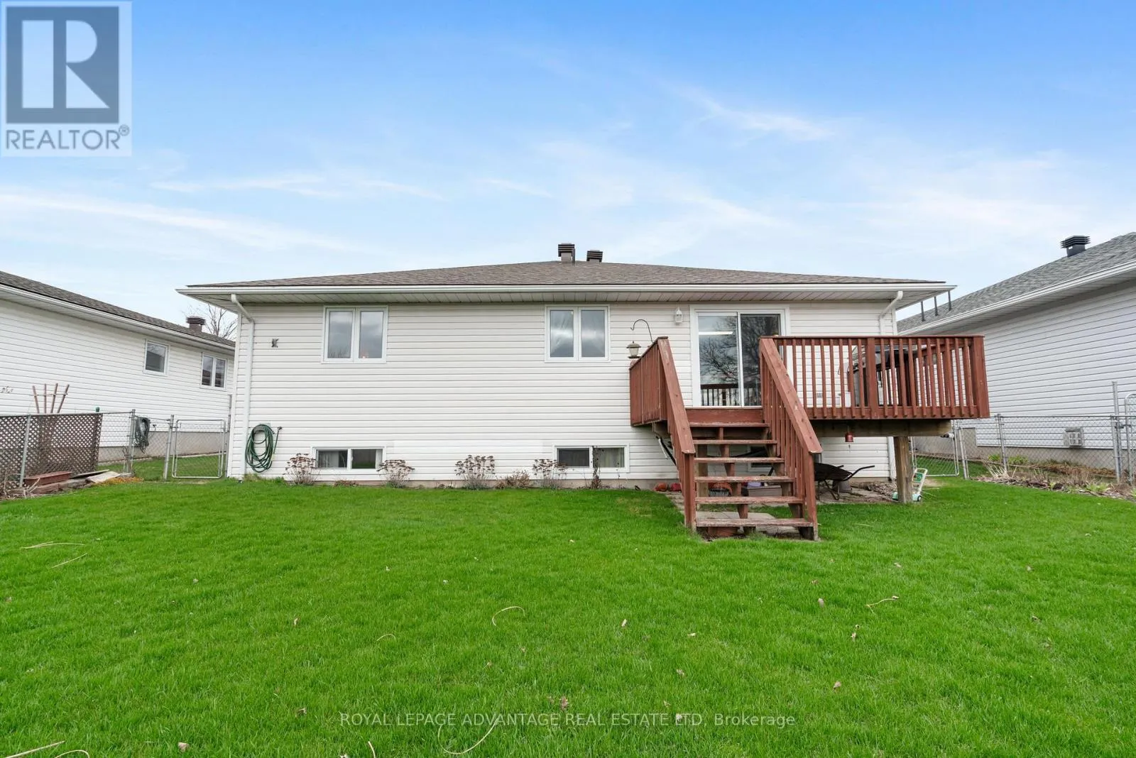 Cross Streets: Ross St. ** Directions: From downtown Smiths Falls, take Brockville St to left on Ross St to the end, turns into Glenwood Cres. Great location on a quiet cul-de-sac and backing onto greenspace of the far end of schoolyard, so no rear neighbour, this lovely spacious bungalow of approx. 1350 sq ft above grade, is in a sought after neighbourhood! Enjoy the fully fenced backyard and many beautiful perennial flowerbeds! The formal living room with it's large bay window provides lots of light and comfort! This was a 3 bedroom home, with 1 of the bedrooms converted into a separate dining room, but could be easily made back into a 3rd bdrm. The open style kitchen, offers an abundance of cupboards and counter space, and a separate pantry! It also features a large centre island and is combined with a breakfast/dining area/family room, which offers a walkout to a large deck, where you can enjoy morning coffees, or a wonderful western susnet! Great potential for an in-law suite in the lower level, or just more space for a large family, as there is a large family room, bedroom, (both nice and bright because of above grade windows), + a den and a 4-pc bath! There is an inside access to the double garage from the tiled entrance foyer which also boasts a large walk-in closet! Bonus - roof shingles only 2 yrs old! Don't miss out on this wonderful home on a dead end street! (id:27476)