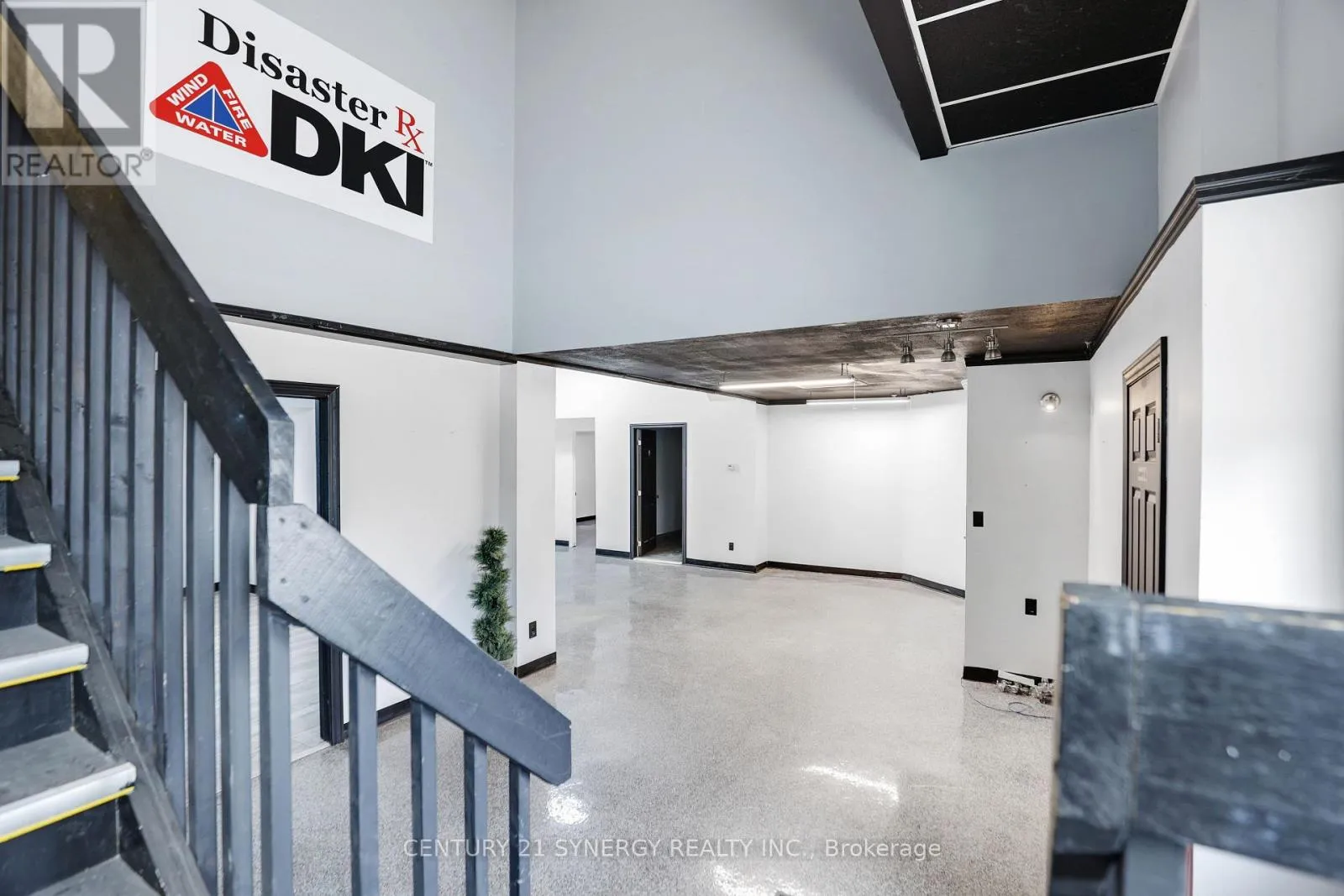 Cross Streets: Highway 15/Union and Ruthven St. ** Directions: From Carleton Place - Highway 15 towards Smiths Falls - Shortly after crossing the train tacks into Smiths Falls, on the right, just after VIA Rail station. This prime light industrial building offers approximately 3,150 square feet of versatile, vacant space that can be tailored to suit a wide variety of business needs. With its flexible layout, the property is ideal for light industrial use but can also be adapted for commercial purposes, giving you the freedom to shape the space around your unique vision. Durable epoxy floors run throughout the offices and showroom, providing both long-lasting quality and a professional, polished appearance. Three large garage doors ensure seamless ground-level access, making loading, unloading, and day-to-day operations efficient and convenient. The generous open floor plan provides ample room for equipment, inventory, or custom workspaces, while four private offices offer functional areas for administration, client meetings, or secure storage. Modern amenities include a well-appointed washroom for staff and visitors, along with a private ensuite washroom in one of the larger offices. Outside, dedicated on-site parking ensures easy accessibility for both employees and clients.Strategically located at the gateway to Smiths Falls, this property offers excellent visibility on a busy street and outstanding connectivity with quick access to Highway 15 and Highway 7. Whether you are expanding your operations, launching a new venture, or optimizing your current setup, this building delivers the flexibility, practicality, and exposure your business needs to thrive. Please note that the property taxes listed apply to the entire building and are proportionately shared among the tenants. (id:27476)