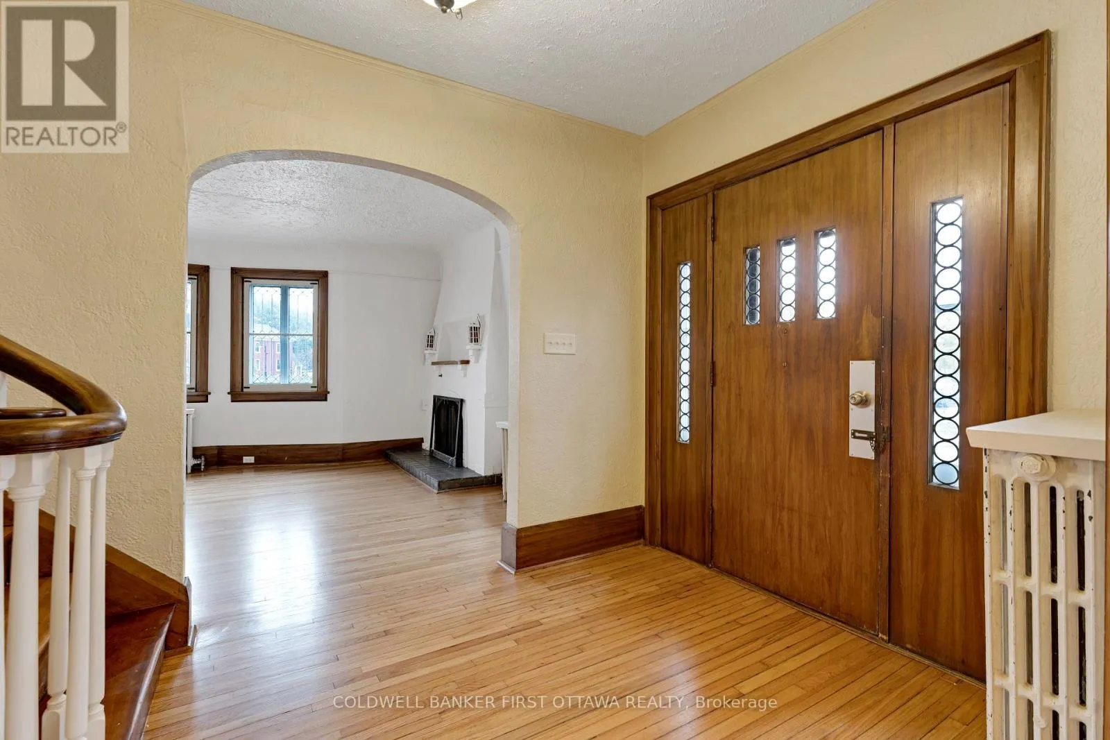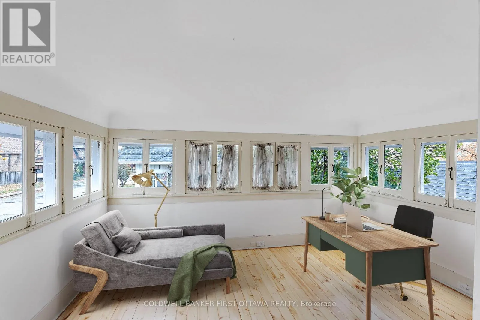 Beckwith St N & Gladstone Ave In the heart of Smiths Falls, just steps from cafés, parks, and the library across the street, this 1940 brick home blends the warmth of history with the ease of in town living. Its character is evident the moment you step inside, where rich millwork and the glow of hardwood refinished in 2025 set a welcoming tone. The living room centres on a wood fireplace waiting to be certified and brought back into daily use. The formal dining room and practical galley kitchen create a comfortable flow, with direct access to the attached garage. A three piece bath and a front office with their own exterior entrance provide a rare setup for professionals who need a private workspace. Upstairs, sunlight gathers in the second level sunroom, an inviting retreat for work, reading, or warm summer nights. The large primary bedroom offers two closets and a dressing area. Down the hall, you'll find two additional spacious bedrooms and a generous three piece bath. The unfinished basement, reached from an interior stairway or through a hatch in the garage, houses the utilities and offers ample storage. Hedges frame the home's front entrance, lending a splash of greenery to its walkable downtown setting. Steady, consistent updates have supported the home's long life. The roof was replaced around 2023, the chimney shaft and brickwork were replaced in 2022. The newer natural gas boiler provides efficient radiant heat through the existing radiator system. Inside, major repainting was completed this year along with the install of a brand new garage door. This is a home for those who value heritage are looking to make the most of this great downtown location. (id:27476)