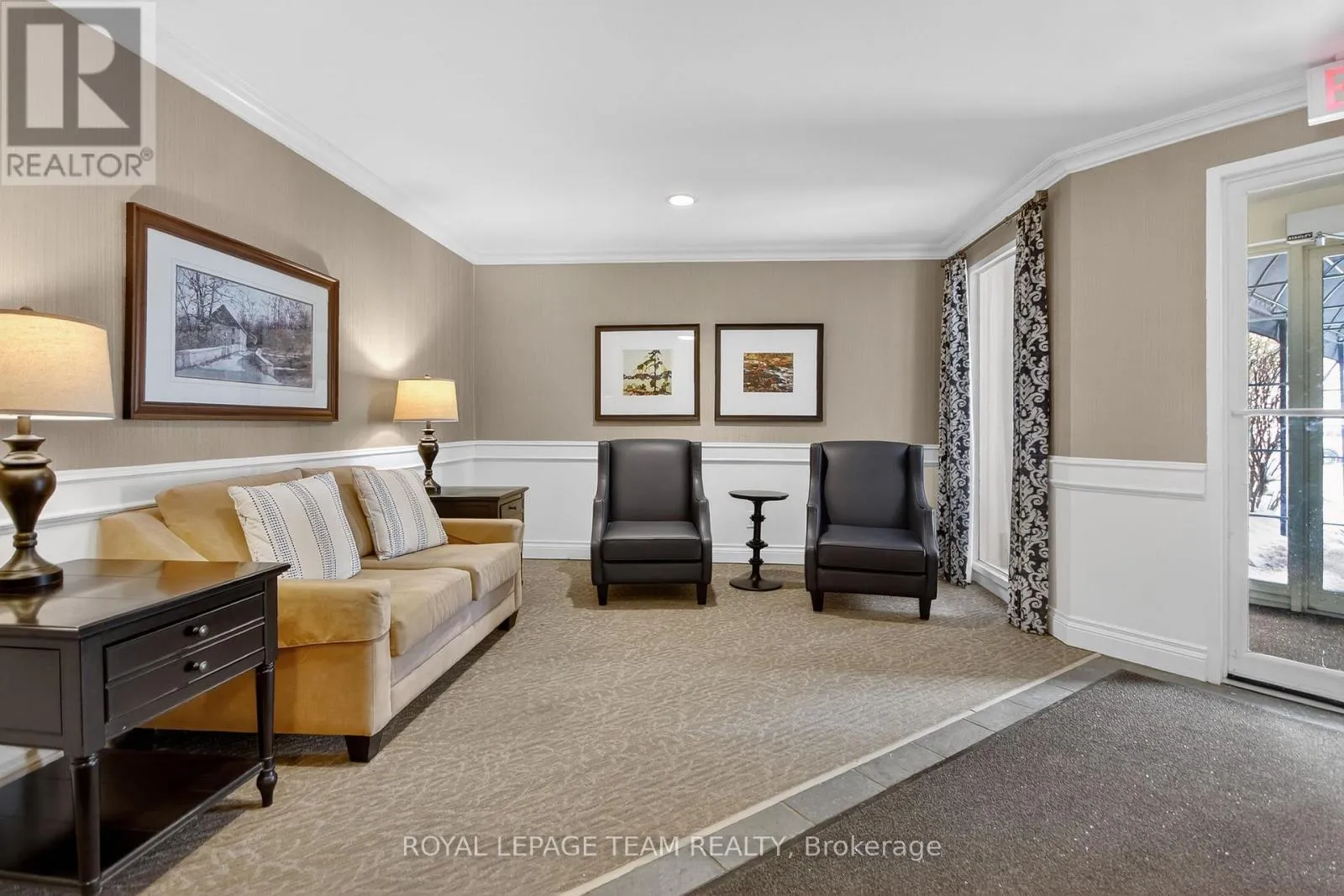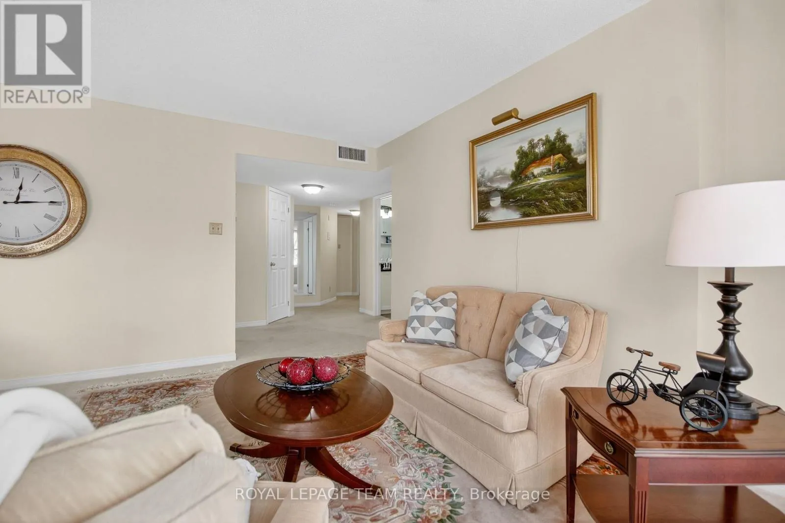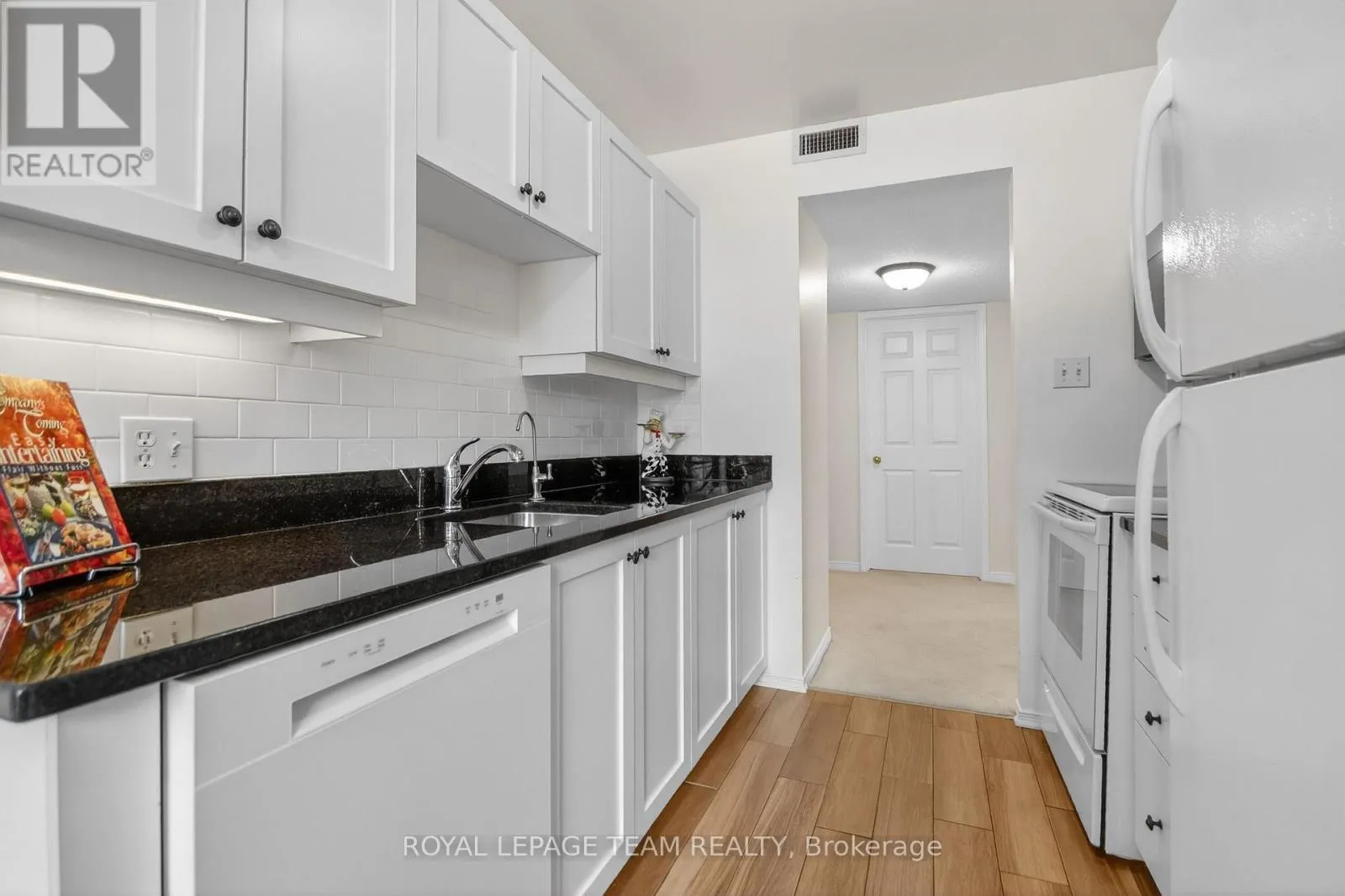 Cross Streets: Percy and Pearl. ** Directions: Brockville Street left on Van Horne follow to Percy St Right on Pearl. Spacious one level apartment featuring two bedrooms and two bathrooms, one a three pc en suite with walk in shower, the other a full 4 pc .The unit offers a large bright living room and an eat in kitchen equipped with four appliances. Patio doors off the living room provide an open airy feel and can be opened for fresh air. This private end unit benefits' from extra windows for added natural light and includes convenient en-suite laundry . Kitchen has been updated and opened to allow access to dining room. Granite counters in kitchen and two bathrooms. The second bedroom is currently set up as a den could be bedroom/Den. Laminate flooring in kitchen and two bathrooms . Carpeting threw out the rest of the home. This unit has 1005 sq feet according to the builders floor plan , The model called the Chaffey . One parking spot included with unit . There is a meeting room and small library on main level and gathering area . If you want a bit of exercise there is a room with two pieces of equipment . This unit has its own laundry as well as laundry facility on each floor. Garbage shoot on each floor . You will see the building shows pride of ownership. This is an adult building must be minimum 30 years old to live in the building if you have children they must be 16 and above. One pet per unit max 20lbs . Home being sold in as in condition no warranties . Estate condition Prevail. (id:27476)