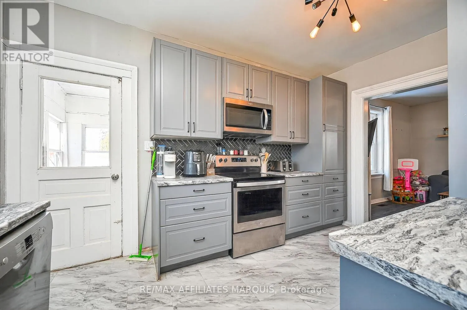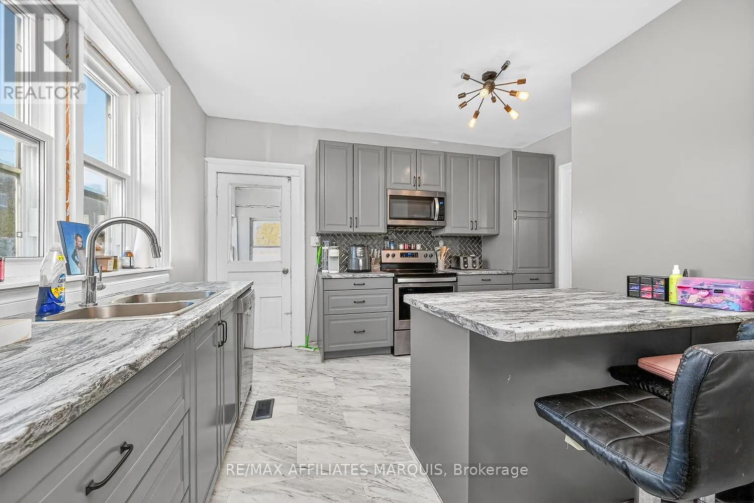 Cross Streets: william st e. ** Directions: check url. 1.5 storey home on corner lot with detached garage, this property is very much worth a look with so much to offer and great possibility for multi-generational and or /shared living. Large main floor bedroom and oversized walk-in closet features a separate entrance and front porch space which could be creatively used as a granny flat or shared living space (currently used as such) or will make a wonderful main floor family room, this space also offering close access to 3 pc bath with stand up shower and laundry which is easily accessed by both this bedroom and flows well into the main part of the house - main floor offers an ample foyer entrance, large upgraded kitchen with lots of cabinetry and access to front porch/storage and separate dining and living rooms. Make your way upstairs to find 3 good sized bdrms, the master being a bit oversized, and a nicely appointed 4 pc bath. Many improvements and upgrades since purchase in 2020 including kitchen, appliances, flooring, windows, upper and lower bathrooms, main floor bedroom walk-in closet and much more. Rear yard is fenced and this property offers 2 driveway spaces one off McGIll and one off William. 24 hours irrevocable on all offers and 24 hours notice for showings as the home is tenanted - tenant has provided notice to landlord and is moving out end of March. (id:27476)