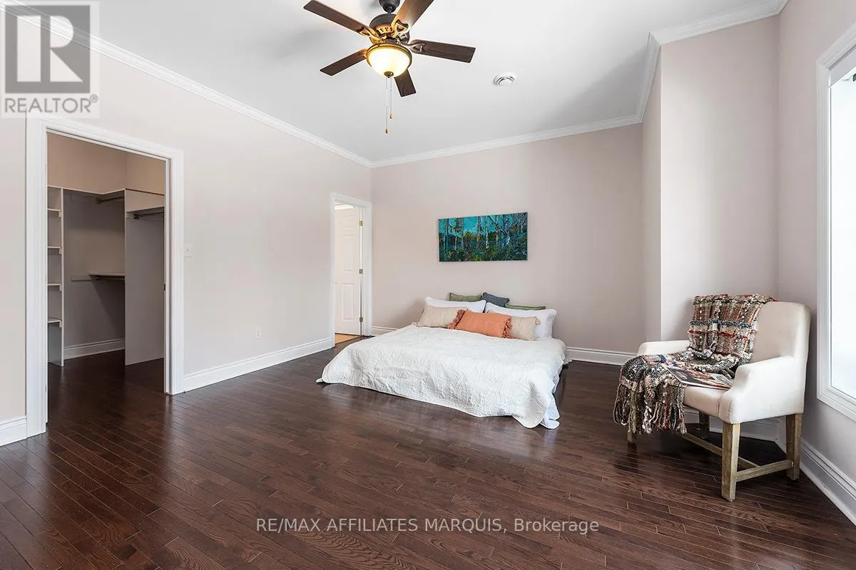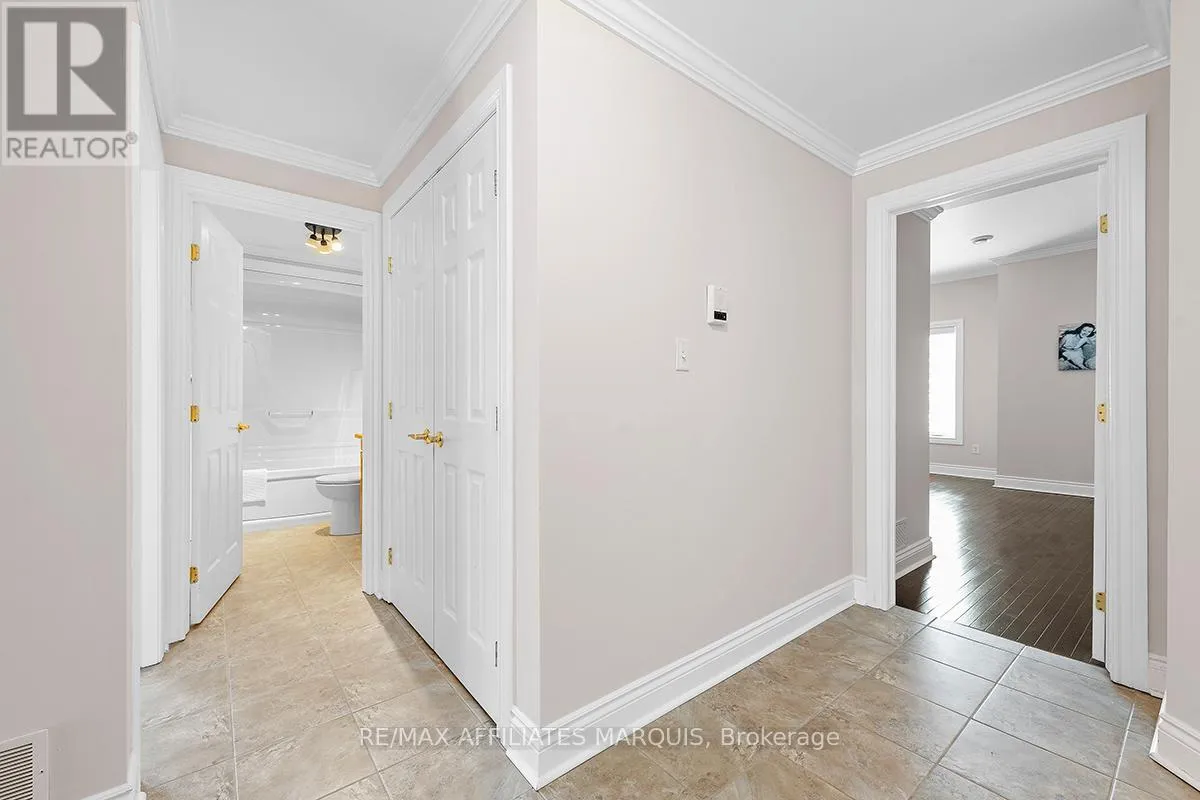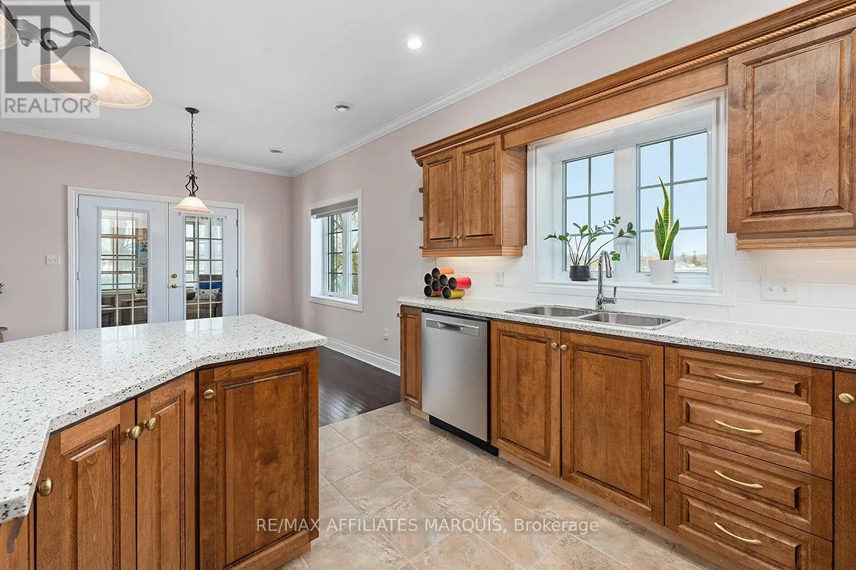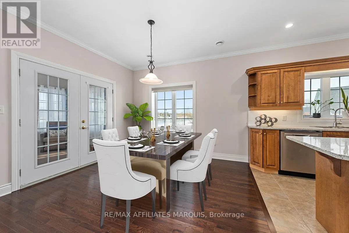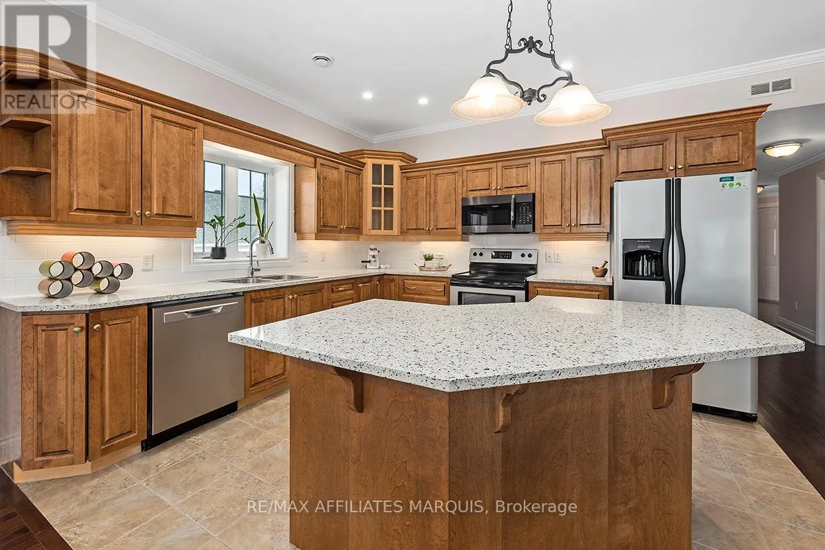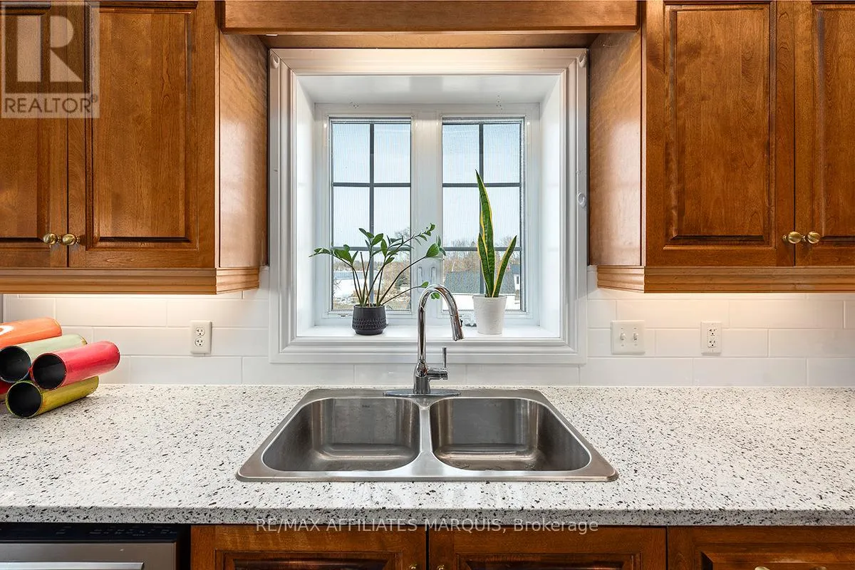 Cross Streets: Albert and Old Slys. ** Directions: From Merrickville take Hwy 43 into Smiths Falls which turns into Queen street. Enjoy refined riverside living overlooking the beautiful Rideau River in the exclusive "Between the Locks" community. Set along the historic Rideau Canal (a UNESCO World Heritage waterway), this oversized executive apartment offers a rare combination of space, quality construction, and direct waterfront lifestyle. The bright, open-concept layout features high ceilings and large windows oriented toward stunning river views. A custom solid wood kitchen with generous cabinetry, pantry cupboard, quartz countertops, and a large island connects seamlessly to the living and dining areas. The living room includes a gas fireplace, while the impressive primary suite offers a walk-in closet and private ensuite. Carpet-free finishes include engineered hardwood and ceramic flooring, with in-floor heating in tiled areas. Additional features include ensuite laundry, on-demand hot water, appliances included, and a spacious 147 sq ft three-season room overlooking the river, perfect for morning coffee or evening sunsets. Built with Nudura insulated concrete form construction, the building provides excellent soundproofing, durability, and economical heating. Residents enjoy landscaped waterfront grounds with outdoor lifestyle amenities including picnic area, kayaks, garden space, and a new dock arriving Summer 2026. Directly across the river is Lower Reach Park, offering tennis courts, walking paths, and one of the best spots in town for fireworks. Parking for one vehicle included. Professional property management, foyer security lighting, and snow removal provided. Steps to parks, shops, restaurants, and the walkable downtown of Smiths Falls, with convenient access to Ottawa. Waterfront living without the high-rise apartment feel. Water included, heat and hydro are the in addition to. (id:27476)
