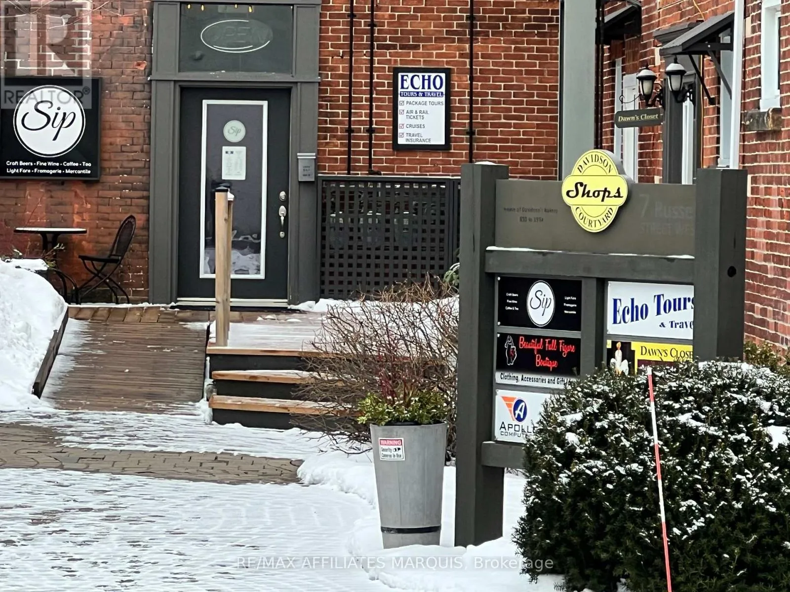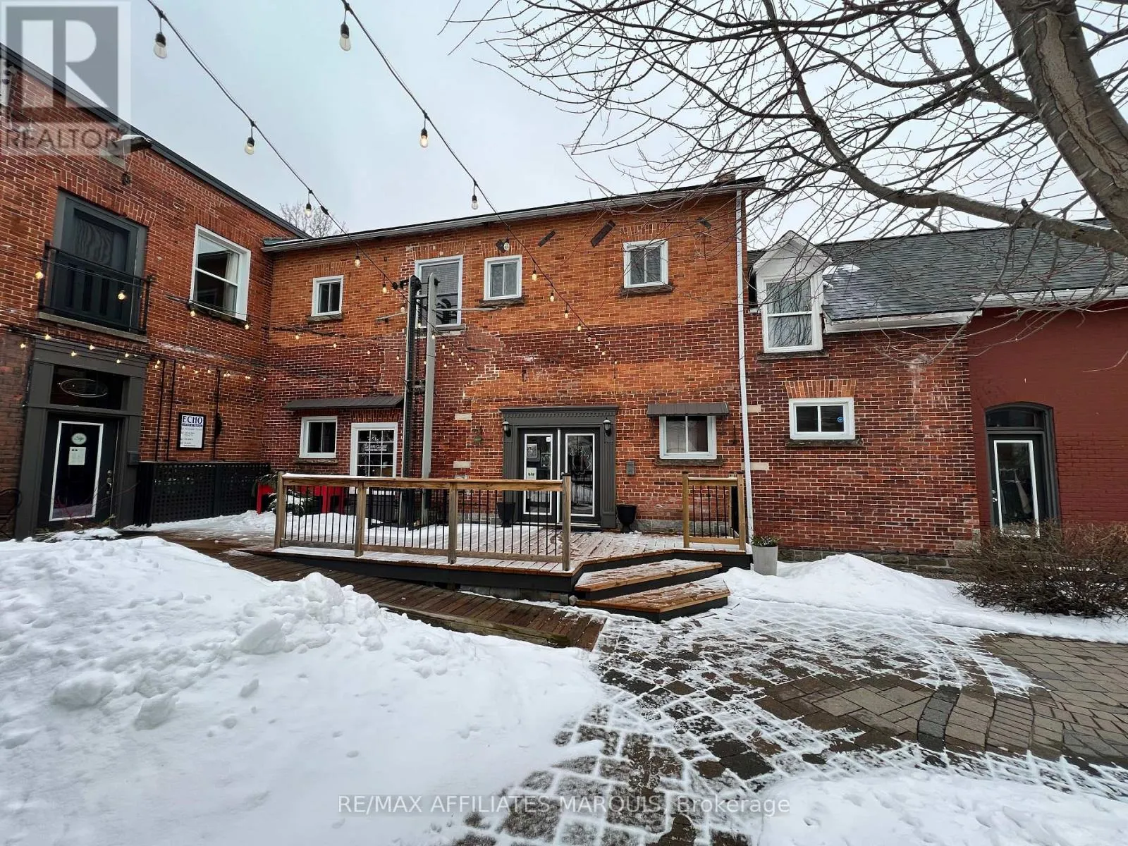 Cross Streets: Russell & Beckwith. ** Directions: From downtown Smiths Falls turn west onto Russell St and you have reached your destination on the left. Well maintained mixed Commercial/Retail and Residential opportunity in the heart of Smiths Falls core. This courtyard environment offers a unique access to 5 retail units, 1 upper residential apartment plus a large vacant upper unit that could be used as residential with some work or as is as a large office and board room. Well established tenants with complimenting businesses. Tenants paying own utilities. Good annual return and solid investment here. Seller wishes to be respectful to the good tenants. Showings preferred after 5:00 weekdays or Sundays (as most are closed then). TPO roofing replaced in (2017), Shingles (2021), Electrical service updated to 400 amp (2021), new water and sewer line to building 2017, café refurbished (2016), Upper apartment renovated (2024) plus many small items addressed. Seller's have been very attentive and appreciated by tenants. Low turnover as results. Unit A 800 sqft retail, Unit B 530 sq ft upper apartment, Unit C 250 sqft retail. Unit D 700 sqft retail, Unit E 1000 sqft café, Unit F 1000 sqft retail, Unit G 1600 sqft upper vacant unit. (offers additional space to rent out or possibly an owner-occupied residence). All measurements approx. to be confirmed by the Buyer. There are 3 off-street parking stalls plus on-street parking. A solid investment opportunity. (id:27476)