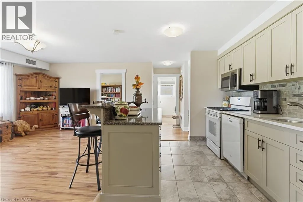 St. Catharines Street to Griffin Street to Smits Cove Presenting a spacious 2 bedroom apartment in the heart of downtown Smithville, ideal for first-time buyers, investors, and downsizers alike! This condo offers an open concept layout with loads of natural light in every room. Updated kitchen, island and countertops with plenty of counter space and appliances included with purchase. Each bedroom boasts ample closet space, including a large walk-in closet in the primary bedroom. Enjoy the added convenience of in-unit laundry, parking forvehicle, and plenty of additional visitor/street parking nearby. Included in the monthly condo fee is building insurance, common elements, exterior maintenance, parking, snow removal, lawn maintenance, and water. Nothing else to do but move in and enjoy! (id:27476)