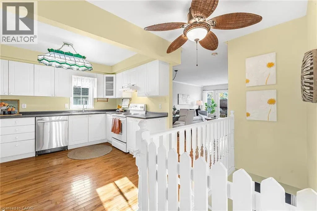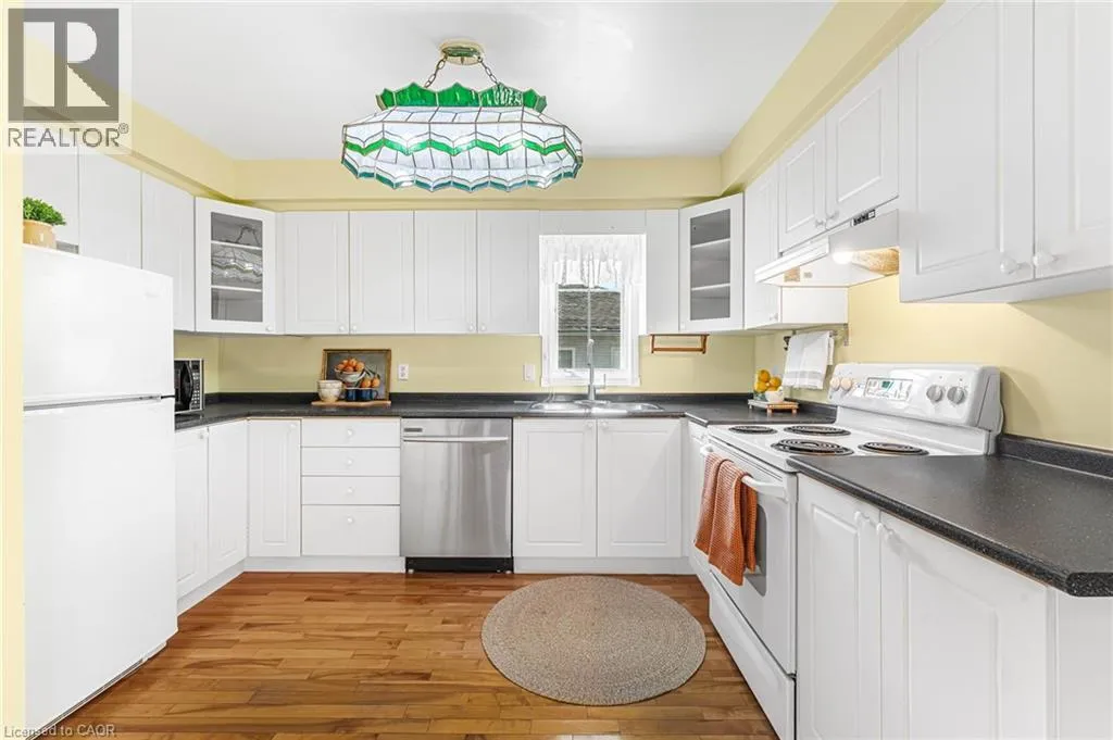 Hwy 20 to Wade Road to Margaret Street to Garden Drive to Village Drive Welcome to 1 Village Drive here in Wes- Li Gardens - known for its peaceful setting and friendly atmosphere here in the heart of Smithville. This beautifully maintained one-floor home features maple flooring throughout, a bright eat-in kitchen and included appliances, and a spacious living/dining area with crown moulding. Modern French doors with full glass panels open to a private deck overlooking peaceful greenspace. The primary bedroom offers double closets, while the front room makes an ideal den, craft room or guest bedroom. Enjoy a 4-piece main bath, main-floor laundry which includes washer, dryer, a bonus chest freezer, and inside entry to the single garage with automatic door opener. The full unfinished basement provides ample storage or perhaps a future recreation room, an extra bedroom, maybe even an office. Walking distance to downtown shops and amenities and move-in ready. Experience easy, relaxed living at 1 Village Drive - your next chapter starts here. (id:27476)
