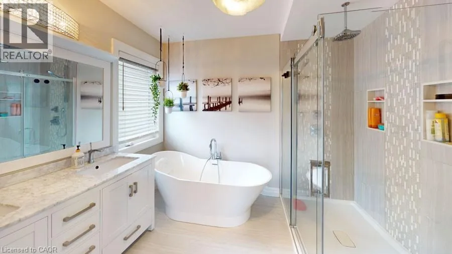 St. Catharine St., Right onto Townline Rd., Left to Alma Dr., Right onto Maple Ave., Left onto Jane St. Gorgeous inside and out! Enjoy this fully finished multi-generational home with in-law suite. So many details. Extensive landscaping and upgraded features throughout. Interlock walkway and private sitting area at front where you can relax & enjoy. Stunning back yard retreat designed for relaxing and entertaining. Enjoy Interlock/concrete detailing, heated pool with waterfall feature. Hot tub. Large, 2 tiered composite deck and the list goes on. Main floor bedrooms. 3 full bathrooms. Enter into the spacious foyer. Attractive iron spindles. Open concept main floor with soaring vaulted ceiling. Stunning large customized eat-in kitchen with an abundance of cabinets. 2 pantries, huge 8' x 4' island (including breakfast counter) with upgraded quartz countertop. Recycle bin. Herringbone design backsplash. Pot filler over the gas stove. B/I microwave in island. Pots & pans drawers. Frosted glass cabinet doors. New fridge 2024. Double depth cabinet over fridge. Bar sink & counter. Walk-out to large composite deck. Living room with vaulted ceiling and gas fireplace. Large dining area. Main floor laundry room with large closet, upgraded sink and cabinets. 5 piece main bath with large vanity, upgraded countertop and 2 sinks. Private principle bedroom retreat on the 2nd floor offering a bright elegant 5 piece ensuite with large shower, stand alone soaker tub and 2 sinks. Spacious In-Law bathroom with large shower, spacious family room with room for a piano, open to the bright eat-in kitchen. Gas stove top. High end microwave/oven. Fridge new 2024. Spacious and bright. Separate entrance from lower level to the back yard. Central vac. Enjoy. Just move in. Pool Built-in 2017 per Property line. Room sizes approx./irregular. (id:27476)