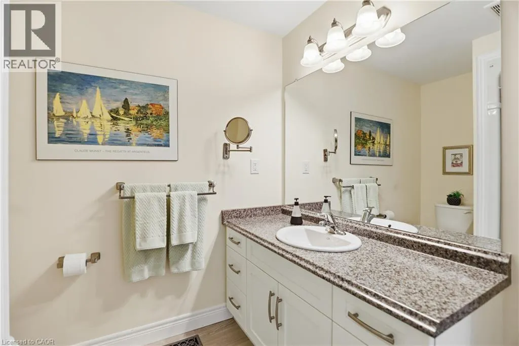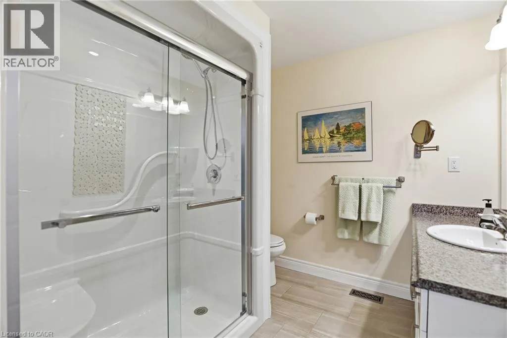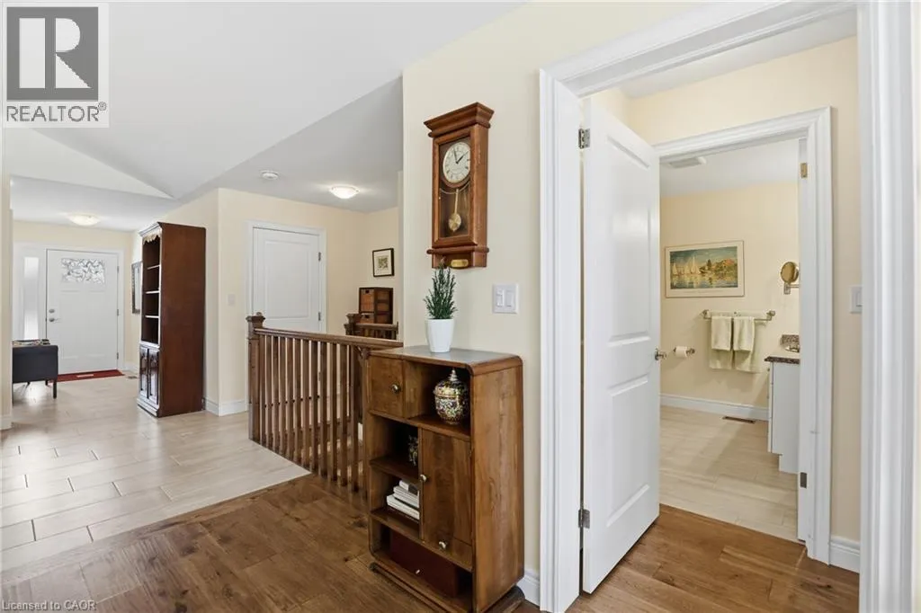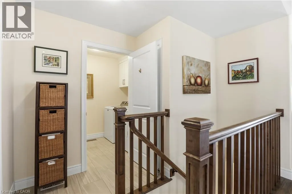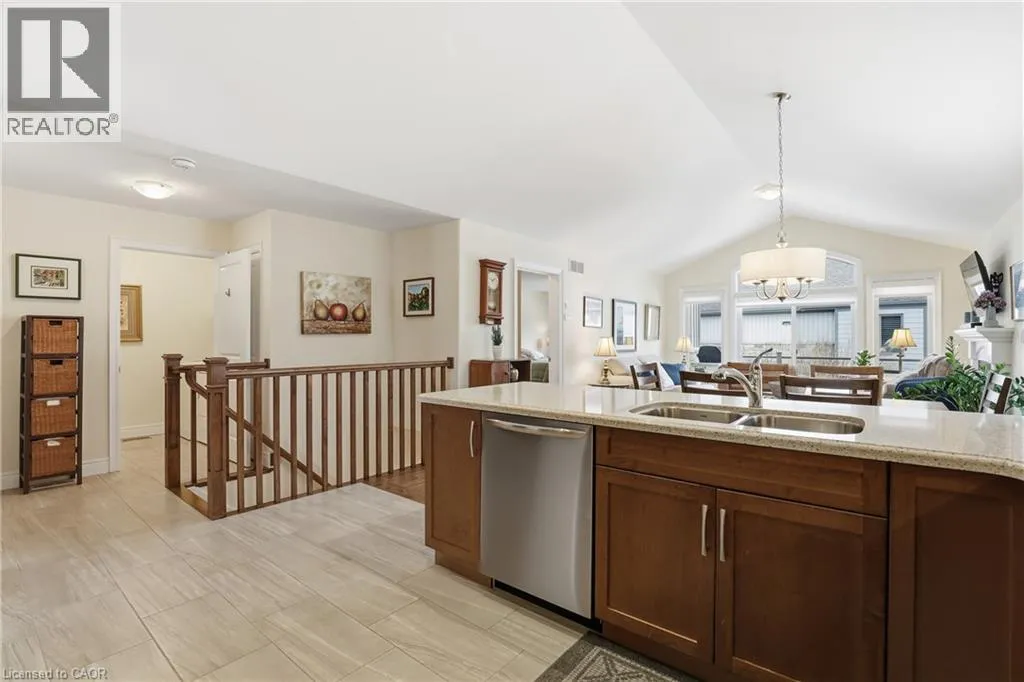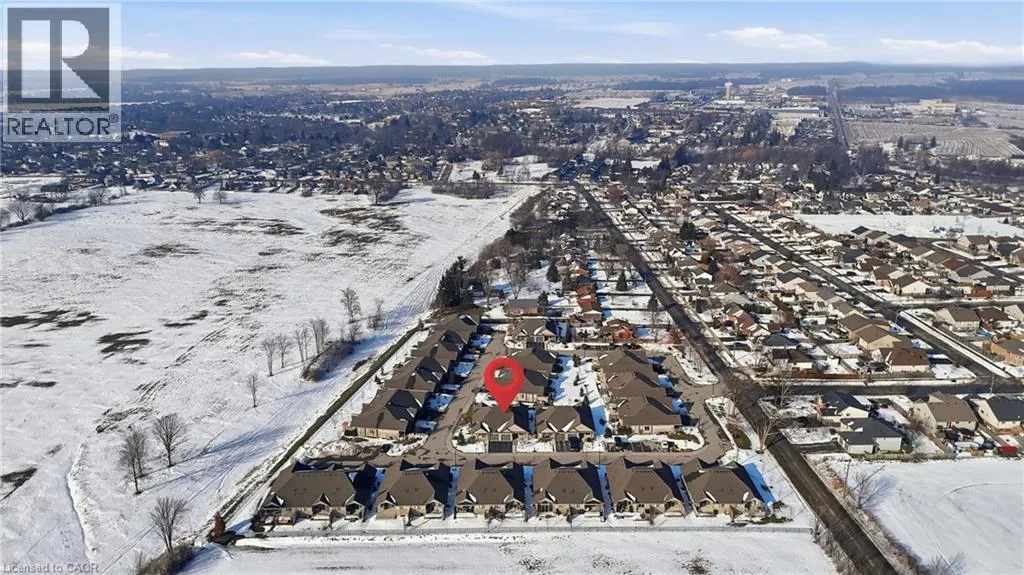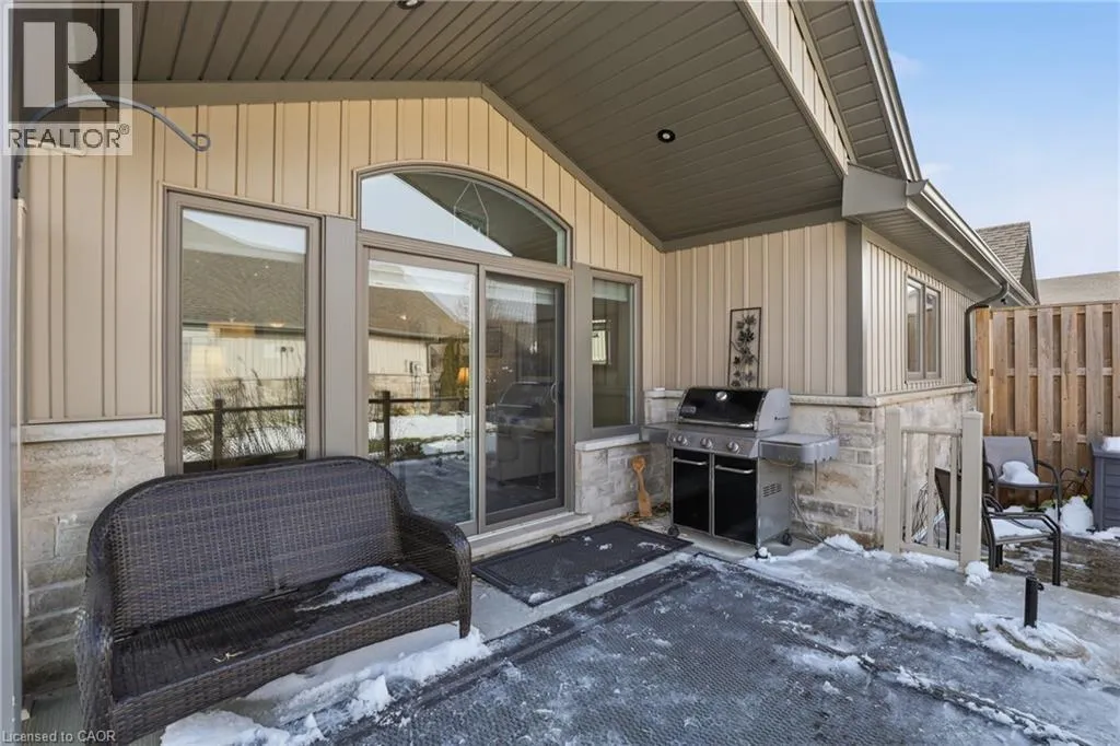 Beautifully maintained 2 bedroom, 1.5 bathroom semi-detached home located in a quiet enclave of Smithville. Built in 2018, this modern home offers 1,093 sq ft of thoughtfully designed living space, perfect for anyone seeking low-maintenance living in a growing community. Open concept main floor boasts a spacious living and dining area highlighted by a cozy gas fireplace. The kitchen flows seamlessly into the main living space, making entertaining effortless. A convenient powder room completes the main level. The generous primary bedroom includes a full 3 pc bathroom, offering comfortable and practical living space. Step outside to enjoy the private backyard featuring a walk-out to a 2 tiered patio with modern glass railings. Ideal space for summer barbecues or morning coffee. The unfinished basement provides excellent potential for future expansion, whether you envision a rec room, home office, or additional bedroom space. Low monthly fees that cover lawn maintenance, snow removal and Lawn sprinkler. This is one to see! (id:27476)