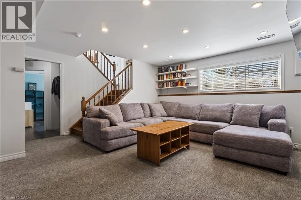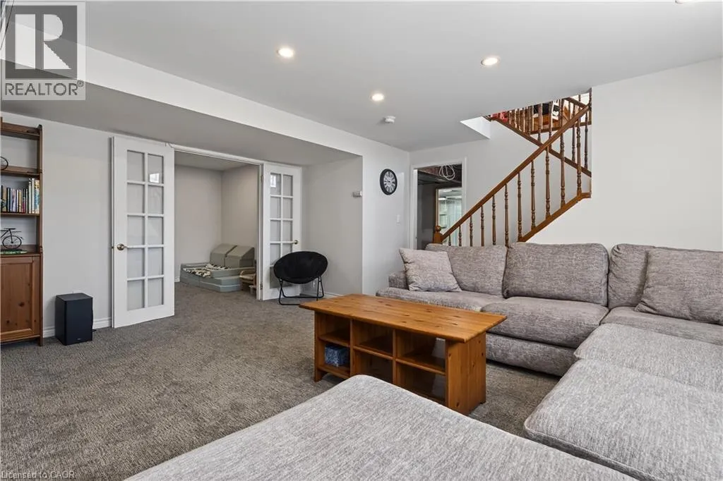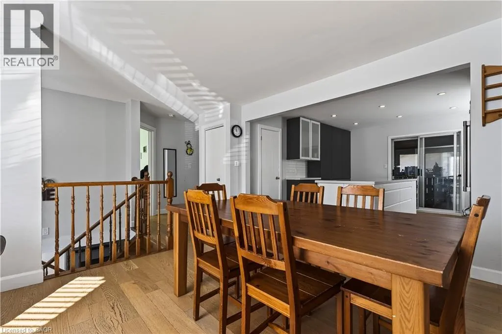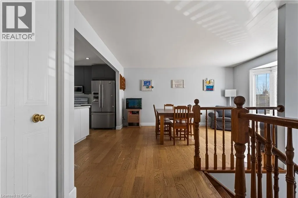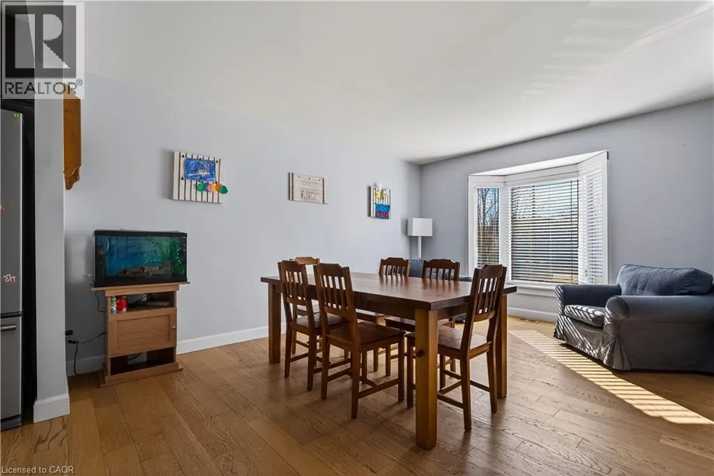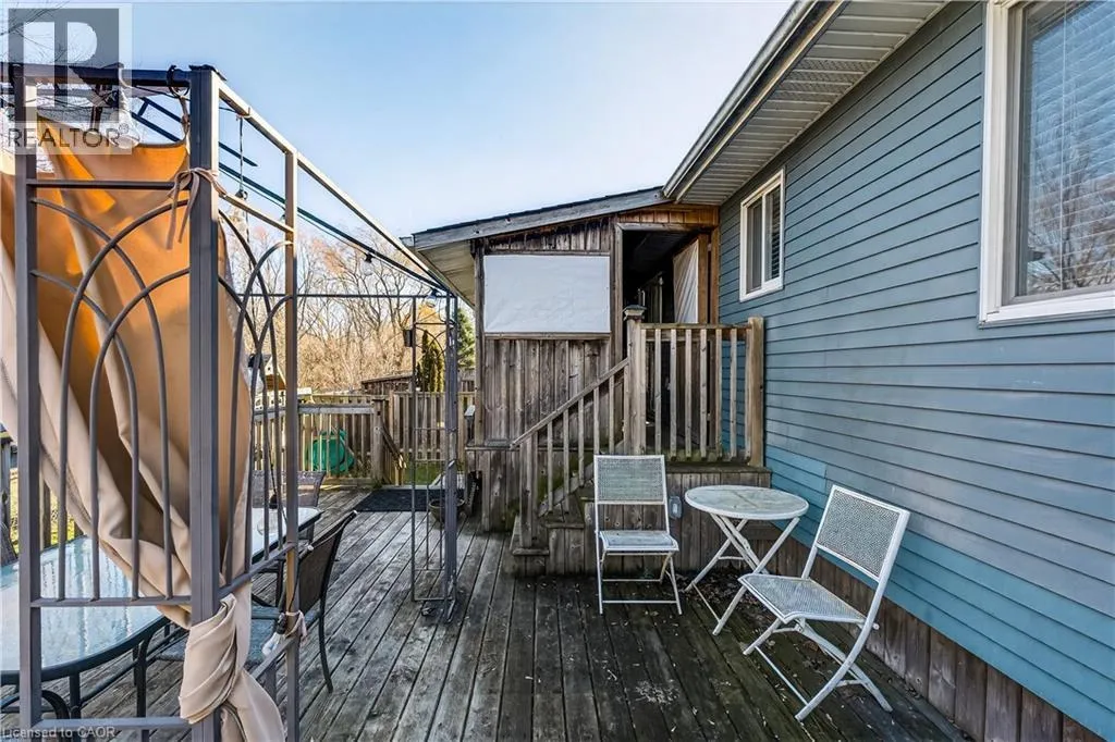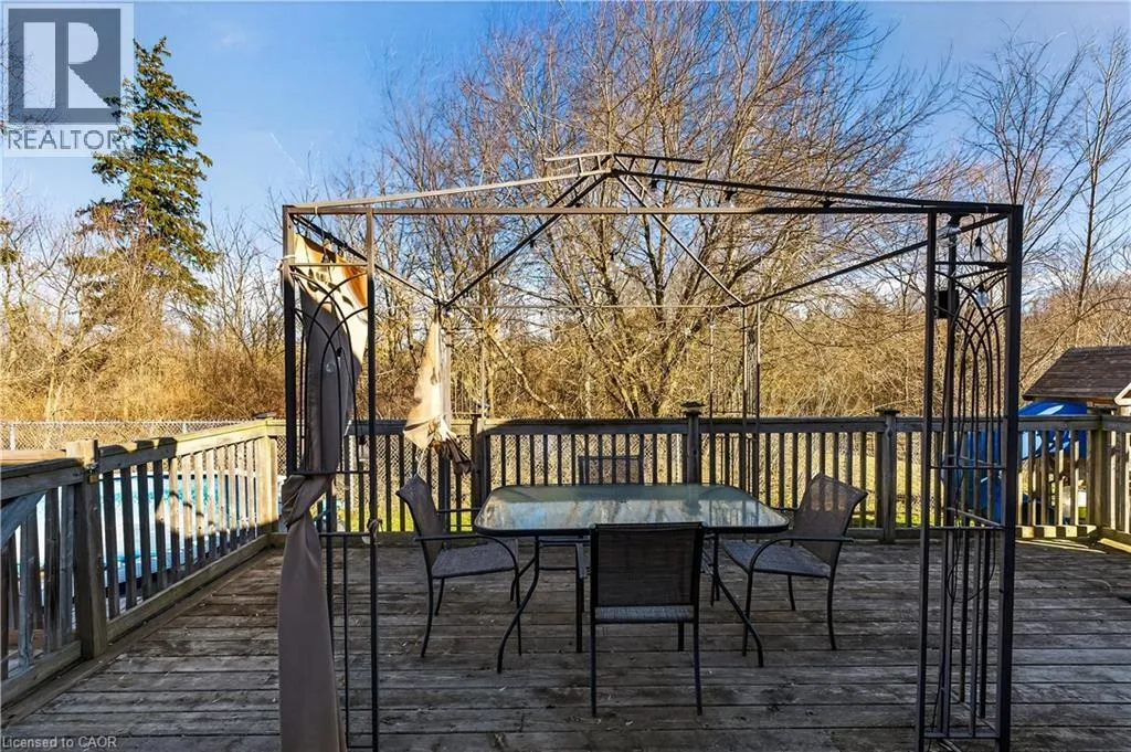 Spacious bi-level bungalow on a quiet crescent in a family-friendly Smithville neighbourhood, backing onto protected conservation/greenbelt land with 20 Mile Creek beyond. This beautiful setting offers privacy, peaceful views, and a natural backdrop that makes this property stand out. The main level features hardwood flooring, pot lights, and an open-concept living/dining/kitchen area. The kitchen was updated in 2020 with IKEA cabinetry and an undermount sink. Two bedrooms and an updated full bathroom complete the main floor. The finished lower level adds a third bedroom, second full bathroom, cozy family room with gas fireplace, pot lights, and new carpet (2024), plus a separate bonus room ideal for a playroom, home office, or guest space. Roof and two front bay windows were updated in 2023, and the washer and dryer are brand new. Enjoy the fully fenced backyard, elevated deck, and above-ground pool (sold as is), all in a great location close to schools, amenities, and major routes. (id:27476)