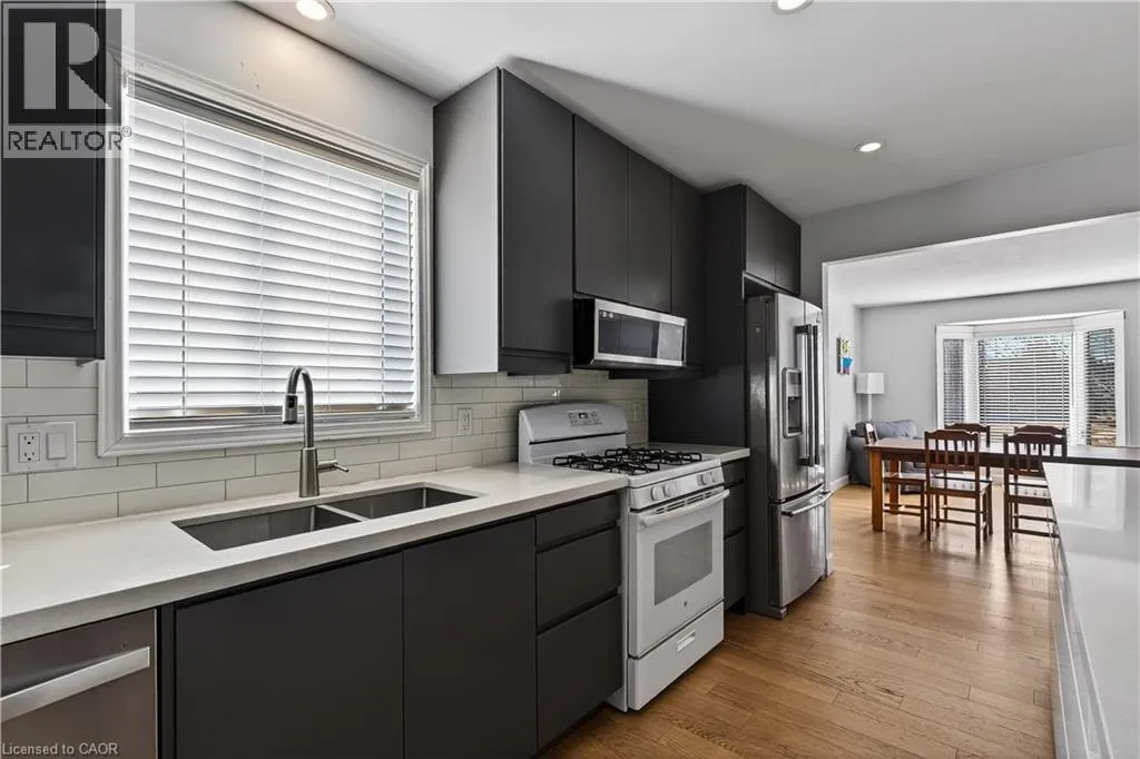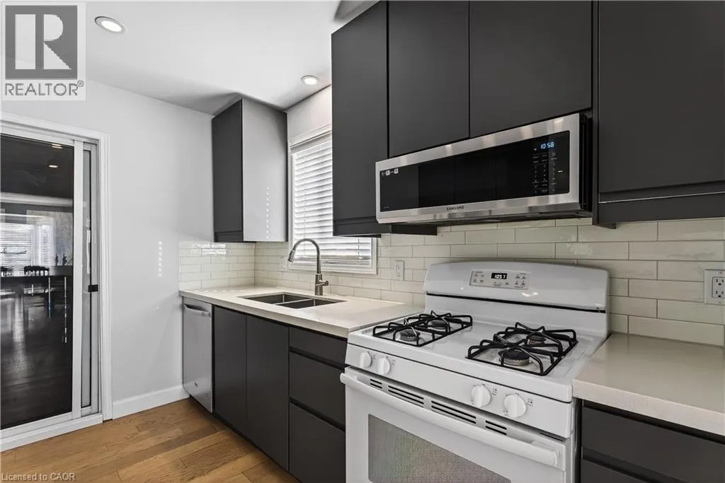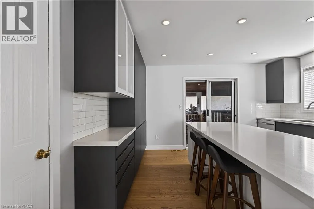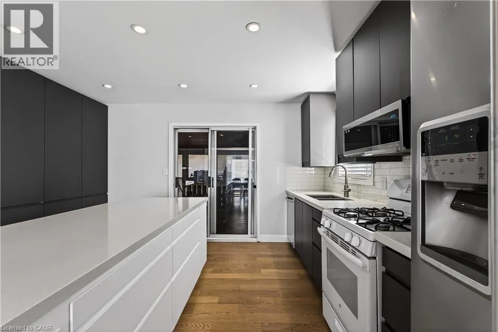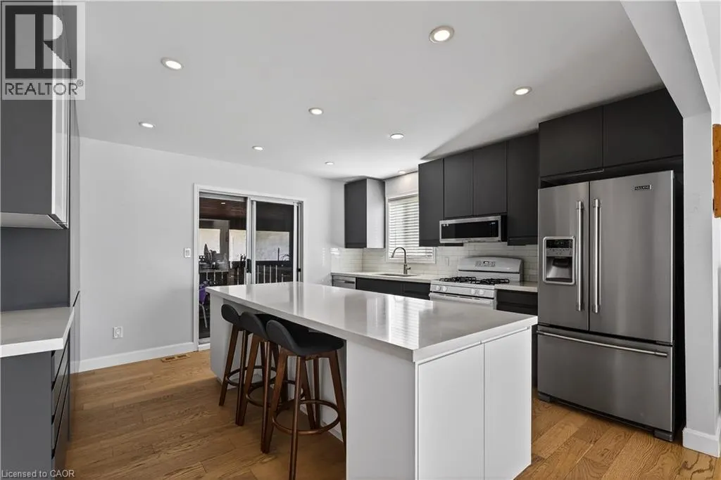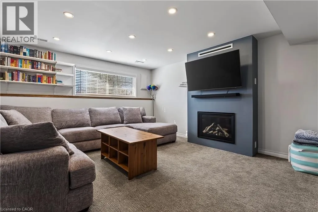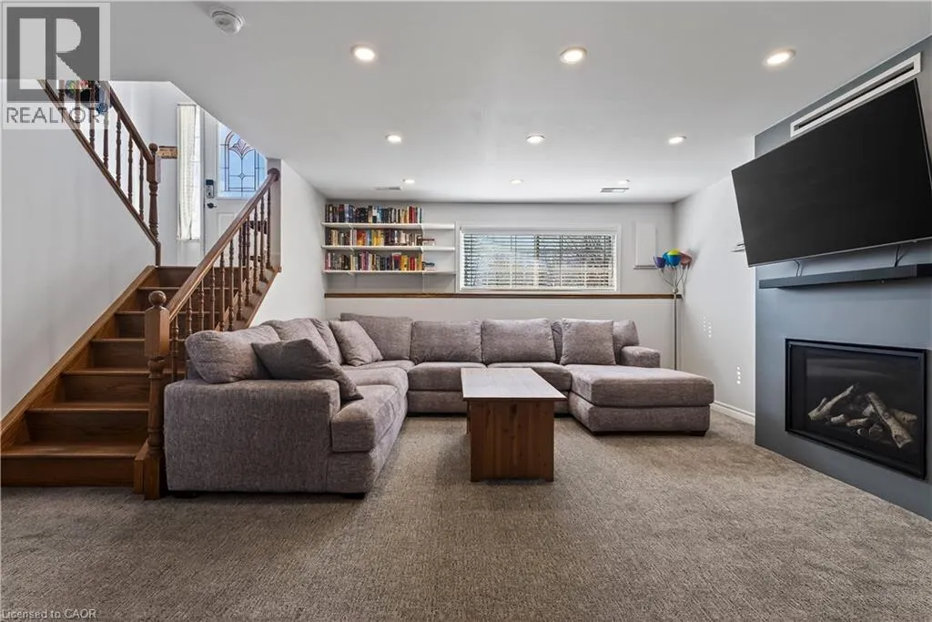 Spacious bi-level bungalow on a quiet crescent in a family-friendly Smithville neighbourhood, backing onto protected conservation/greenbelt land with 20 Mile Creek beyond. This beautiful setting offers privacy, peaceful views, and a natural backdrop that makes this property stand out. The main level features hardwood flooring, pot lights, and an open-concept living/dining/kitchen area. The kitchen was updated in 2020 with IKEA cabinetry and an undermount sink. Two bedrooms and an updated full bathroom complete the main floor. The finished lower level adds a third bedroom, second full bathroom, cozy family room with gas fireplace, pot lights, and new carpet (2024), plus a separate bonus room ideal for a playroom, home office, or guest space. Roof and two front bay windows were updated in 2023, and the washer and dryer are brand new. Enjoy the fully fenced backyard, elevated deck, and above-ground pool (sold as is), all in a great location close to schools, amenities, and major routes. (id:27476)