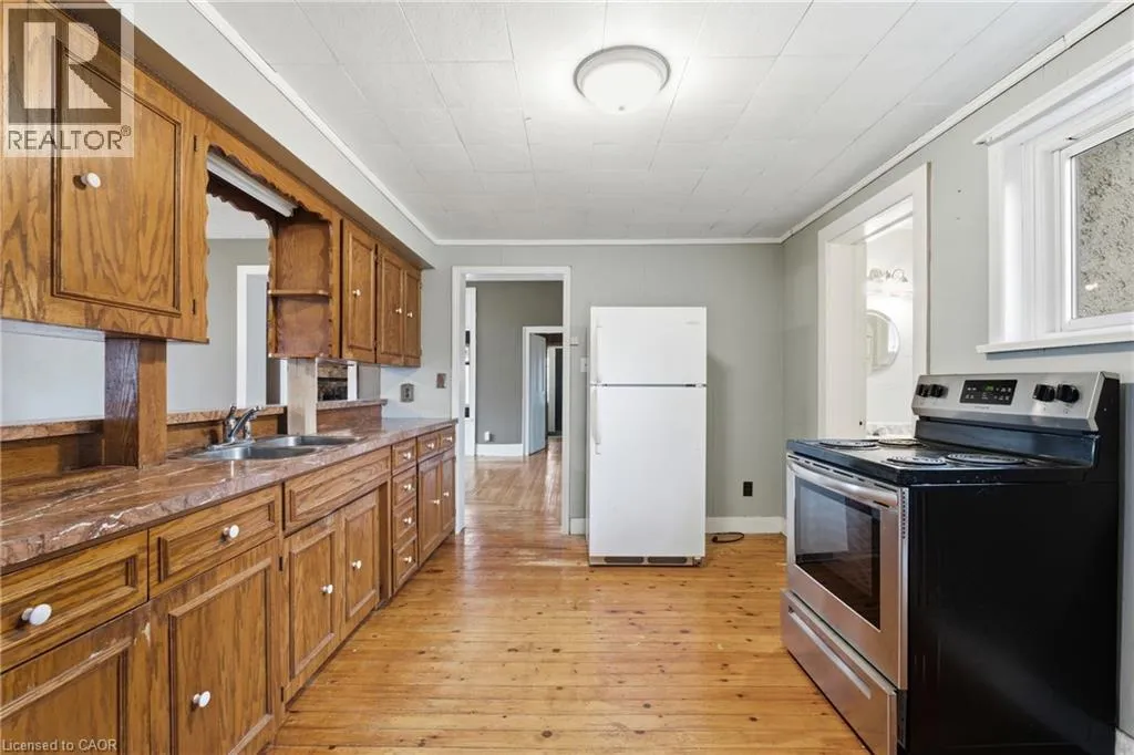 Highway 20 to Griffin St turns into Canborough St. An absolute must see!! You will fall in love with this home as soon as you walk through the doors! If there was one word to describe this home, it would be opportunity. 211 Canborough Street is already set up as a legal duplex, offering a great opportunity for rental income or comfortable multigenerational living. For buyers ready to move up from a smaller space, this home provides the room a growing family needs along with the beautiful character found in older homes. Move in today and gradually bring each room back to life, this home is truly a decoratorâs dream. With nearly 3,000 square feet of usable living space, there is no shortage of room here. The home features five bedrooms, a massive kitchen and dining area, plus a second kitchen upstairs, three living/family rooms, a bonus sunroom, and laundry on both levels offering flexibility for a growing family or a multigenerational setup. And if all that indoor living wasnât enough, the backyard offers even more to enjoy. Set on just under half an acre, a rare oversized lot in Smithville, this property features plenty of privacy in a beautiful green space along with a shed and workshop, and a fenced yard perfect for relaxing, gardening, or family time. All of this while being located just minutes from the downtown core in the welcoming community of Smithville. Whether you are looking for a five bedroom home with room to grow, a multigenerational living opportunity, or a legal duplex with income potential, this property offers flexibility that is hard to find. (id:27476)