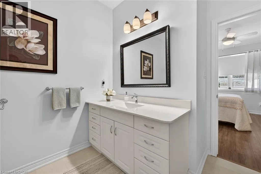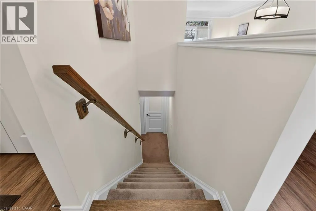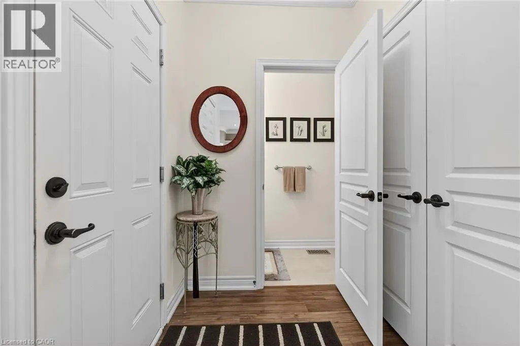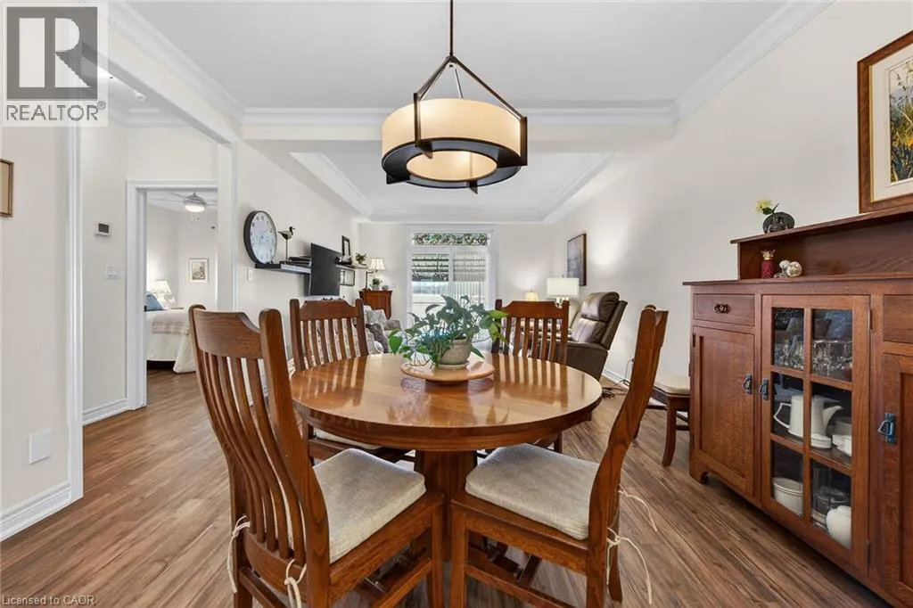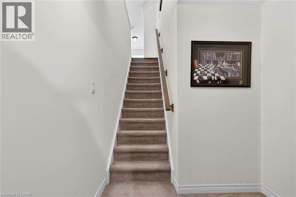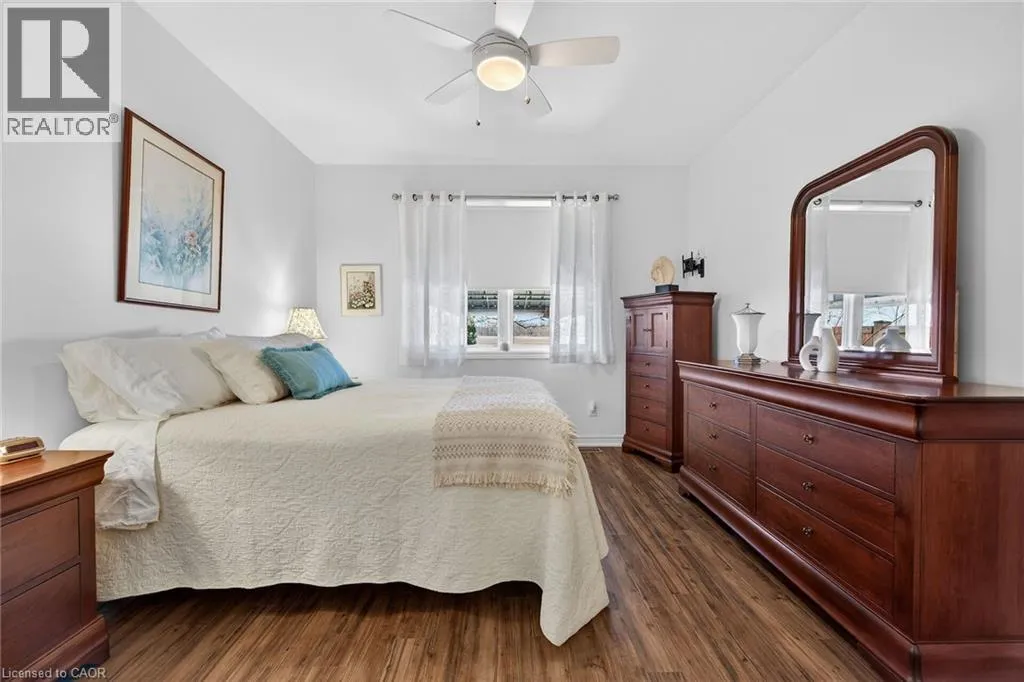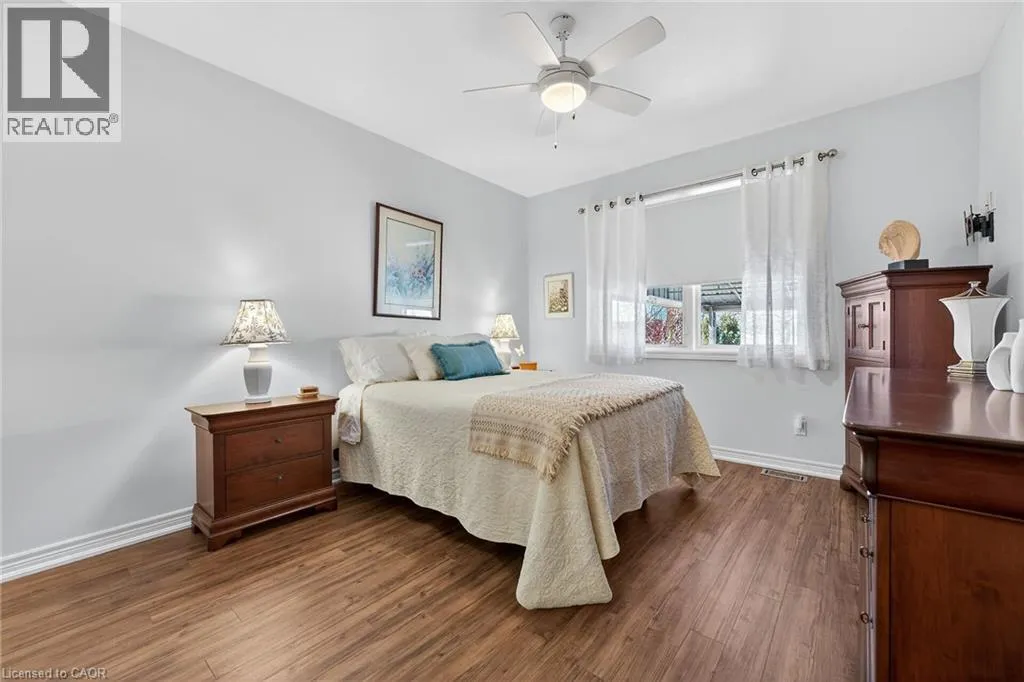 From HWY 20, south on Wade Road to Golden Acres Drive. West on Golden Acres to Oakdale Blvd. Follow Oakdale (turns into Manorwood). Right onto Forestview Court. Tucked away in a private cul-de-sac enclave in Smithville, this stunning freehold bungalow townhome features peaceful living with breathtaking panoramic sunset views year-round over open farm fields. Enjoy your own quiet outdoor retreat on the private rear patio, complete with a hard-covered gazebo, perfect for relaxing or entertaining. Inside, the home features 9-foot ceilings, and a bright, open-concept layout, enhanced by beautiful, upgraded lighting throughout. The gorgeous kitchen is a true focal point, showcasing a large island, coffee station, walk-in pantry, soft-close cabinetry, and under-cabinet lighting, ideal for both everyday living and hosting. Premium Torlys laminate flooring flows seamlessly throughout the main living areas. The living room features a coffered ceiling with patio doors to the private rear patio. With 2 bedrooms and 1.5 bathrooms, this home is thoughtfully designed for comfort and functionality. The primary suite is a true retreat, featuring a stylish 3-piece ensuite with a glass shower along with soundproof insulation between the primary bedroom and living area for added privacy. Additional highlights include main floor laundry and convenient inside entry from the single-car garage. A perfect blend of low-maintenance living, modern upgrades, and serene surroundings. This is a rare opportunity in a sought-after community. Minutes to local amenities, schools and park. Small road fee includes landscaping/maintenance/snow removal of common area as well as irrigation system and visitor parking. (id:27476)
