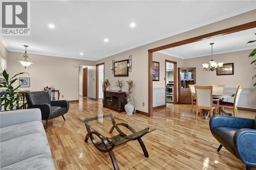 Wade Road to Killins Road. Welcome to this meticulously maintained 3+1 bedroom, 2 full bathroom raised bungalow on a quiet, family-friendly street in Smithville. Arriving at the property, youâll notice the excellent curb appeal with well manicured gardens, an all-brick front, and driveway parking for four vehicles plus an additional parking spot in the attached garage. The fully fenced backyard with fantastic privacy is a great spot to host family and friends - featuring a professionally landscaped patio, two gazebo structures, a soothing water feature, a shed with hydro, and vibrant gardens. Inside, a bright and spacious foyer with a double closet and loads of natural light welcomes you. The main floor showcases hardwood flooring and a professionally renovated kitchen (2021) with granite countertops, stainless steel appliances, soft-close cabinetry, and under-cabinet lighting. Updated vinyl thermal windows throughout enhance comfort and efficiency. Down the hall youâll find three main floor bedrooms and a spacious 4-piece bathroom with a shower/tub combination. The fully finished basement features large above-grade windows for loads of natural light. The basement includes a spacious rec room with a natural gas fireplace, a fourth bedroom, an additional full bathroom, and a laundry area. This immaculate home is ideally located within walking distance to schools and parks, minutes to downtown Smithville, and a 10 minute commute to the QEW! (id:27476)