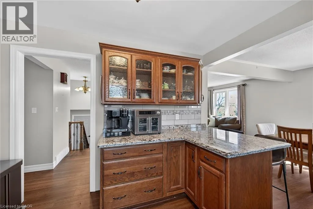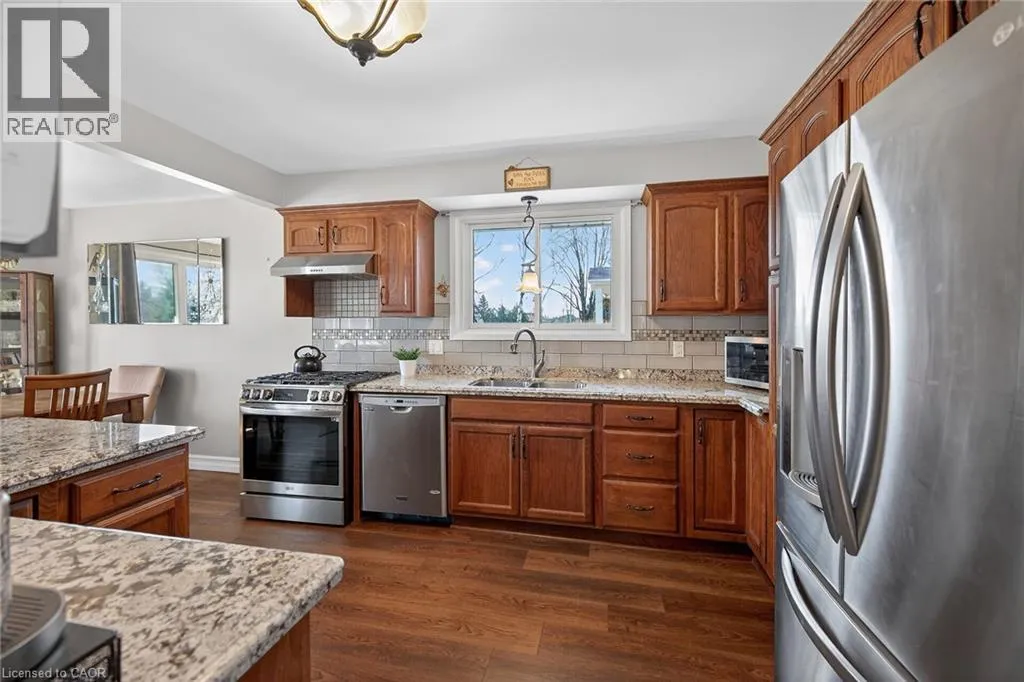 Regional Rd 20 (HWY 20) into Smithville; turn R on Griffin; turn onto Clover and then onto Barbara St OR Smithville Rd to Wade Rd to Killin St to Barbara St 6 Barbara St., is âLocated in the Heart of Smithville. This home features immediate access to parks, trails, schools, and Niagaraâs conservation lands â delivering a lifestyle that blends small-town charm with outdoor living, all within a short drive from Hamilton; Grimsby; St Catharineâs; QEW and major routes.â Boasting an attached garage PLUS an additional bonus 15.8'x 23.4âworkshop (attached to the garage) on a 65 x 126â irreg lot. This raised ranch features 3+1 bedrooms, 2 renovated bathrooms, and renovated kitchen (2014). When you enter the main foyer, note the size, the height and the feel of the inside entry, including the entry to the attached Garage. Follow the wood staircase to the open L-shaped living room/dining room that opens to the Kitchen; featuring breakfast bar; oak cabinets, sleek countertops; and the floor to ceiling pantry with pullouts. The main level boasts wood flooring; pot lights; 5 PC Bath 2022 and 3 Bedrooms with ample closet space. The 3rd bedroom is presently being used as an office (for those who work from home). The Lower level features a renovated family room 2017 with oversized windows, gas fireplace with mantle and built-inâsâ re: butler bar and coffee bar setup. 4th Bedroom. 3 PC bathroom 2017 and shower stall 2021. Fence 2022. Deck 2021. Smithville has multiple elementary options + a local high school, making it a self-contained family community  Please go to the listing supplements for information on the ESA, Floor plans, Furnace, Central air, etc., dates. A MUST SEE HOME! (id:27476)