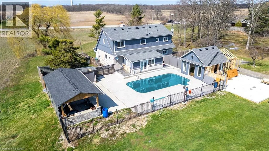 Endless Possibilities on 31.5 Acres â Cash Crop & Hobby Farm Retreat in Smithville. Discover true country living with loads of potential on this exceptional 31.5-acre property blending modern comfort, hobby farm charm, and workable land. This 3-bedroom, 2.5-bath home offers a warm, spacious layout perfect for family and entertaining, featuring an eat-in kitchen with a large island, built-in gas cooktop, breakfast bar seating, and a cozy wood-burning fireplace. The combined living & dining room provides flexible gathering space, while an additional family room with gas fireplace offers room to unwind, and a large utility/mudroom leads directly to your private backyard oasis with in-ground pool, stonework, and a covered BBQ/lounge area. Beyond the yard youâll find approx. 10 workable acres ready for crops or pasture, plus a barn and chicken coop already in place for your hobby farm start-up, all backed by a private forest offering seclusion, and endless potential. Enjoy rural privacy with easy access to Grimsby amenities, schools, and QEW/403 â bring your vision to this rare acreage with turnkey home and infrastructure already in place. (id:27476)