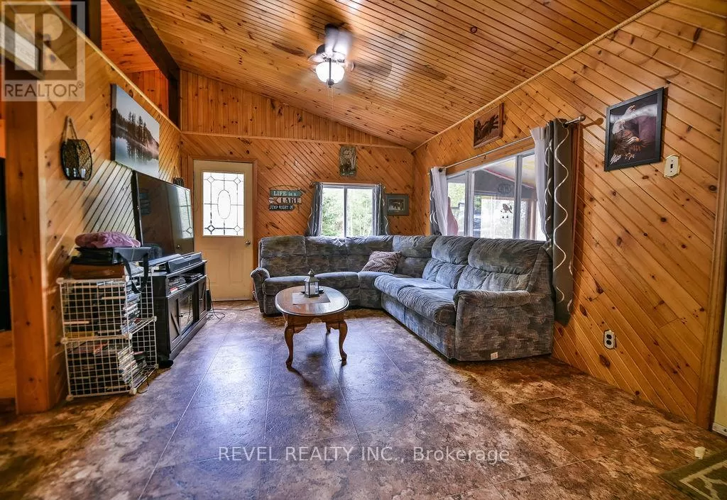 Cross Streets: Hwy 11W and Departure Lake Main Road. ** Directions: South off of Hwy 11W. 3-season, 2-bedroom, 1-bathroom cottage on Departure Lake featuring an 8x12 hydro-serviced bunkie for guests, 18x32 detached garage, dock with excellent pickerel fishing, and a wood-fired hot tub. Interior highlights include a bright sunroom, electric heat plus a wood stove, lake intake water system, and holding tank septic. Offered fully furnished and equipped, this property is turn-key and ready to enjoy. Year-round road access, immediate possession, and beautiful morning sunrise views make this an ideal lakeside retreat. (id:27476)