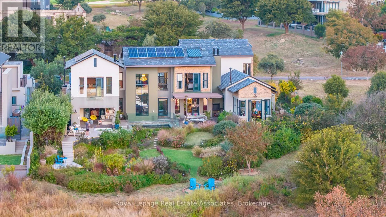 Cross Streets: R114, R511. ** Directions: R114, West Rd, Ernie Els BLVD. 6666 Saint Andrews Street, Centurion, GP, South Africa. A truly unique residence in the prestigious Copperleaf Golf & Country Estate, just outside Johannesburg, South Africa. Offering inspired design, exceptional craftsmanship, and a lifestyle focused on comfort, beauty, and functionality. Set on a generous 1/3 acre lot with over 5500sq/ft under roof, this custom-built home blends architectural creativity with refined finishes and seamless indoor-outdoor living. The main home features three bedrooms, including an impressive primary suite with vaulted ceilings, panoramic garden views, a spacious walk-in closet, and a spa-inspired en-suite with double shower, heated towel rails and a freestanding Victoria & Albert tub. Thoughtful interior elements include a gourmet kitchen with premium appliances, rich cabinetry, open shelving, and direct garden access, along with curated wallpaper and lighting, handcrafted elements, and a hidden library and work nook tucked beneath a custom wrought-iron staircase. The living and dining areas flow effortlessly to the elegant English garden complete with water features and a natural filtration pool. This tranquil retreat is complemented by multiple entertaining zones including indoor and outdoor bars, a built in brai alfresco dining space, and a jacuzzi deck.A separate apartment provides exceptional flexibility, offering a private entrance, full kitchen and lounge, bedroom suite, dressing room, garden, and the ability to add a second bedroom as per existing plans, ideal for extended family or long-term guests. Sustainable features include a full Sunsynk 8kW solar system, 12 solar panels, and dual water tanks.Residents of Copperleaf enjoy world-class amenities including the Ernie Els Signature GolfCourse, wellness spa, fitness centre, swimming and sports facilities, clubhouse, café, walking and cycling trails, onsite schooling, and 24-hour security. . A truly eclectic offering in one of the estate's most exceptional settings. (id:27476)