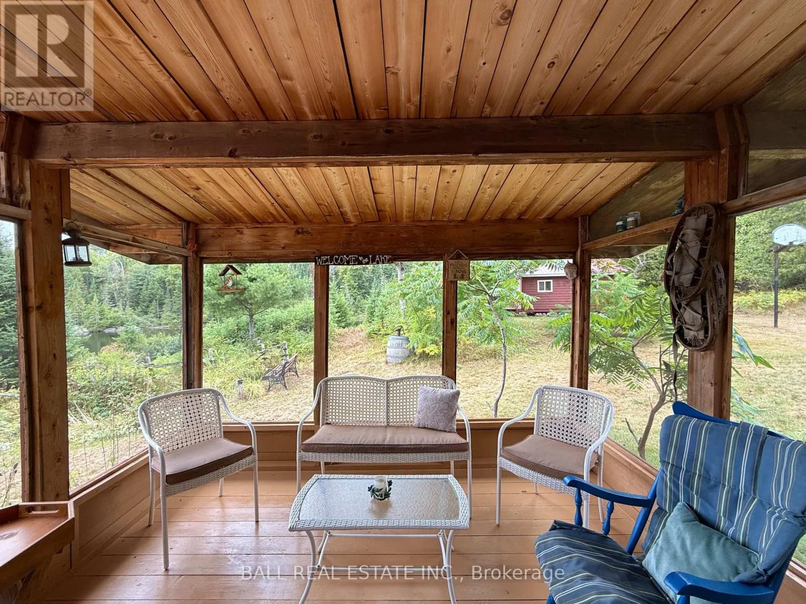 Cross Streets: Madawaska Rd and Davies Ln. ** Directions: From Bancroft follow Hwy 62 N to Hwy 127 to Madawaska Rd, (not Old Madawaska Rd) turn left on Davies Lane. ER # 198. A Peaceful Retreat in South Algonquin: Welcome to beautiful Cross Lake - a.k.a. Lyell Lake and discover the perfect blend of comfort, charm, and natural beauty at this serene South Algonquin cottage. First time offered for sale in over 40 years. Over 1000 feet of frontage on pristine water and 4.7 acres of privacy surrounded by acres of Crown land. This well maintained Pan-Abode cottage has large windows that invite bright lakeviews inside the thoughtful open concept layout to ensure a cozy, welcoming atmosphere year-round. With interlocking western cedar construction, this cottage offers 3 bedrooms, 4pc bathroom, laundry and space to sleep 8 including couch. Cozy up next to the wood-insert fireplace with a very efficient wood burning furnace in the basement for year round enjoyment. Baseboard heater in the bathroom as well as basement. Walkout to the large wrap around deck and screened-in gazebo overlooking serene lakeviews. There is a bunkie that sleeps 8 including the futon. Also a large outbuilding approx. 24ft x 16ft that could be used as a games room or boat storage. At the waters edge there is a newer dock (2022) which has plenty of room for entertaining and boats. Very friendly beach area for the little ones and to easily launch canoes and kayaks. In behind the bunkie is a nature trail that gives access to Long Lake. The property goes all the way to Long Lake and it would be possible to add a dock for a boat if desired. The entire lake is surrounded by Crown land. The path also opens up 300 metres along to a Bluff - perfect for sunsets. You can canoe/kayak on Long Lake to a jump rock. Set in the tranquil beauty of South Algonquin, this property provides both seclusion and ultimate waterfront enjoyment. From canoeing, kayaking and hiking to simply soaking up the quiet, every day here feels like a step into a simpler, more peaceful world. (id:27476)