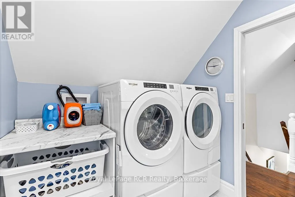 Cross Streets: Scott St. & George St. ** Directions: From Hwy 6 heading north, turn right onto George Street. Turn right onto Scott St. House is on right-hand side. Welcome to 524 Scott Street - a beautifully renovated home ideally situated steps from Bluewater Park, the marina, and the vibrant downtown core of Wiarton. This stylish 2-bed, 2-bath home has been thoughtfully updated throughout, offering a fresh aesthetic. Enjoy the convenience of new Samsung appliances in the spacious, recently renovated eat-in kitchen, perfect for entertaining or everyday living. The main floor features gorgeous hardwood flooring, while the upper level offers engineered hardwood and bright, airy spaces. Both bathrooms are equipped with in-floor heating for added comfort and luxury. Set on a rare oversized lot, the home offers generous outdoor space for gardening, recreation, or future potential. The 1-car carport, enclosed on three sides, provides functional covered parking and storage. Spend your evening on the natural stone front porch with partial views of the bay. Whether you are searching for a year-round home, weekend escape, or investment property, this one checks all the boxes. Experience all that Wiarton and the Bruce Peninsula have to offer! (id:27476)