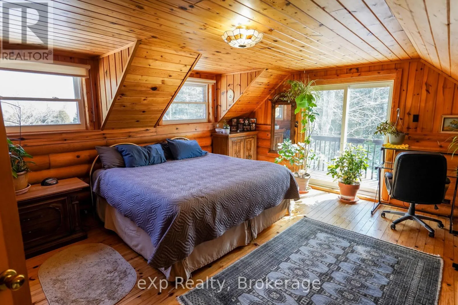 Cross Streets: Hardmans Lane. ** Directions: Take Hwy 6 north. Property is on the west side and is north of Mar and of Summer Ave. Just south of Hardmans Lane. Live and Earn on 10 Private Acres on the Bruce Peninsula. Tucked away on a serene, wooded 10-acre lot, this stunning log home is a peaceful retreat with all the comforts of modern living. The open-concept great room, with cathedral ceilings and a stone fireplace, is the heart of the home, flanked by two sun-drenched sunrooms featuring skylights and flagstone floors. The spacious, light-filled kitchen offers a large island and ample cabinetry, perfect for family gatherings or quiet meals. A cozy main-floor bedroom and full bath provide easy living, while two more bedrooms upstairs - one with its own private balcony - are paired with an additional full bath.The beauty of the home extends outdoors with landscaped grounds and the surrounding woods, offering both privacy and natural beauty. But that's just the beginning. Located separately from the house is a converted bungalow, offering three fully independent rental units - a smart investment opportunity. One unit is a two-bedroom "cottage". The other two units are charming open-concept guest suites, with private baths - ideal for short-term rentals. All units are bright, spacious, and being sold fully furnished. Nestled just off Hwy 6 in a prime tourism area, this property is surrounded by opportunities for hiking, beach visits, and access to the crystal-clear waters of Georgian Bay. Whether you're looking to operate a vacation rental business or enjoy a peaceful lifestyle surrounded by nature, this property offers the perfect balance. Just a short drive from Wiarton, you'll have access to shopping, dining, hospital services, and more.This is a rare opportunity to own a slice of paradise while generating income - all within the stunning beauty of the Bruce Peninsula. (id:27476)