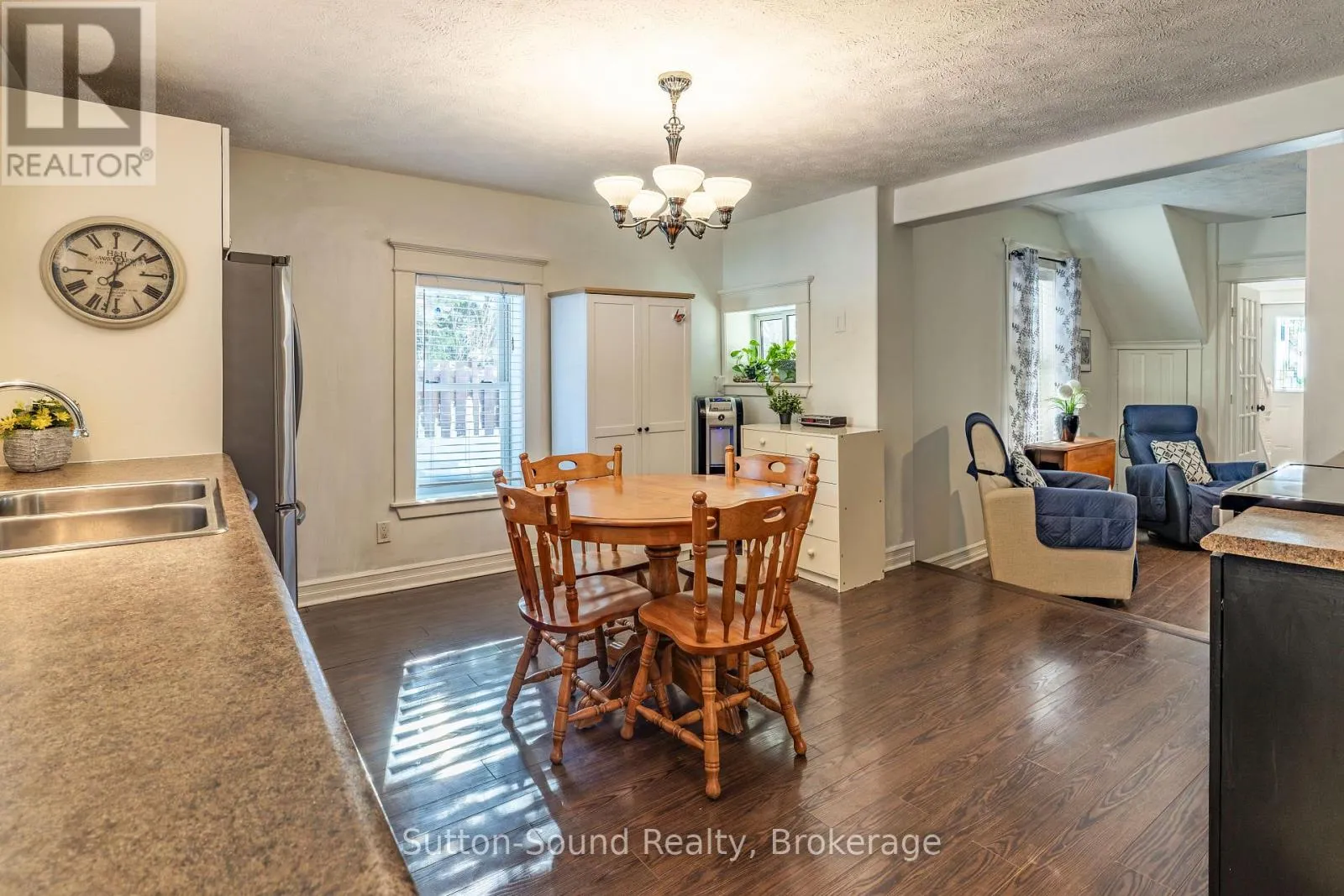 Cross Streets: George. ** Directions: From Berford Street Wiarton, go north on William Street to Dawson. Turn left onto Dawson Street. House is on the left. Charming 1.5-Storey Home in the Heart of Wiarton. This inviting property features two spacious bedrooms and two bathrooms, offering a cozy yet highly functional layout. Ideally located close to local amenities, it combines convenience with small-town charm. A standout feature is the large garage, providing ample storage and workspace, complete with a loft above-perfect for a studio, home office, or guest area. Recent upgrades include a new wall furnace, stove, and a beautifully renovated primary bathroom, adding modern comfort and style. Ideal for first-time buyers, retirees, or anyone seeking a peaceful lifestyle without sacrificing convenience. (id:27476)