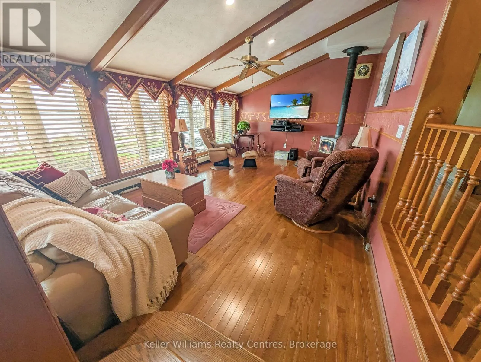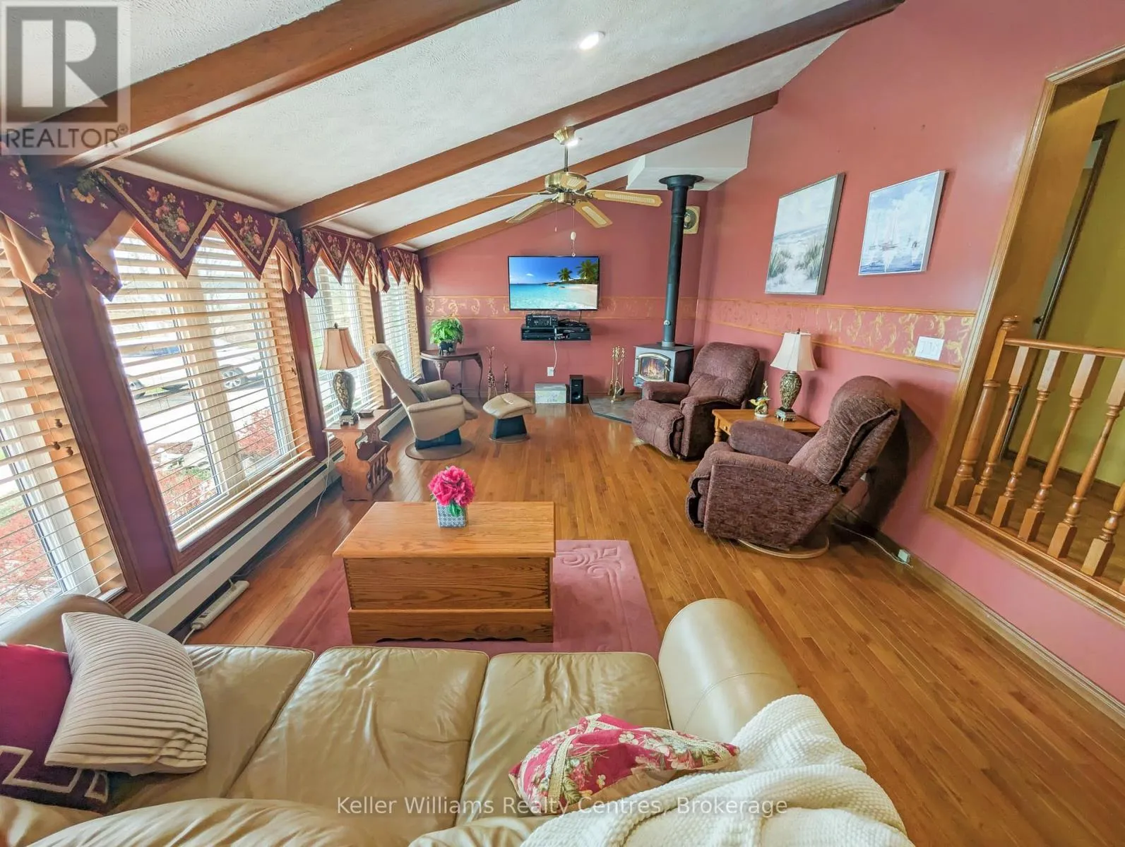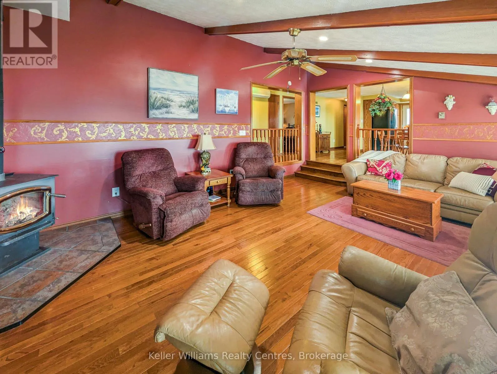 Cross Streets: Bruce rd 9. ** Directions: Take Bruce Rd 9 to Mallory Beach Road to number 11. Welcome to your next chapter on the Bruce Peninsula where big views and quiet living come together. This charming 4-bedroom bungalow is perched perfectly above Colpoys Bay with a panoramic water view that never gets old. Whether you're sipping morning coffee on the deck or unwinding inside, the bay is your constant backdrop. Step inside to find a sun-filled open-concept layout with a warm wood-accented kitchen, seamless flow into the dining area, and cozy spaces to relax. Floor-to-ceiling windows in the living room flood the home with natural light and showcase that incredible view. The vaulted ceilings, exposed beams, and wood-burning stove add the perfect touch of rustic charm. The lower level is ready for your vision with a full walkout to a covered patio and stonework leading to beautifully landscaped gardens. Whether you're expanding the living space or keeping it for storage and hobbies, there's room to grow. Outside, enjoy the double-wide concrete driveway, detached garage, and a gazebo nestled among gardens. This home is move-in ready and offers comforts like ductless cooling, metal shake roof, water filtration system, and central vac. Located on a quiet stretch of the Peninsula, you're just a short drive to Wiarton and surrounded by some of the best fishing, hiking, and boating in the area. This is more than a home, its your waterfront escape. *Waterfront road between. (id:27476)