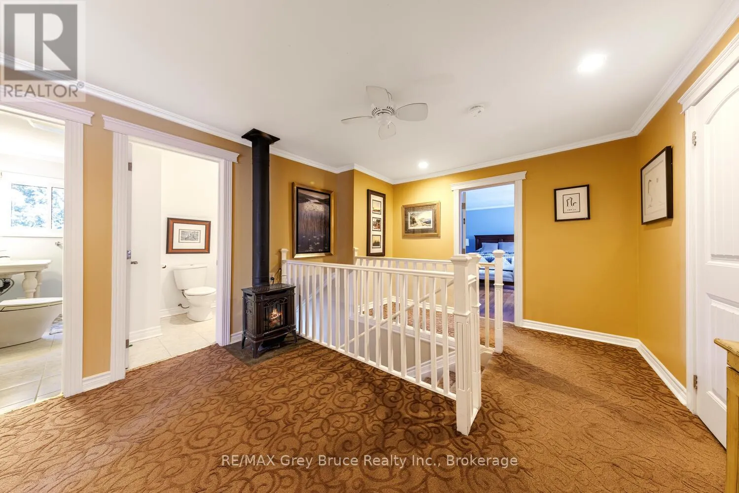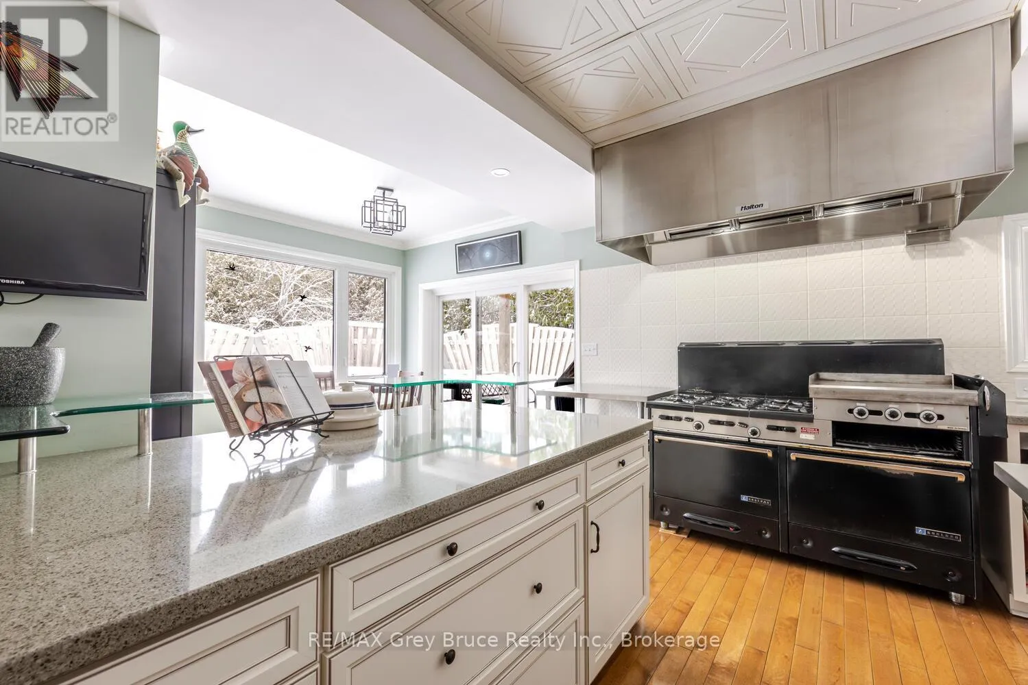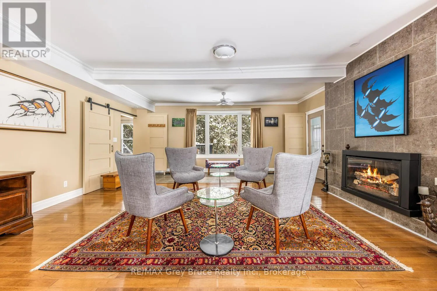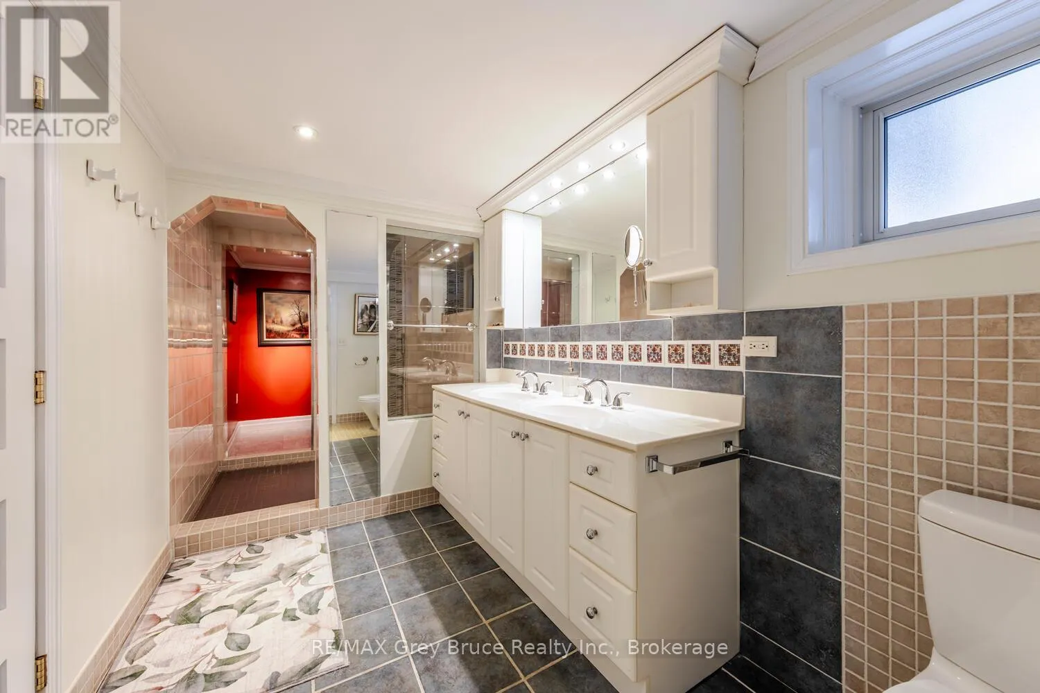 Cross Streets: Huron Road and Symon Ave. ** Directions: From Oliphant head north on Bryant Street. Proceed through Spry Lake Road on Bryant (Bryant turns into Huron Road. Proceed to #424 Huron. Welcome to your dream home in the heart of Red Bay, where refined finishes, thoughtful design, and an exceptional lifestyle come together in perfect harmony. This impressive three-level estate offers elegant living with four spacious bedrooms upstairs, including two private suites with spa-inspired ensuites. Crown moulding and 9-foot ceilings add timeless character, while premium Centennial windows fill the home with natural light and energy efficiency. The chef's kitchen is the heart of the home, featuring a commercial-grade Garland propane stove, Corian countertops, a generous pantry, and a butler's servery-perfect for effortless entertaining. Every heated appliance, from the hot water tank to the BBQ and fire tables, is hard-piped to propane for seamless, cost-effective comfort year-round. Designed for both relaxation and connection, this home easily adapts to your lifestyle goals. Host memorable gatherings, welcome extended family, create a dedicated home office, or build your ideal fitness or hobby space-the flexible layout gives you room to grow and truly live. Heated bathroom floors add everyday luxury, while the lower level offers versatile space for a guest suite, lounge, gym, workshop, and abundant storage. Step outside to your private retreat. Enjoy evenings on the Trex deck by the propane fire table, unwind in the Arctic Spa hot tub under the stars, or relax in the sauna. The cabana invites yoga sessions or peaceful afternoons, while a fire pit area, large shed, cabana storage, and fenced parking for up to eight vehicles complete this entertainer's oasis. Located in Red Bay-often called Sauble Beach's hidden gem-you'll enjoy breathtaking sunsets, calm shallow waters ideal for families, and a welcoming community with a nearby public dock for easy lake access. This is more than a home-it's your private resort and a gateway to the very best of Bruce Peninsula living. (id:27476)