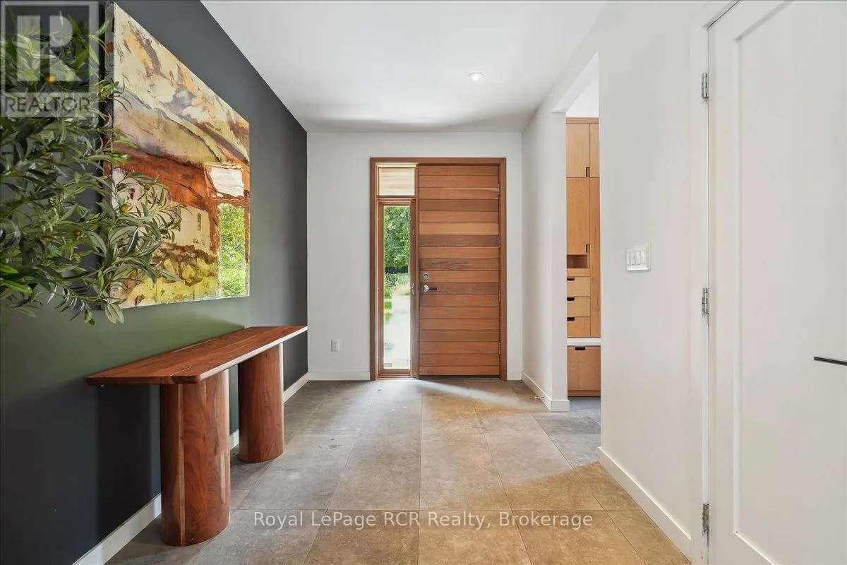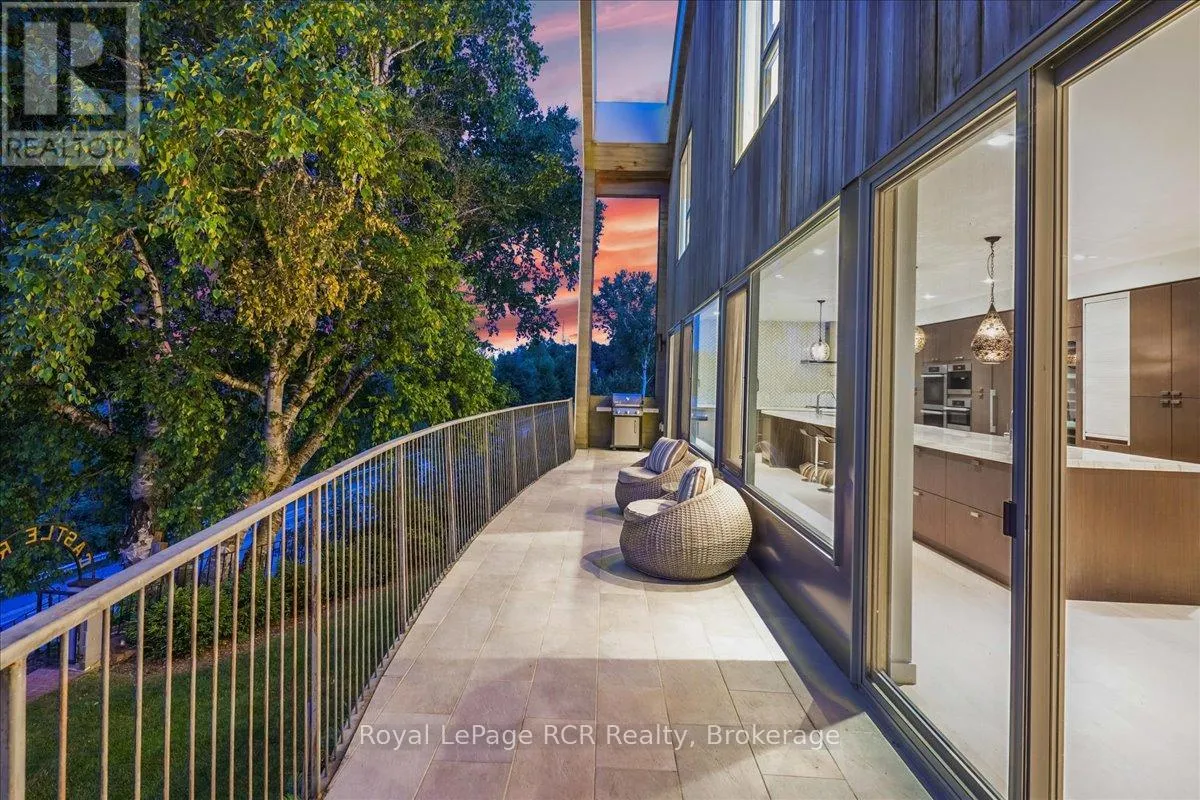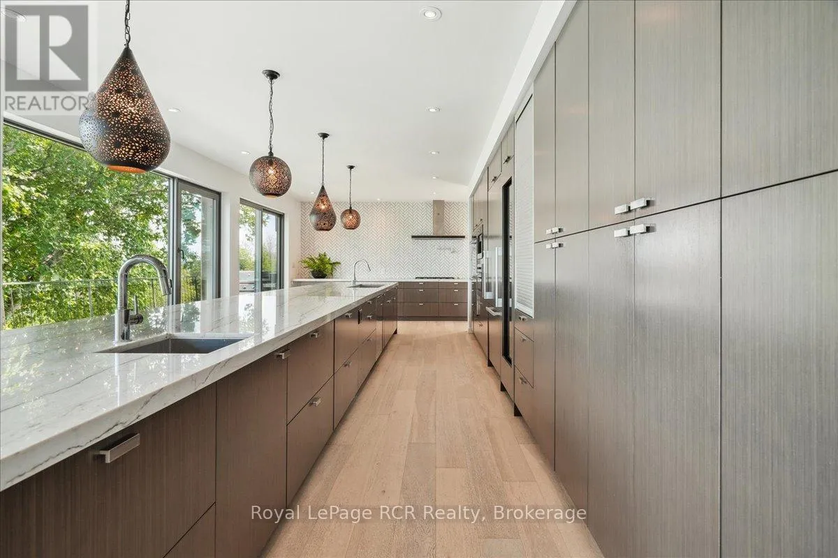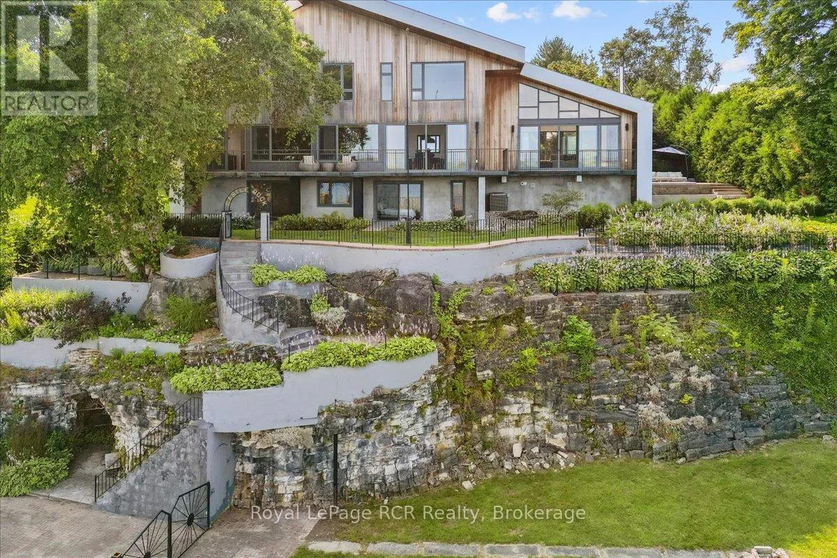 Cross Streets: Hwy 6 & Bruce Rd. 9. ** Directions: Take Hwy 6 North to Wiarton, turn right onto Bruce Rd. 9 (signs for Colpoys Bay), turn left onto Everett Rd, house will be on the right. Perched majestically above the crystalline shores of Colpoy's Bay, this architectural masterpiece defines the pinnacle of modern luxury. A true masterclass in light and form, the estate is wrapped in soaring floor-to-ceiling glass, erasing the boundary between its sophisticated interiors and the shimmering expanse of the bay. While the residence is thoughtfully nestled on the hillside to maximize its commanding panoramic views, the lifestyle extends directly to the water's edge, a gentle stroll across the coastal road leads you to your own private dock for seamless days spent on the waves. The heart of the home is a chef's sanctuary, anchored by a monumental 21-foot island and outfitted with a full suite of professional Miele appliances, a built-in espresso station, and a curated wine fridge. This culinary hub flows effortlessly into a grand dining area and a living room defined by soaring ceilings and a bespoke wood-burning fireplace, creating an atmosphere of refined warmth. Each of the six meticulously designed bedrooms is oriented to capture the morning light dancing off the water, including a primary suite that serves as a sanctuary of wellness with its spa-inspired ensuite and expansive walk-in dressing room. For those seeking versatility, the walk-out lower level offers a sophisticated footprint for an in-law suite or high-end guest accommodations with significant income potential. Outside, the 0.7-acre grounds are a botanical retreat of lush gardens, mature canopy, and multiple terraces designed for grand-scale entertaining. Whether you are hosting an alfresco gala, unwinding in the water view hot tub, or wandering down to the water to launch a kayak, the amenities are unparalleled. Complete with a three-car detached garage and RV hook-ups, this estate is a legacy retreat located just minutes from the charm of Wiarton and an easy 40-minute drive to the rugged wonders of Bruce Peninsula National Park. (id:27476)