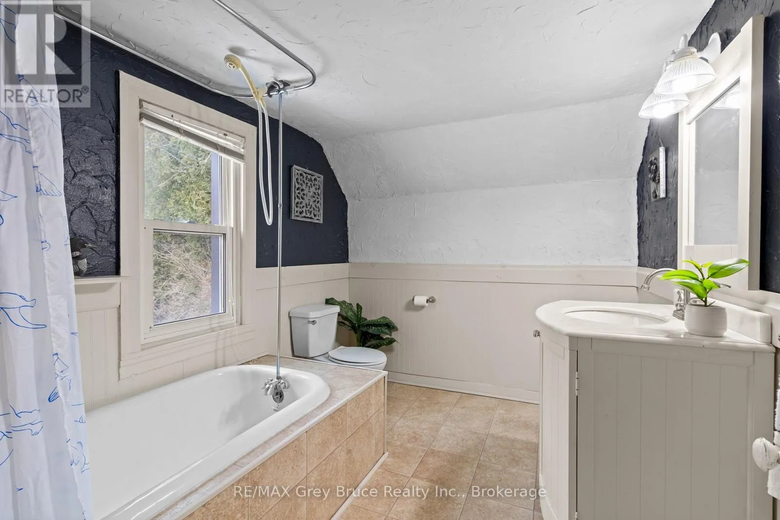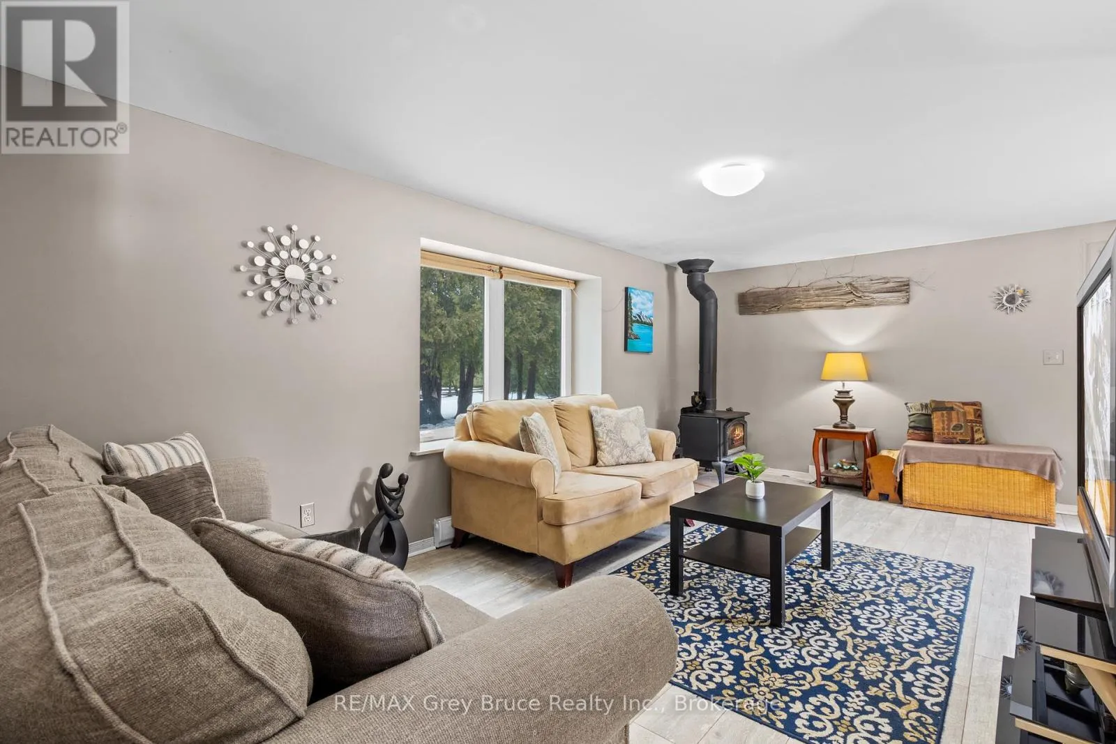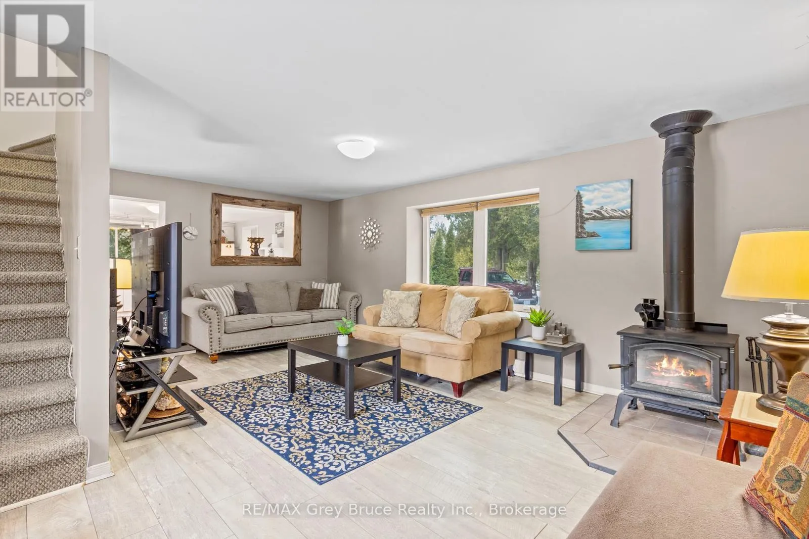Cross Streets: Highway 6 & Howdenvale Road. ** Directions: Head North on Hwy 6 (ON-6) towards Mar. Destination is on your left. Look for signs. HOME WITH SHOP ON 1 ACRE! 3 bedroom, 2 bathroom, ~1,100 sqft home with large detached shop/garage on a beautifully treed 1 acre property. Recent updates include new roof (2020), wood stove and chimney with WETT certification (2020), new siding (2021), heat pump added (2024), bedroom renovation (2025), and septic just pumped (2025). The property is fully surrounded by tall mature cedars, creating exceptional privacy and a peaceful setting from the moment you arrive. Inside the home features a spacious kitchen with ample counter space and cabinetry, flowing into a generous dining area with walkout to the deck overlooking the property. The bright living area includes a newer wood stove for added warmth and character. The main floor also offers laundry and a full bathroom. Upstairs boasts a 4-piece bathroom with soaking tub, additional bedrooms, and flexible space ideal for a desk or small workspace. The large detached shop/garage has power running to it and features a poured concrete floor offering an excellent space for a workshop, storage, or hobby use. If you looking for a property with a home, shop, a full acre, and upmost privacy look no further! (id:27476)