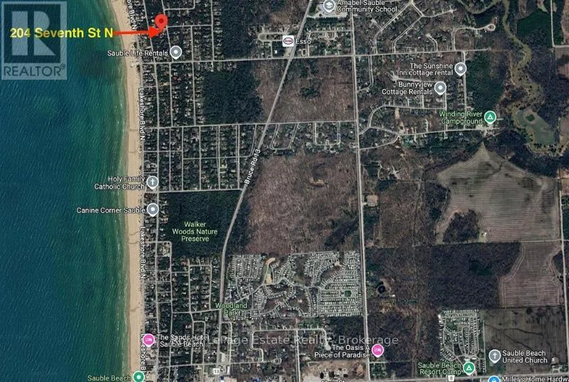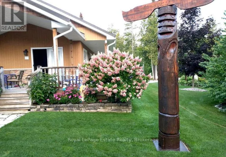 Cross Streets: Third Ave N & Seventh St N. ** Directions: Take 3rd or 2nd Ave N to 7th St N to #204. LOCATION, LOCATION!! Quality, Custom-Built and Immaculately Maintained Bungalow Just Steps from North Sauble Beach! Welcome to your Beach Oasis only 1.5 blocks from the sand in a prime location. This home is nestled on a beautifully landscaped, treed, and partially fenced lot, perfect for soaking up the beach life. Thoughtfully designed inside and out, enjoy a wraparound covered deck, an entertainer's dream outdoor area, and an insulated sunroom featuring a hot tub. Hosting guests? There's a charming insulated Bunkie, a custom stone firepit area, outdoor shower, stunning stonework, and even a one-of-a-kind totem pole that sets the summer vibe! Built in 2009, this open-concept bungalow, featuring wheelchair accessible hallways and doors, custom Cherry kitchen cabinets, a cozy gas fireplace, spacious primary bedroom, and convenient Central Vac. Need storage? A 5'1 crawl space has you covered, along with a garage, workshop area, and full-use generator for peace of mind. Steps to the beach, designed for comfort, and built for fun, your Sauble Beach dream starts here! (id:27476)