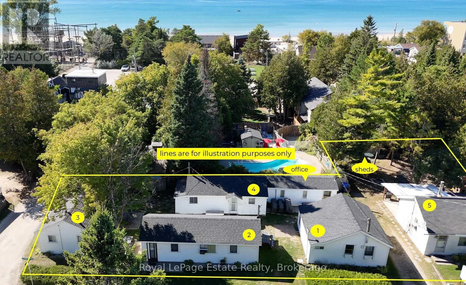 Cross Streets: 3rd Ave N & 1st St N. ** Directions: Main St - travel west toward beach;turn right on 3rd Ave N; property on left side at the corner 1st St N & 3rd Ave N. Imagine owning a quintessential piece of the timeless magic that has made Sauble Beach a destination for generations. Tucked in the core, this rare residential assembly features five 2-bedroom cottages, offering a footprint and density nearly impossible to replicate today. Located just a short stroll from the shoreline and world-class sunsets, this property captures the nostalgic spirit of "Old Sauble Beach " while serving as a high-visibility stake in the beach's most sought-after district.The property is anchored by a winterized 2-bedroom residence with a 4-pc bath, ideal for year-round living or premium off-season stays. Surrounding the main home are four additional 2-bedroom cottages, each equipped with 3-pc baths and pull-out couches to maximize guest capacity or larger families. Every cottage has its own laid-back appeal, with a deck and BBQ for personal use. The grounds celebrate the vacation lifestyle with two communal fire pits for evening storytelling and a dedicated play area. Practicality meets convenience with an on-site office featuring laundry facilities and two storage sheds for gear and maintenance. This is a true "park-once" location where you can walk to everything, from retail shops, activities and plentiful dining options to the refreshing waters of Lake Huron. While operating as a successful turn-key retreat with a loyal base of repeat guests and advanced bookings, the true value lies in the long-term potential of this central plot. Whether you are a visionary looking to polish these vintage gems into a one-of-a-kind coastal retreat, a handy homeowner seeking a "live-and-work" beach lifestyle, or a family searching for the ultimate multi-generational compound, the potential is yours to curate. This is a rare invitation to secure a five-cottage legacy in the heart of Sauble Beach. The sale includes the established business name, website, and nearly all contents. (id:27476)