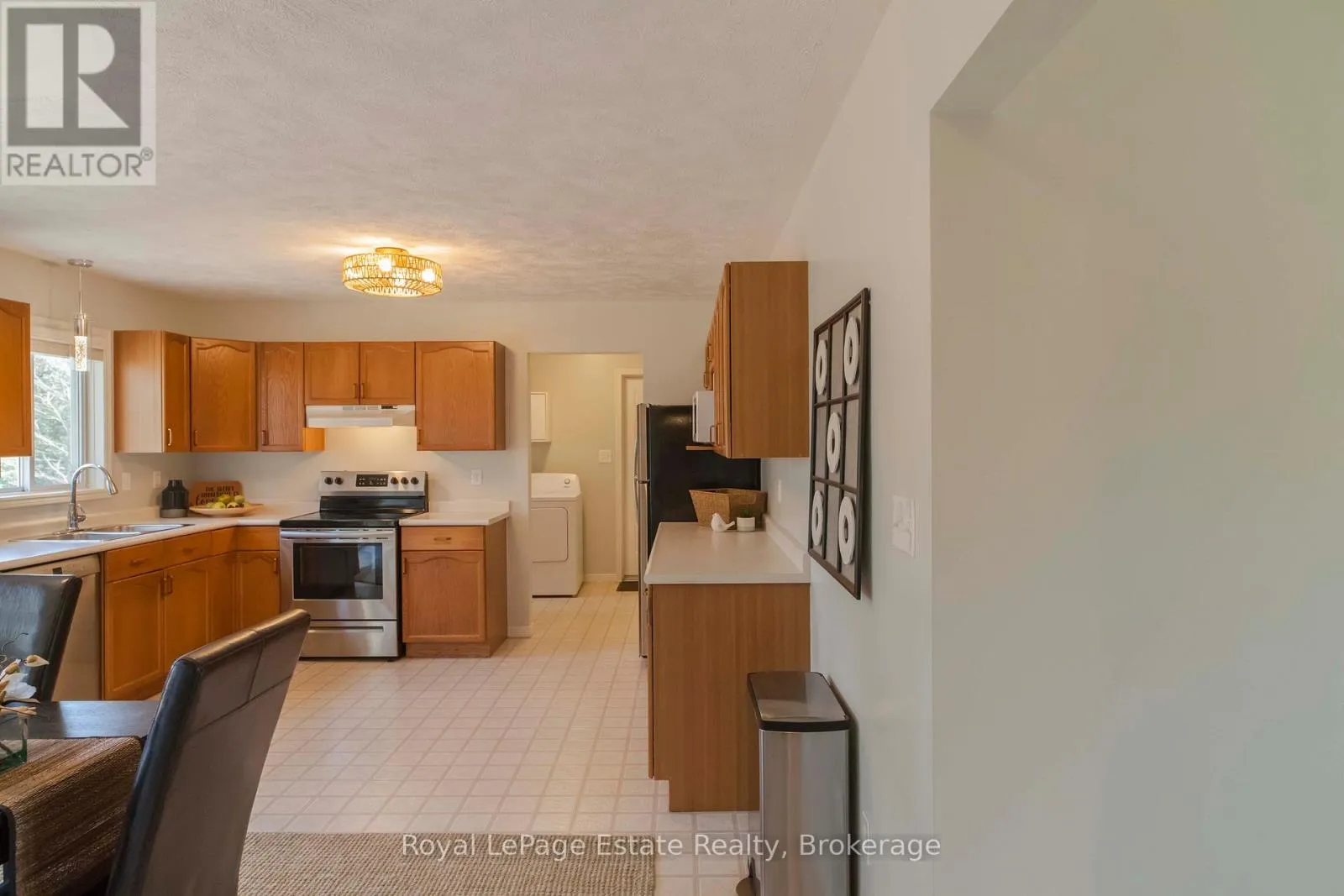 Cross Streets: Lakeland Drive. ** Directions: From Hepworth, follow County Road 8 West, turn Right on Lakeland Drive, then right onto Sauble Woods Crescent. Follow to #21 on the left. GREAT SAUBLE BEACH LOCATION! Solid, Spacious and effortless main-floor living. This Home is just minutes to the beach and Main St., and conveniently close to the school, community centre and medical centre. This 2-bedroom, 1.5-bath home offers a functional layout with a bright, large-sized kitchen that walks out to a great back deck. Large windows brings the outside in and you will never get tired of seeing those Sauble Sunsets from your front porch. Built for comfort and everyday living or for hosting family and friends all while being tucked away on a family friendly crescent. The attached double car garage gives you plenty of room for vehicles, storage and all your beach gear. Step outside to a private backyard backing onto a peaceful wooded space. Relax and enjoy the nature surrounding you after a day at the beach. The full unfinished basement features high ceilings and large windows, offering great potential to create additional living space, a rec room, or keep as excellent storage. A solid home in a great location-ideal for full-time living or your Sauble Beach getaway! (id:27476)