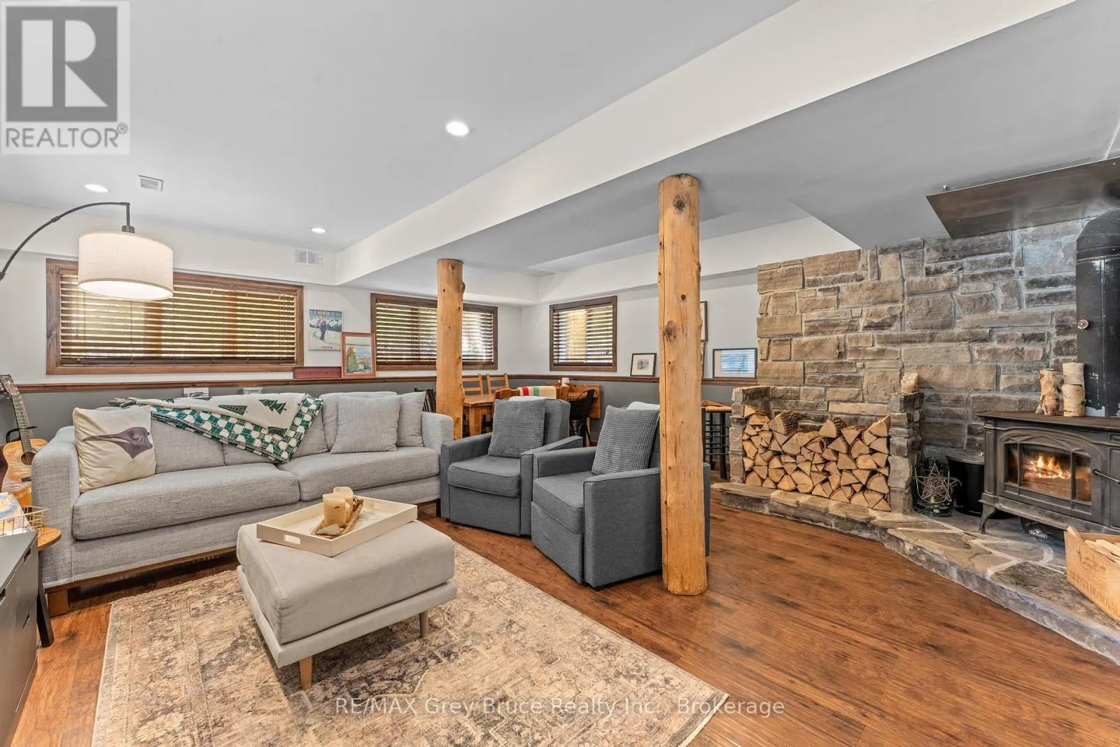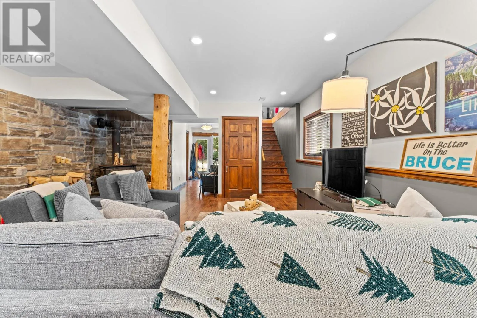 Cross Streets: Rankin Bridge Road/Sideroad 15. ** Directions: From Hepworth head west on Spring Creek Road. Turn north on Sideroad 15. Home is on the north west corner on Sideroad 15 and Rankin Bridge Road. Set on a picturesque half-acre lot, this charming property offers the perfect blend of rustic appeal and modern-day comfort, ideal as either a year-round residence or a relaxing cottage retreat. The home features 2 bedrooms and 2 bathrooms, thoughtfully designed for both functionality and comfort. Enjoy the natural surroundings from multiple spacious decks, perfect for entertaining or quiet relaxation. A standout feature is the impressive 28' x 37' detached garage/shop, fully equipped with heat, hydro, and water-ideal for hobbyists, storage, or workshop use. Located on a paved road just a short distance from Sauble Falls and the beach, this property provides convenient access to some of the area's most sought-after outdoor destinations. With its inviting character and practical upgrades, this home offers a unique opportunity to embrace a relaxed lifestyle in a desirable location. (id:27476)